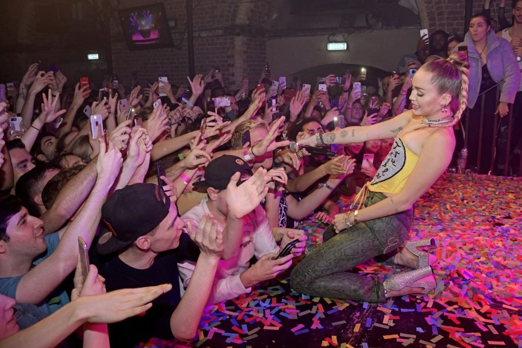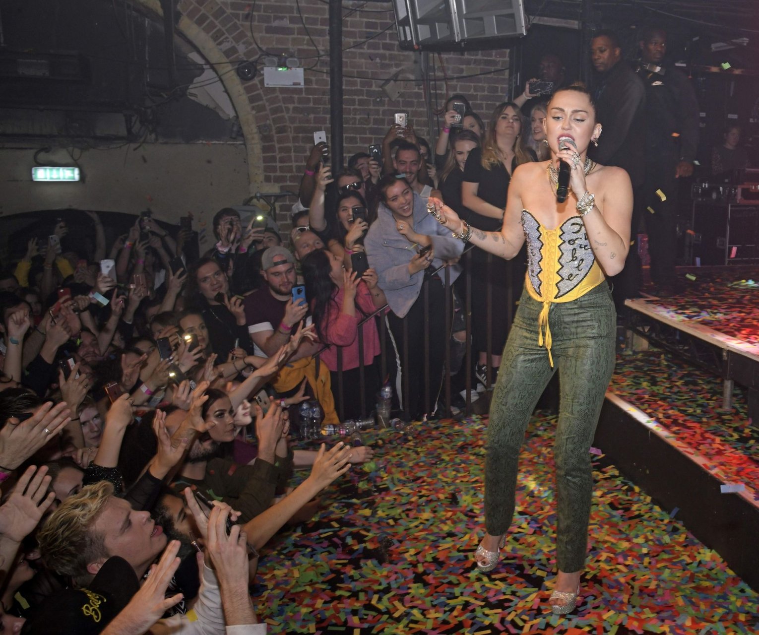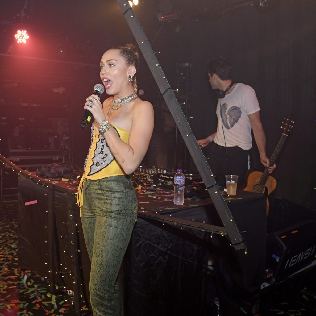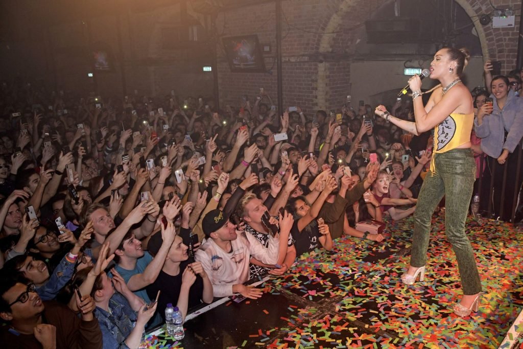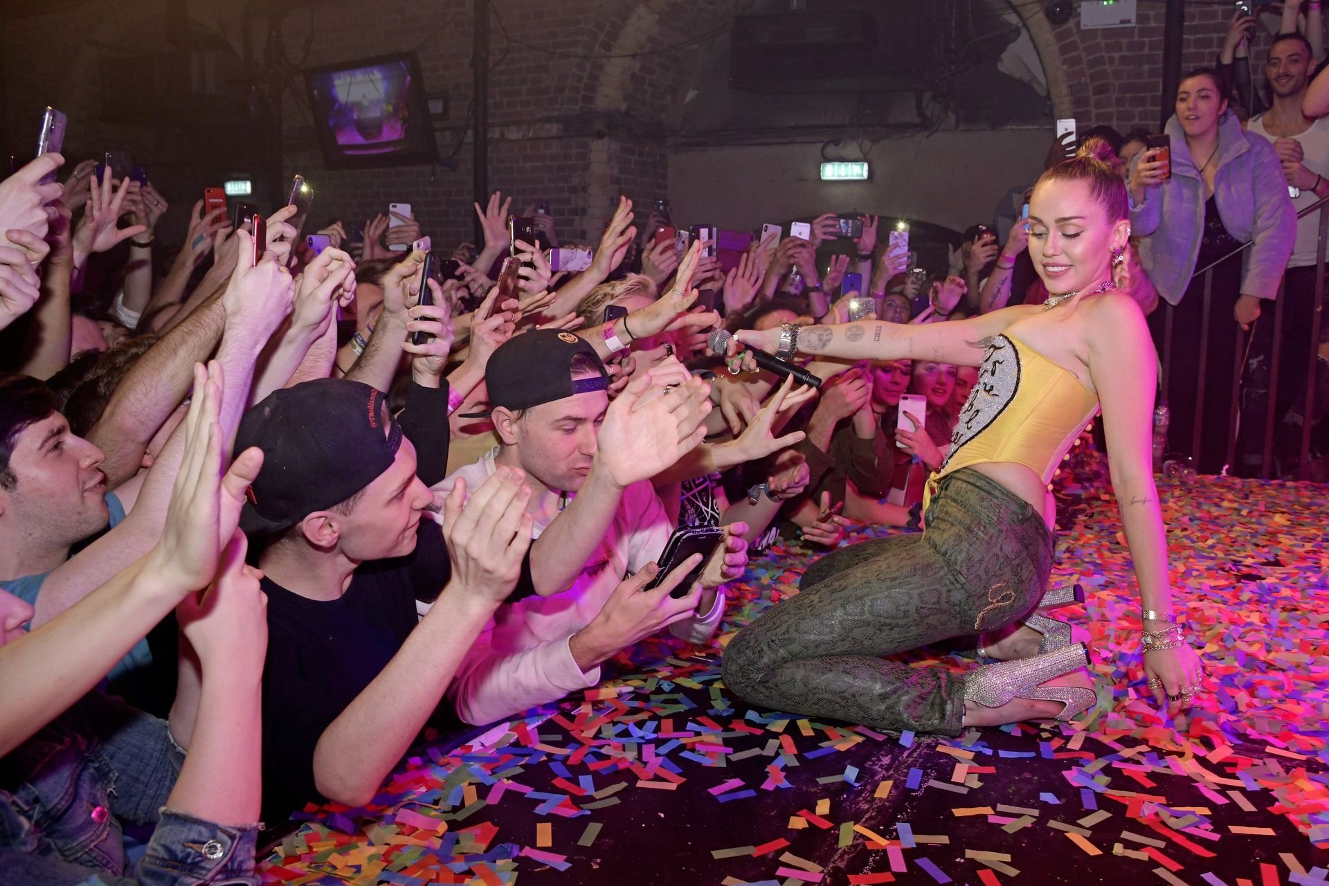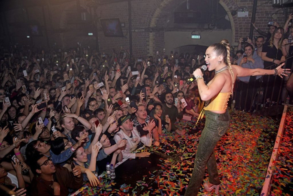 La chanteuse Miley Cyrus (26 ans) se produit en live avec son nouveau single « Nothing Breaks Like a Heart » au club G-A-Y à Londres, le 12/07/2018.