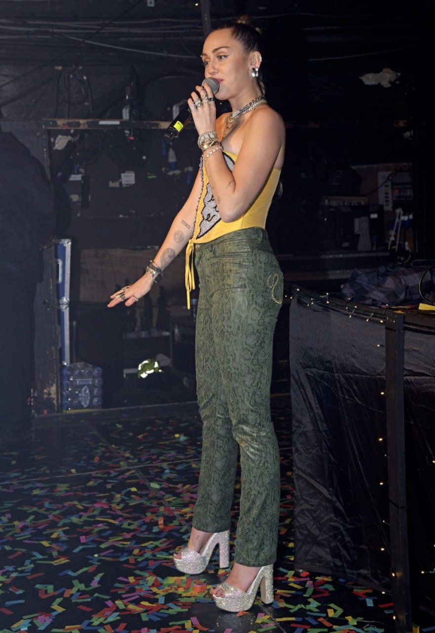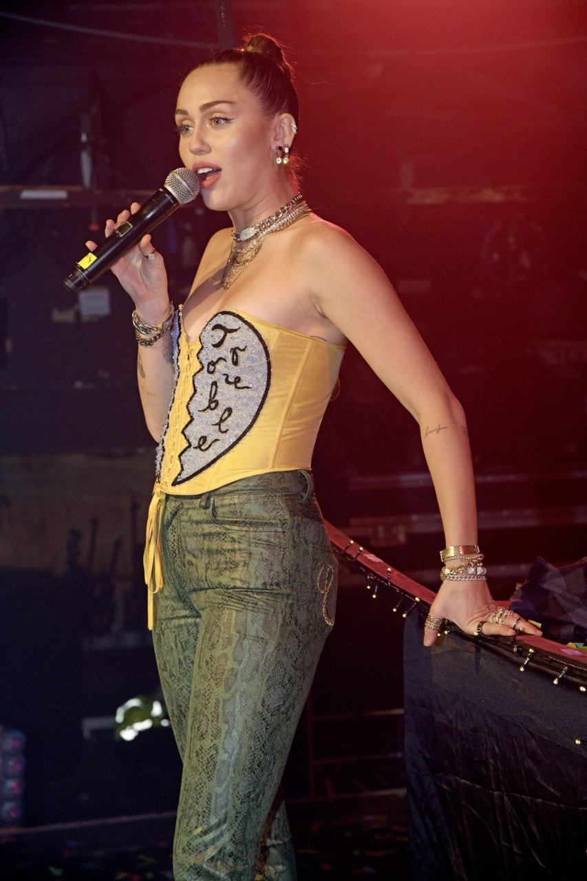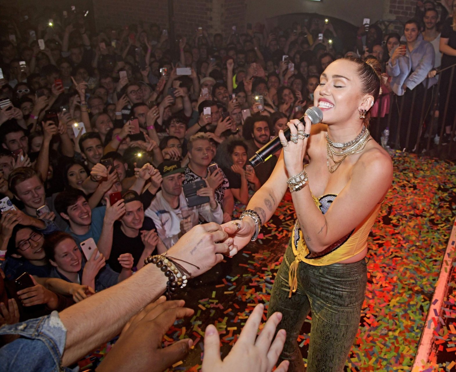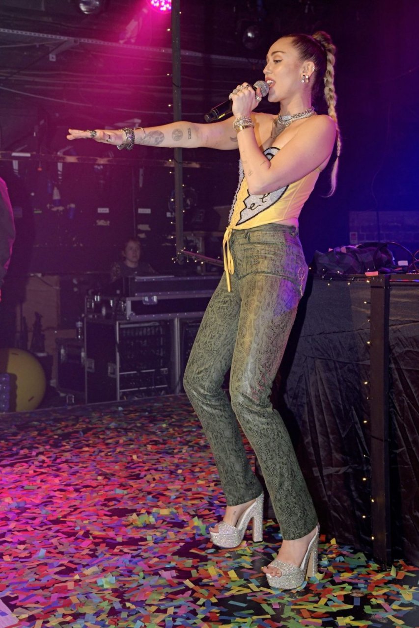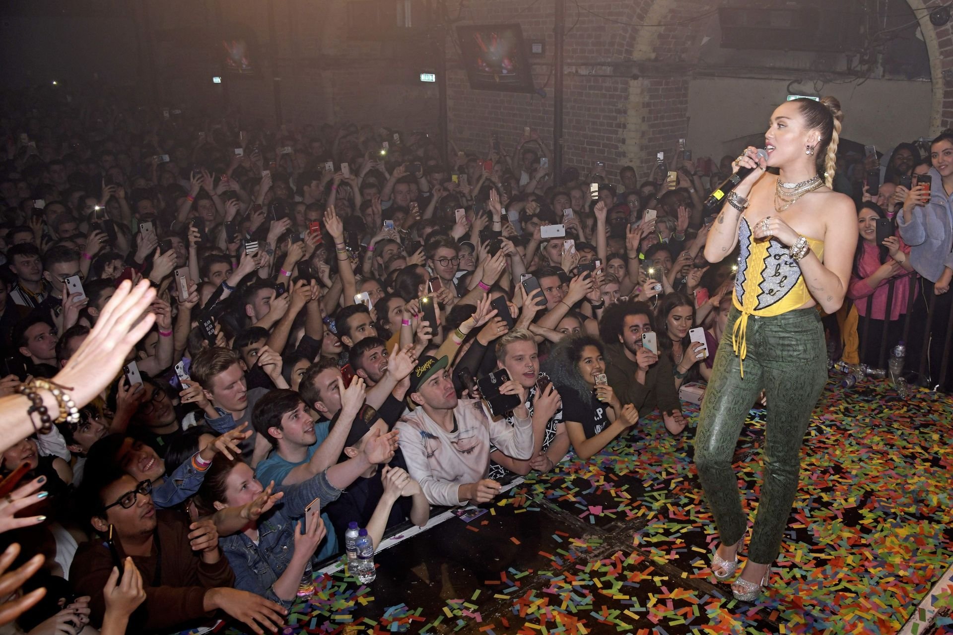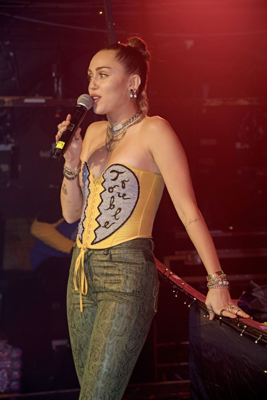 La chanteuse Miley Cyrus (26 ans) se produit en live avec son nouveau single « Nothing Breaks Like a Heart » au club G-A-Y à Londres, le 12/07/2018.