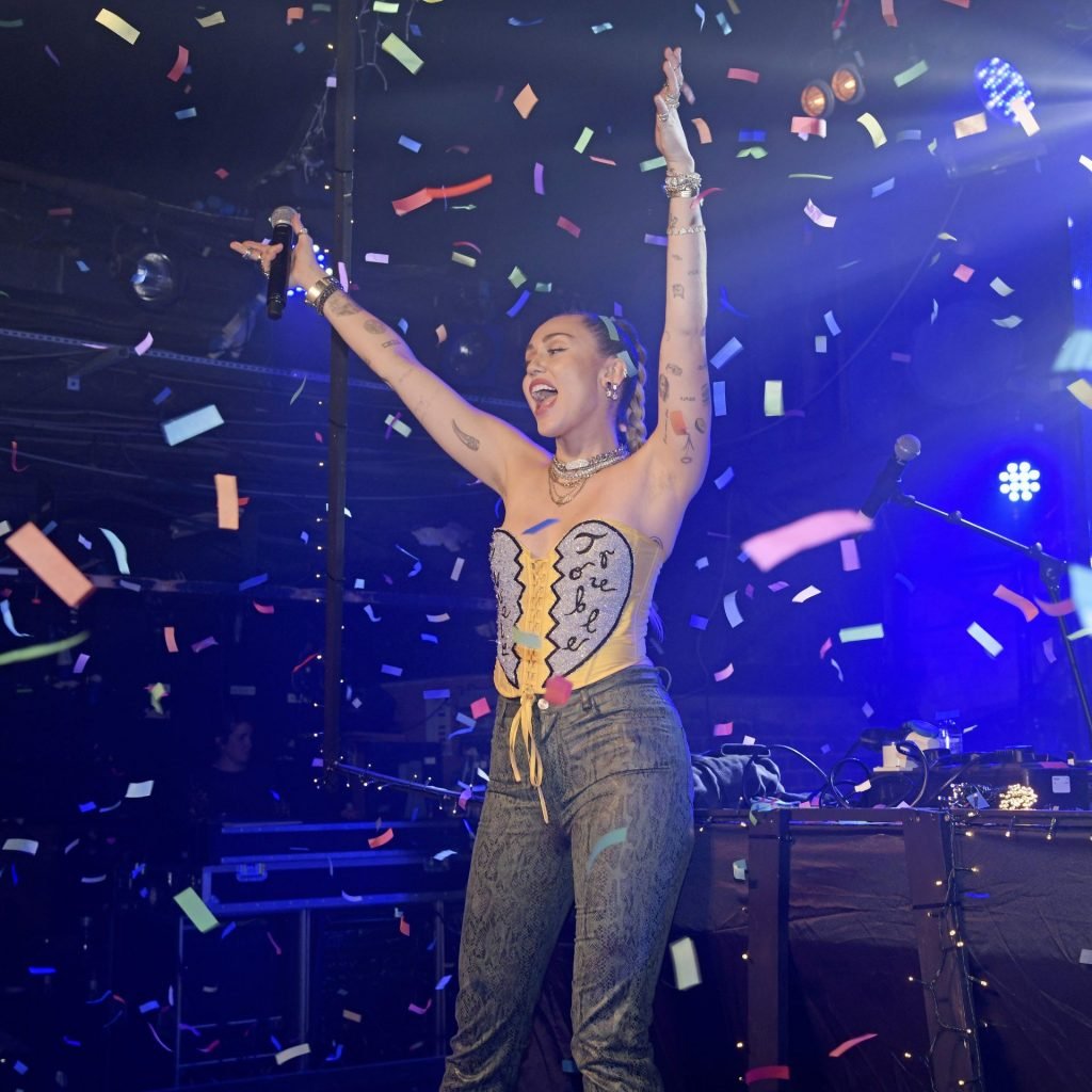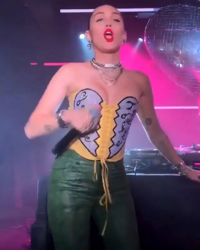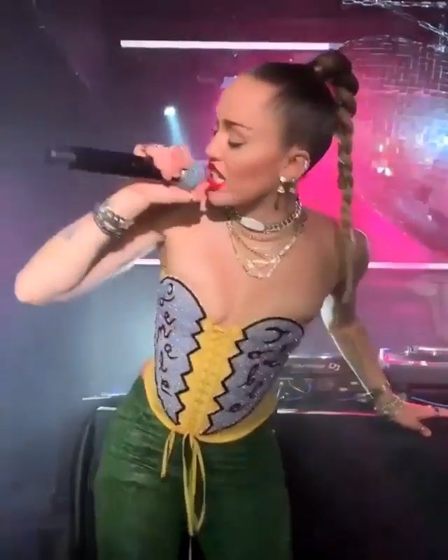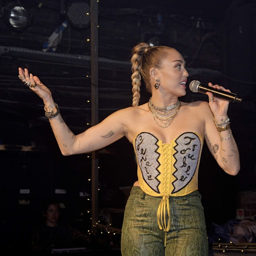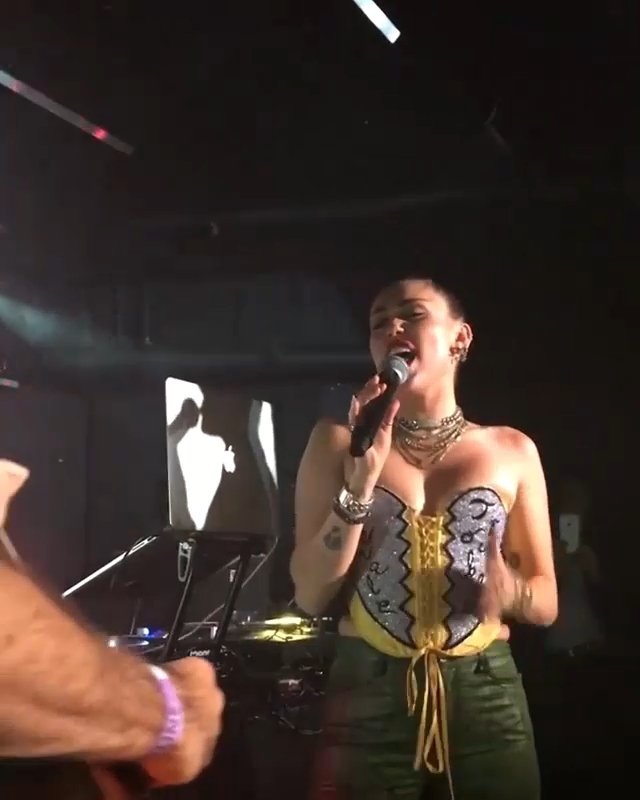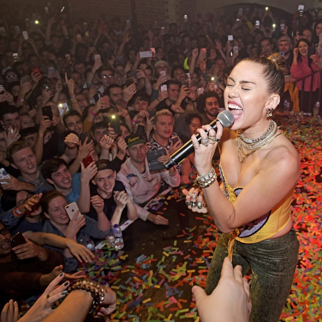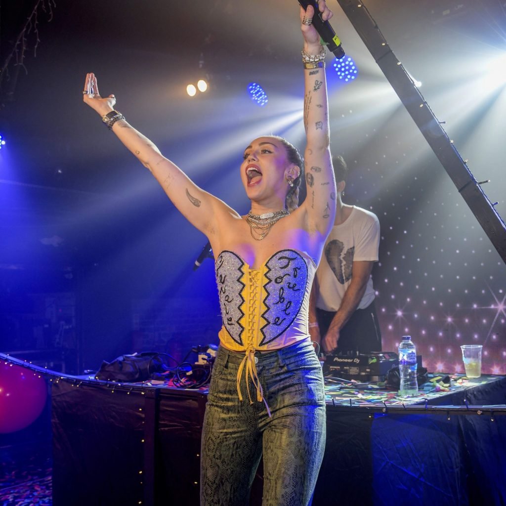 La chanteuse Miley Cyrus (26 ans) se produit en live avec son nouveau single « Nothing Breaks Like a Heart » au club G-A-Y à Londres, le 12/07/2018.