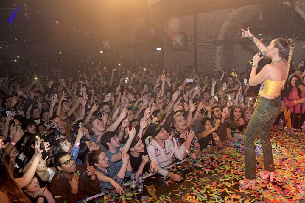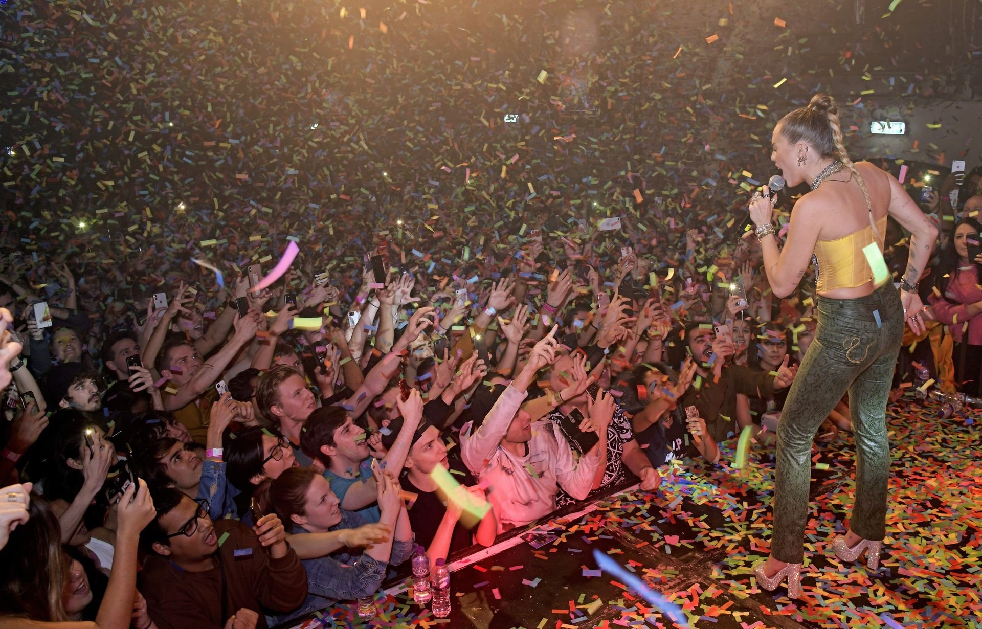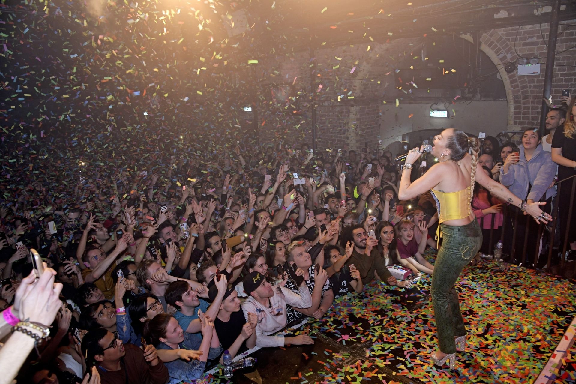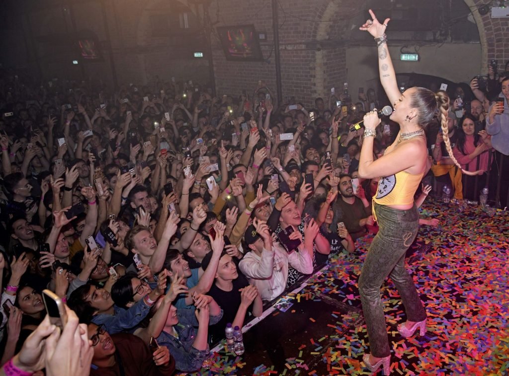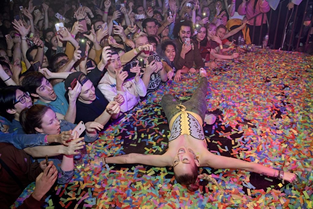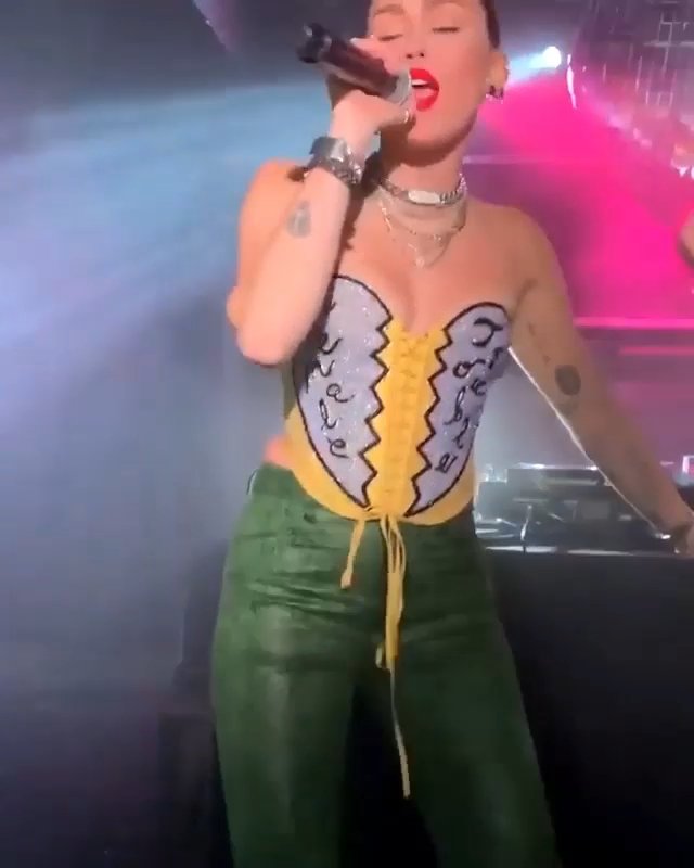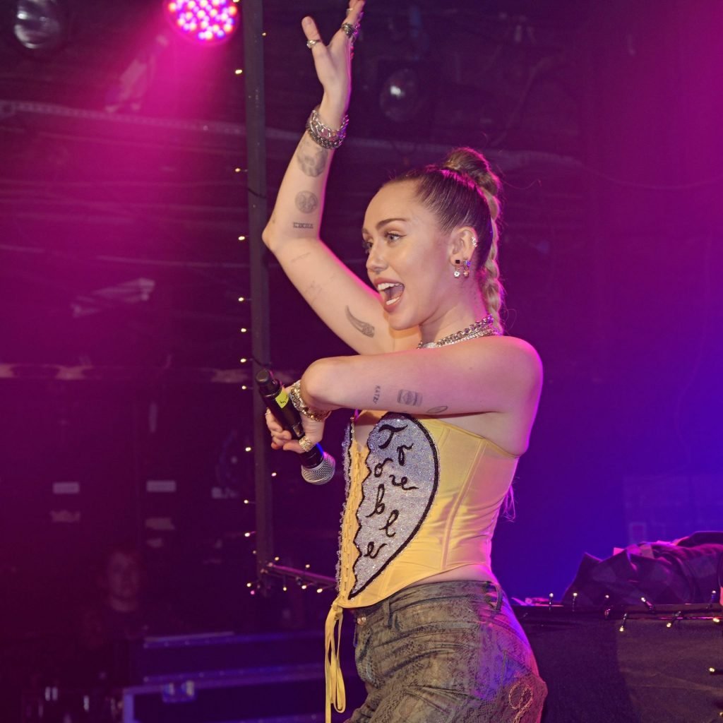 La chanteuse Miley Cyrus (26 ans) se produit en live avec son nouveau single « Nothing Breaks Like a Heart » au club G-A-Y à Londres, le 12/07/2018.