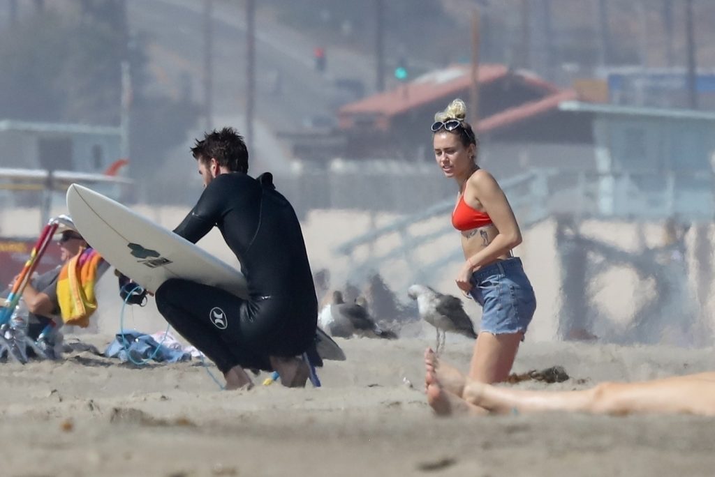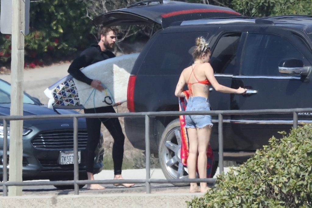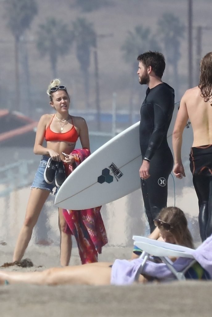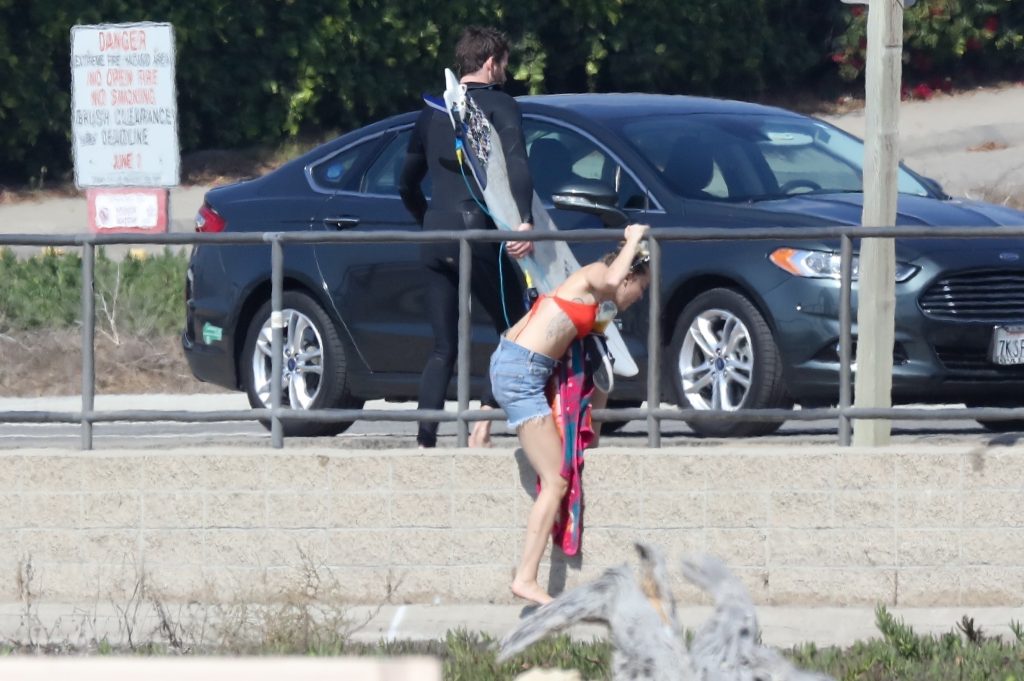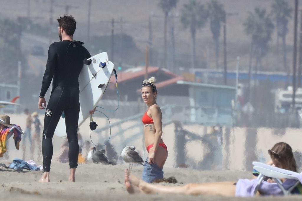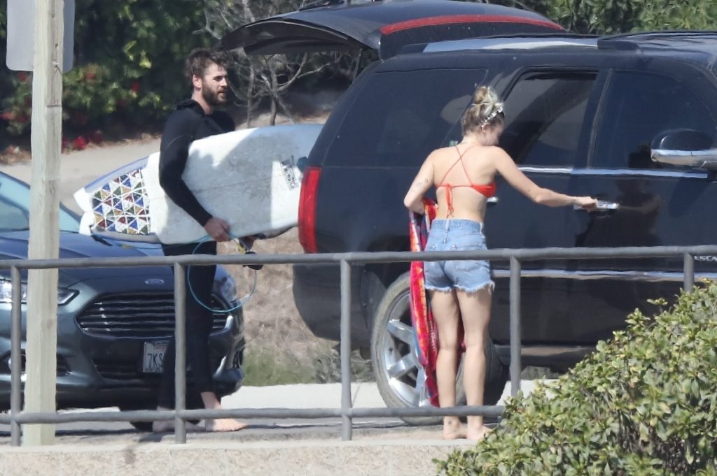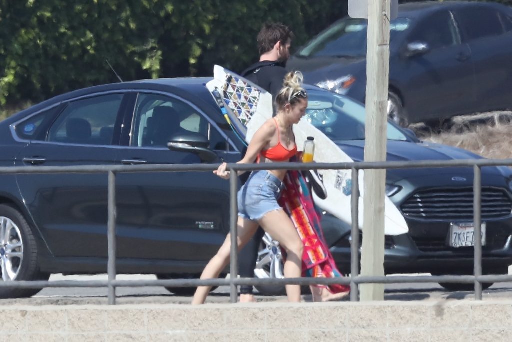 Miley Cyrus, 24 ans, s’est détendue dans un bikini rouge coquin en regardant son petit ami Liam Hemsworth prendre les vagues à Malibu, le 13/10/2017. Le couple a passé un moment à se relaxer sur la plage avant de partir ensemble. Miley a enfilé un short en jean par-dessus son deux-pièces rouge tandis que Liam enlevait sa combinaison avant de s’en aller.