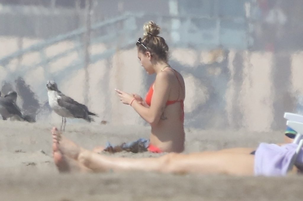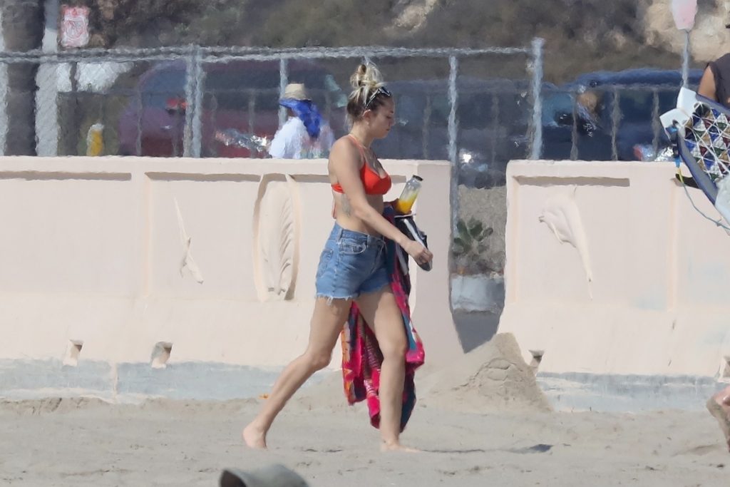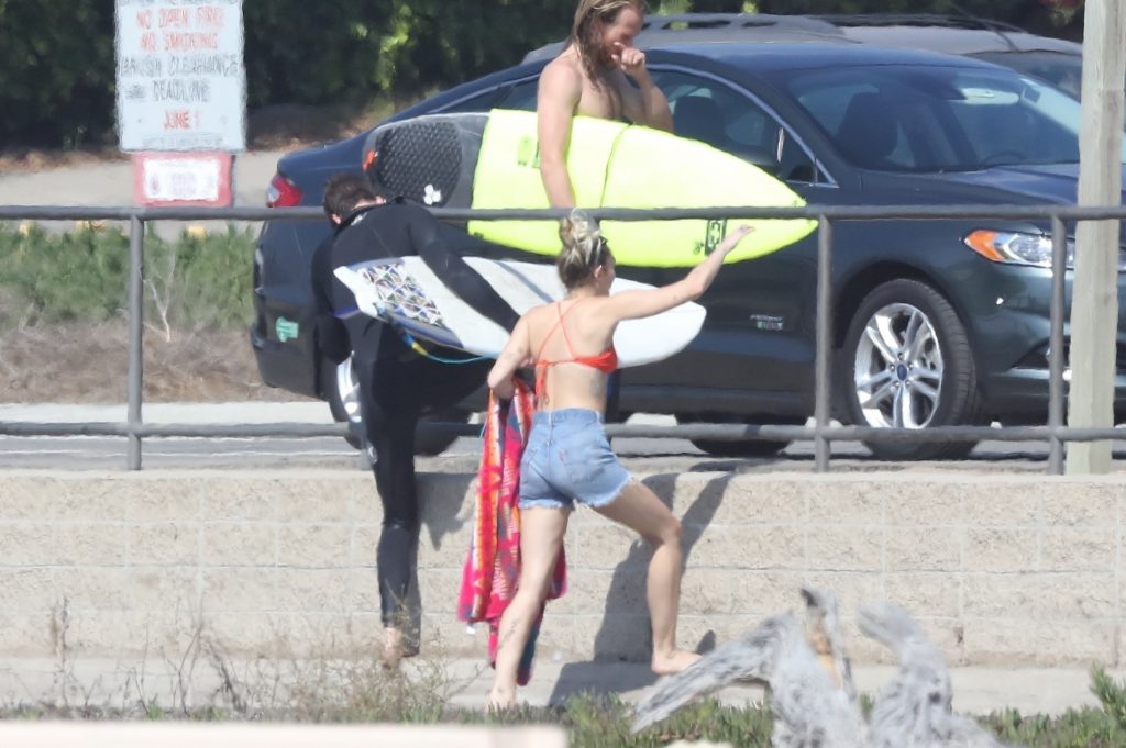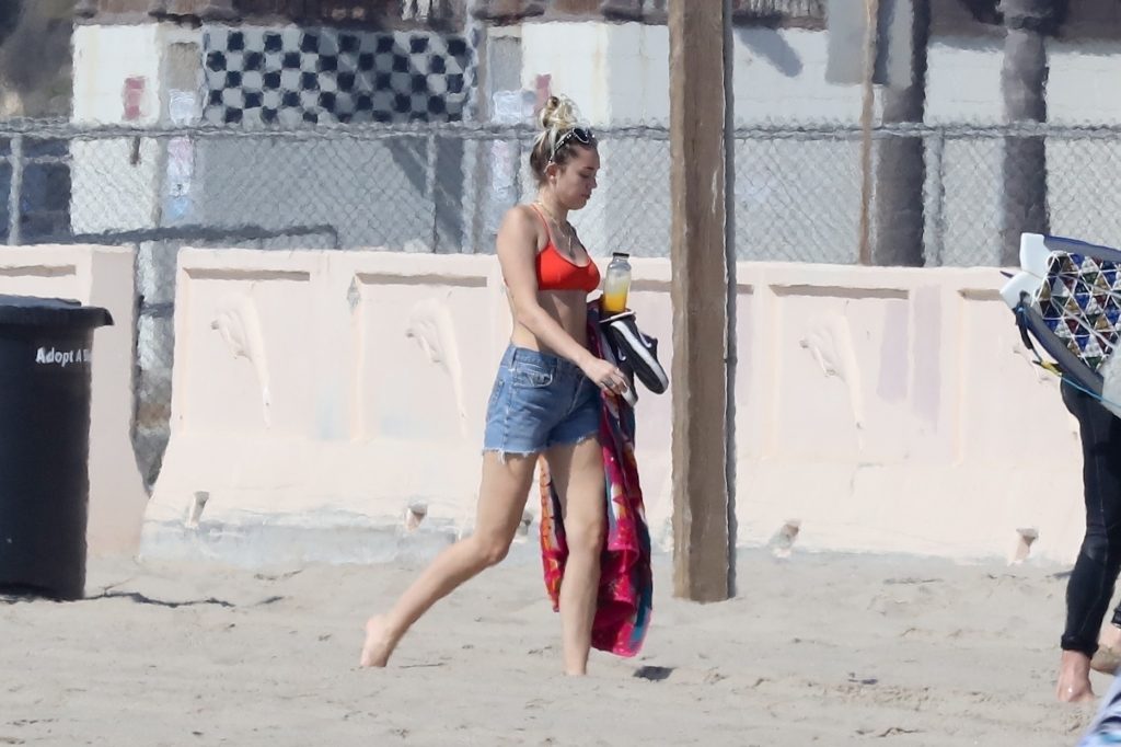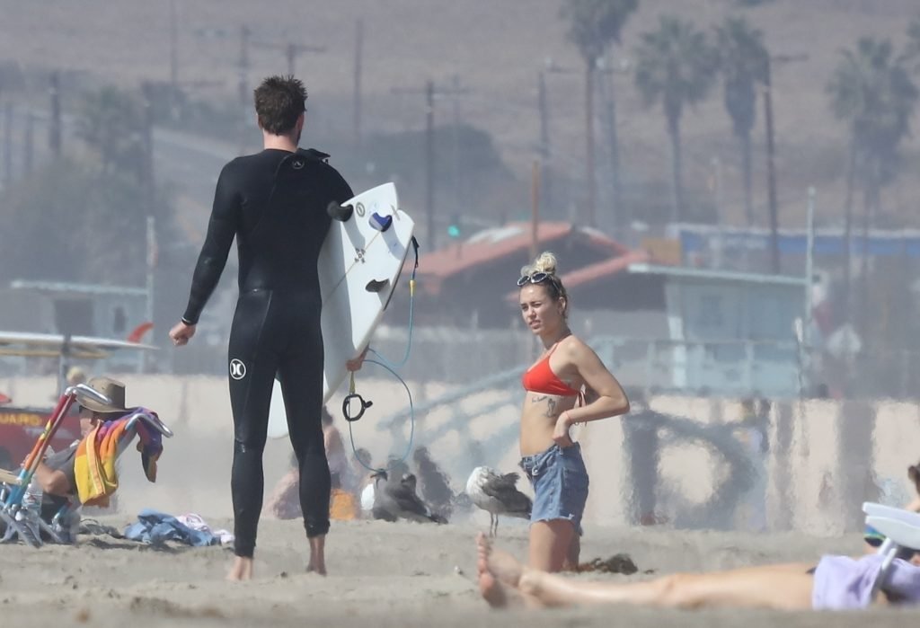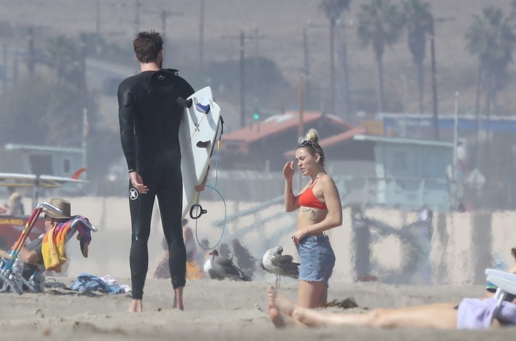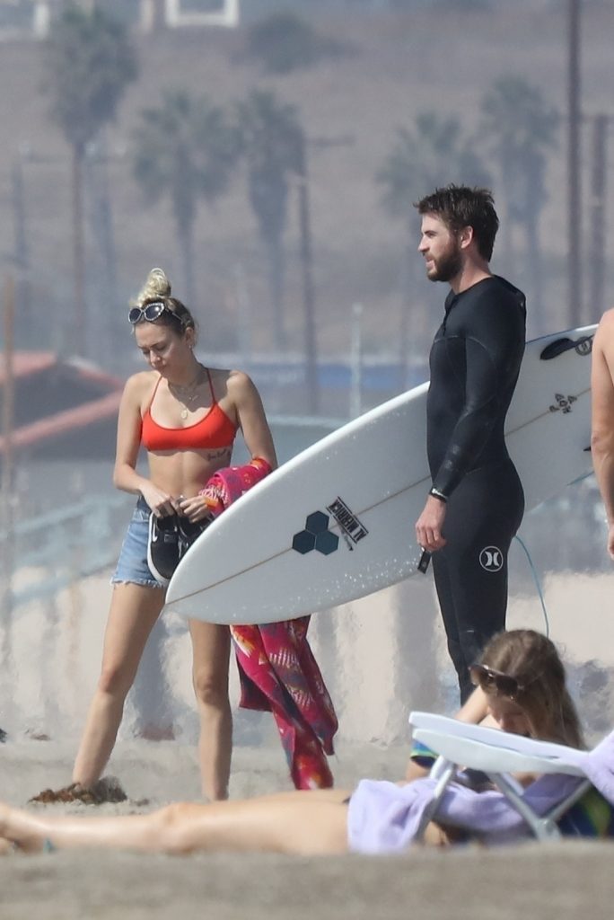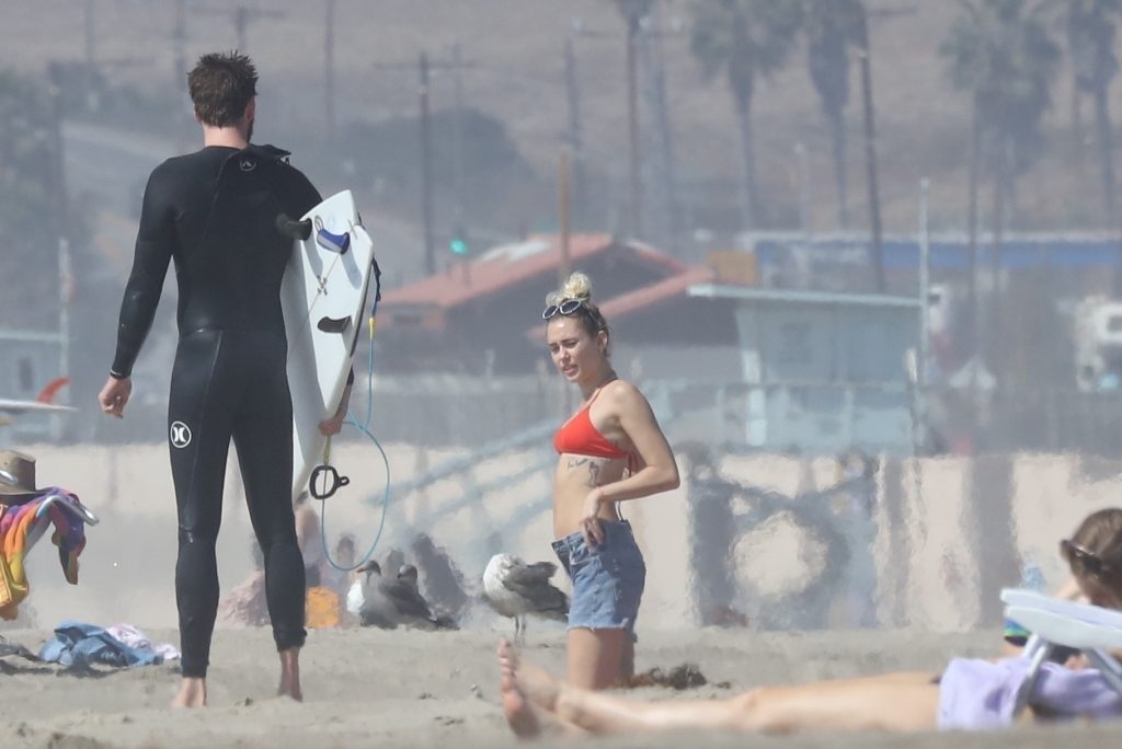 Miley Cyrus, 24 ans, s’est détendue dans un bikini rouge coquin en regardant son petit ami Liam Hemsworth prendre les vagues à Malibu, le 13/10/2017. Le couple a passé un moment à se relaxer sur la plage avant de partir ensemble. Miley a enfilé un short en jean par-dessus son deux-pièces rouge tandis que Liam enlevait sa combinaison avant de s’en aller.