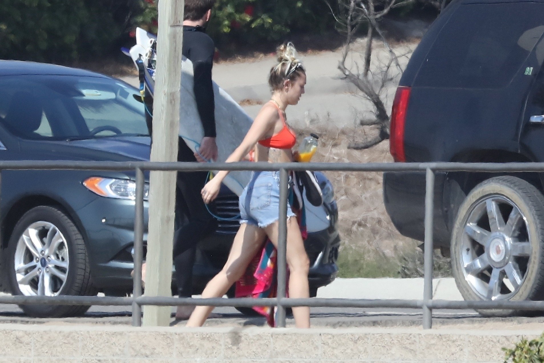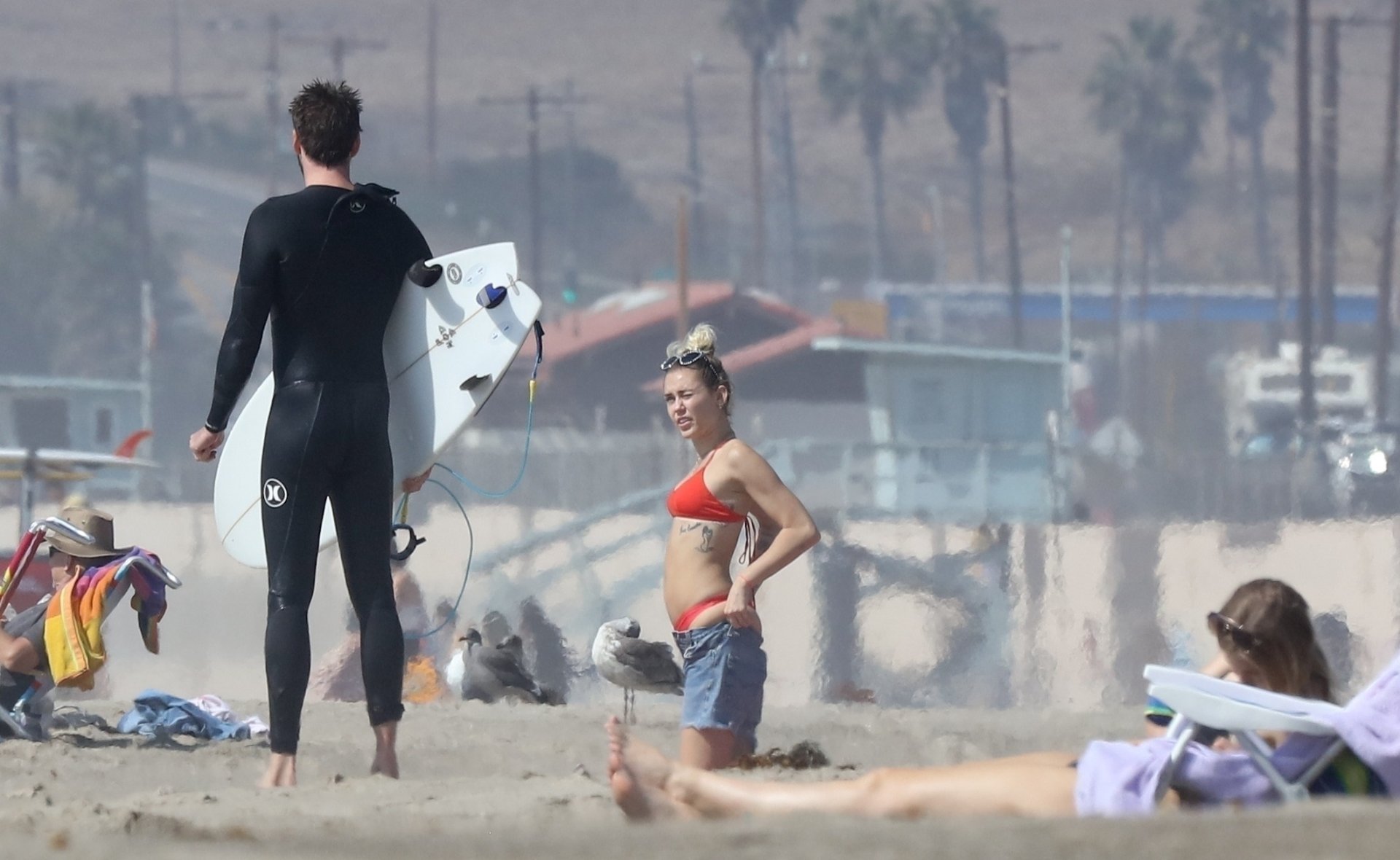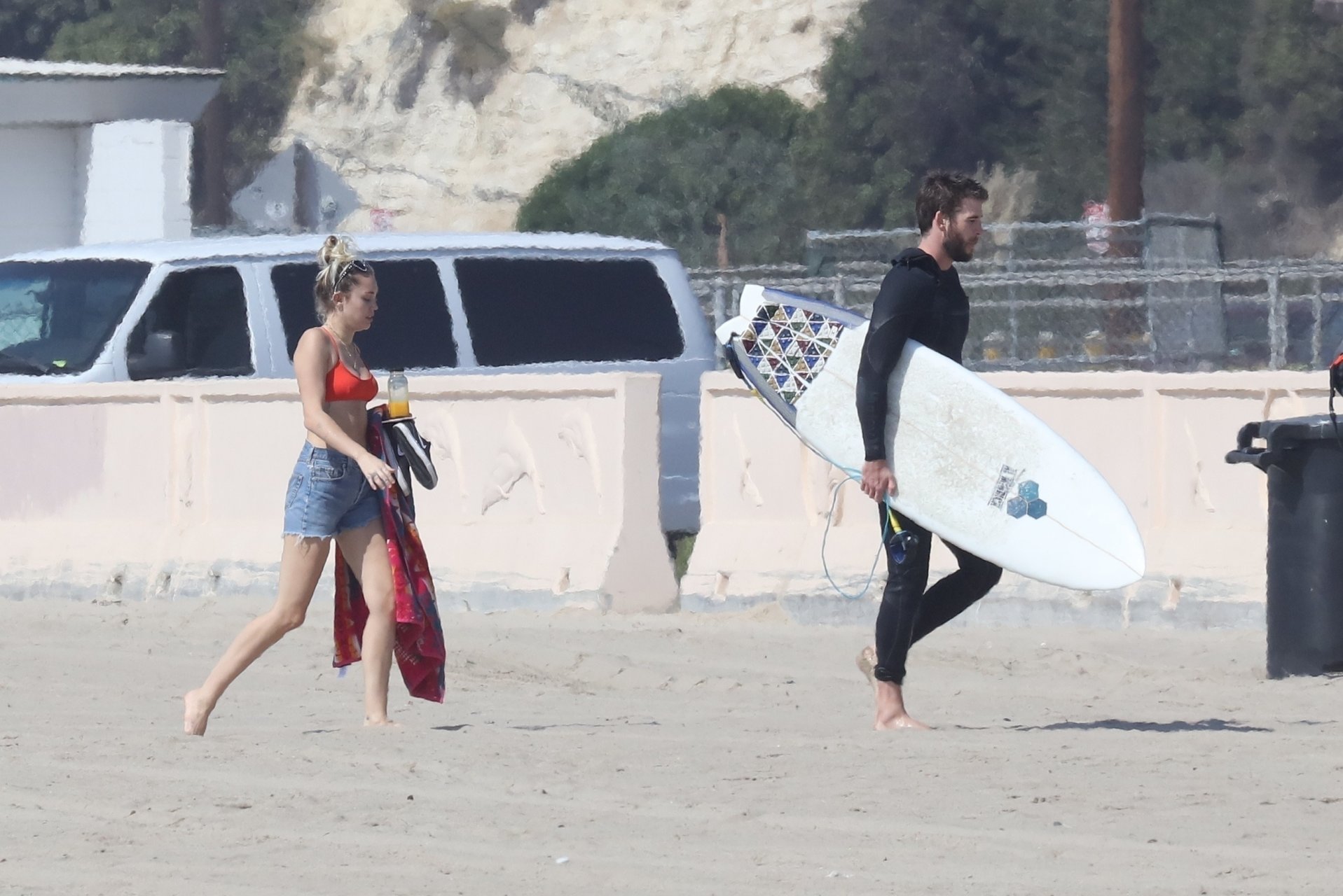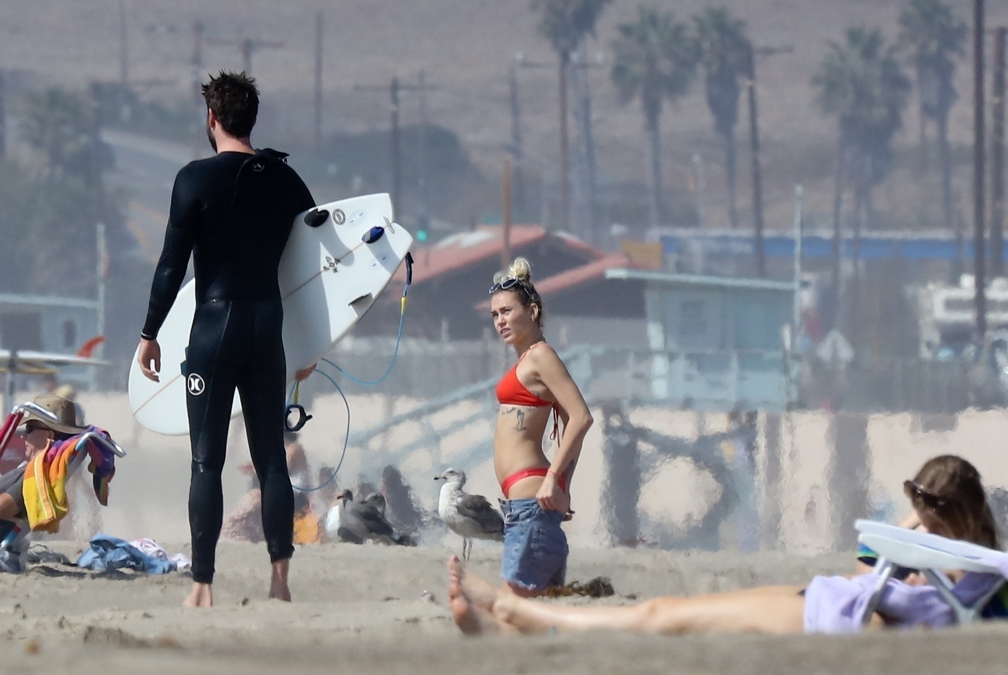 Miley Cyrus, 24 ans, s’est détendue dans un bikini rouge coquin en regardant son petit ami Liam Hemsworth prendre les vagues à Malibu, le 13/10/2017. Le couple a passé un moment à se relaxer sur la plage avant de partir ensemble. Miley a enfilé un short en jean par-dessus son deux-pièces rouge tandis que Liam enlevait sa combinaison avant de s’en aller.