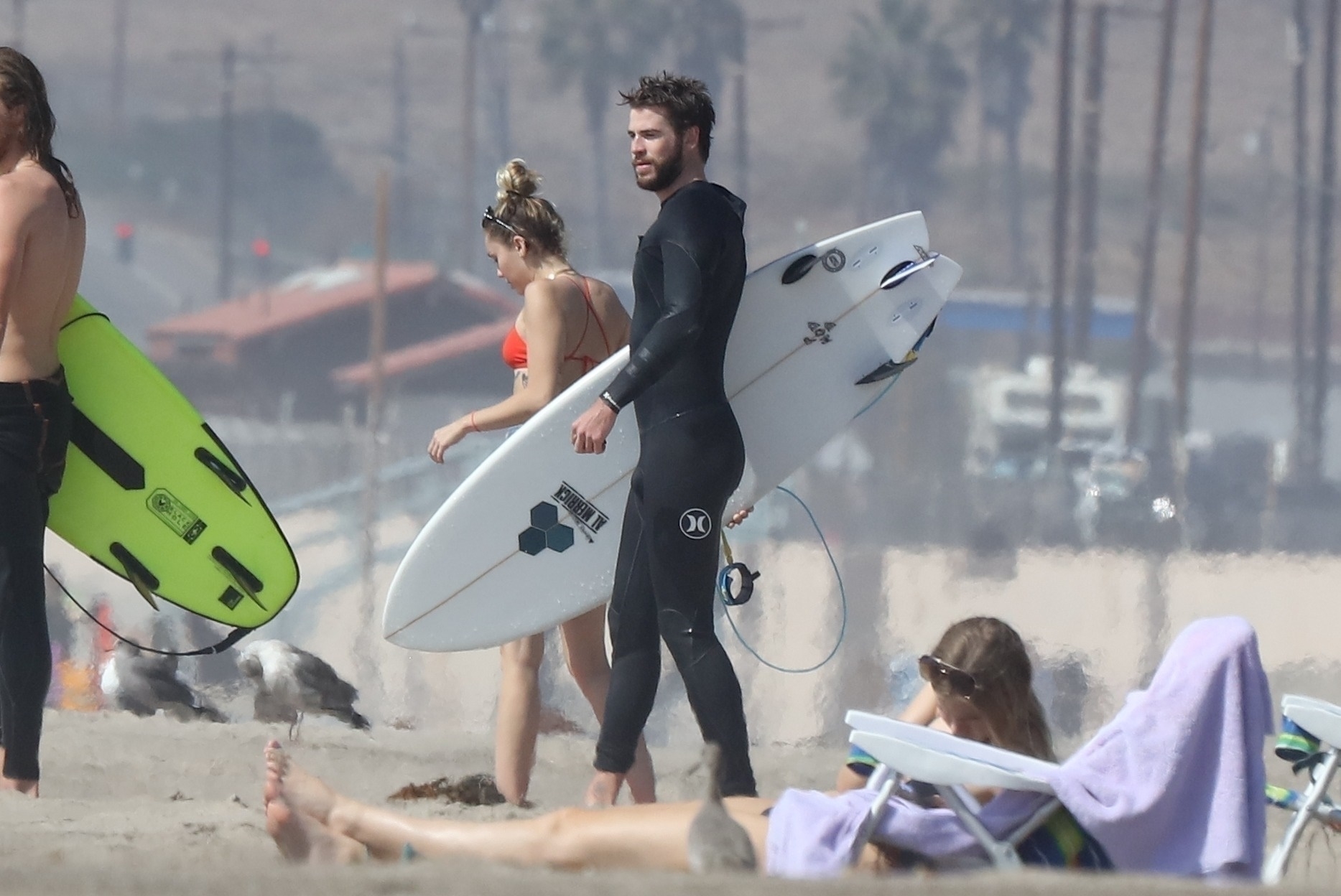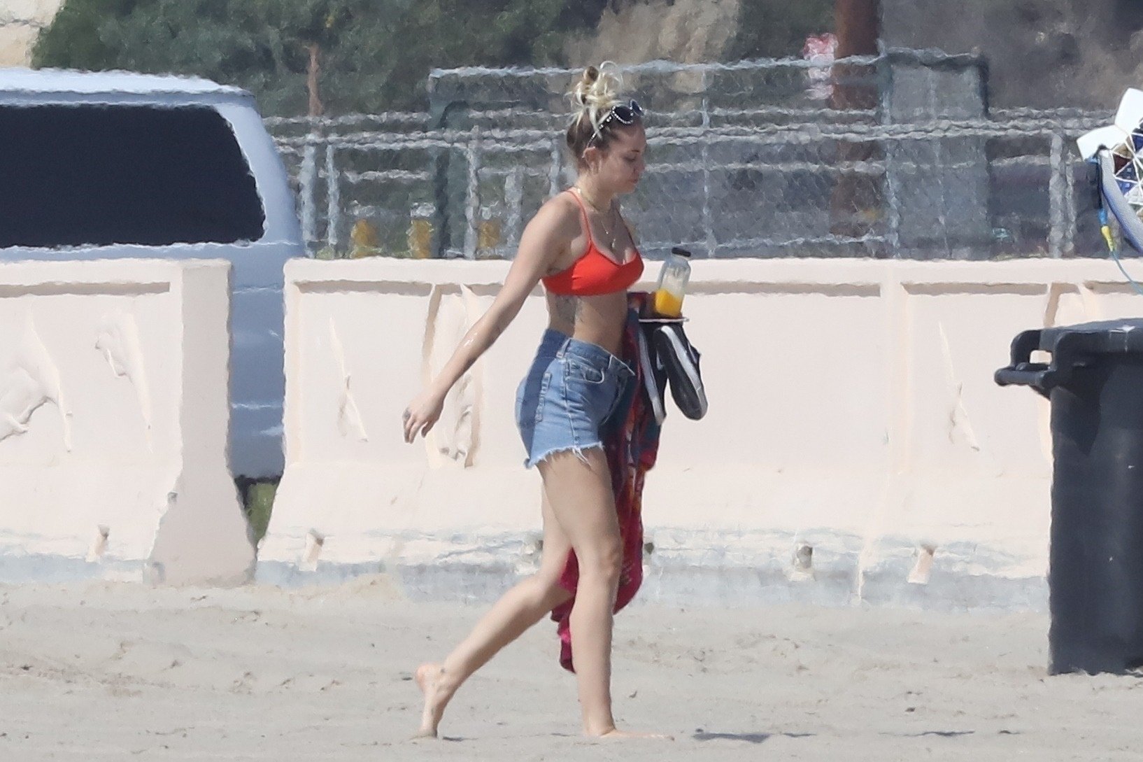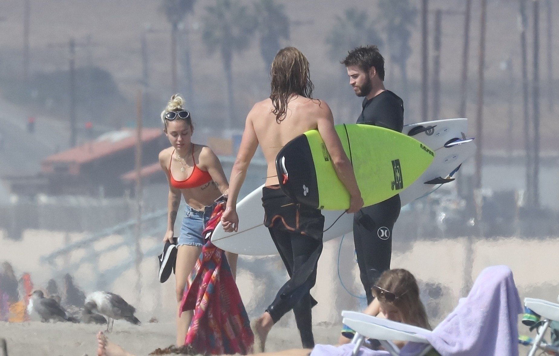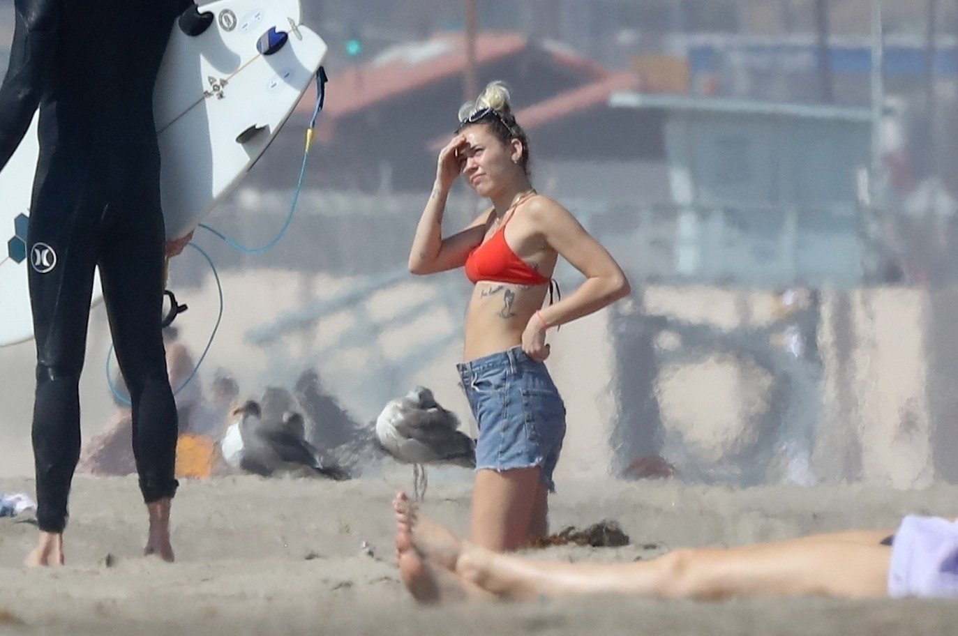 Miley Cyrus, 24 ans, s’est détendue dans un bikini rouge coquin en regardant son petit ami Liam Hemsworth prendre les vagues à Malibu, le 13/10/2017. Le couple a passé un moment à se relaxer sur la plage avant de partir ensemble. Miley a enfilé un short en jean par-dessus son deux-pièces rouge tandis que Liam enlevait sa combinaison avant de s’en aller.