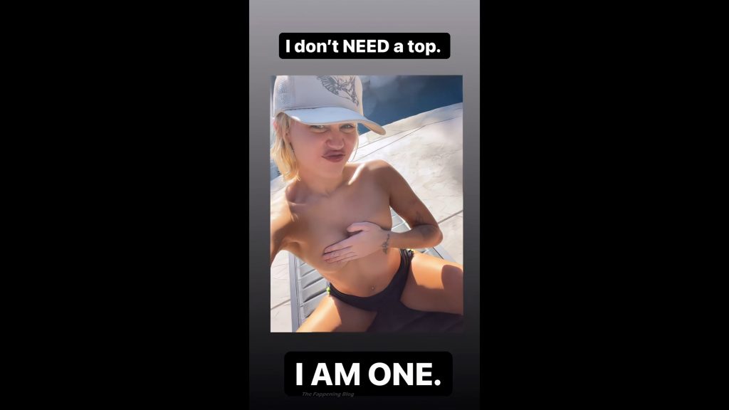 La chanteuse Miley Cyrus pose topless au bord de la piscine, couvrant ses petits seins – Instagram, 13/03/2021. C’est la star numéro un du Fappening !