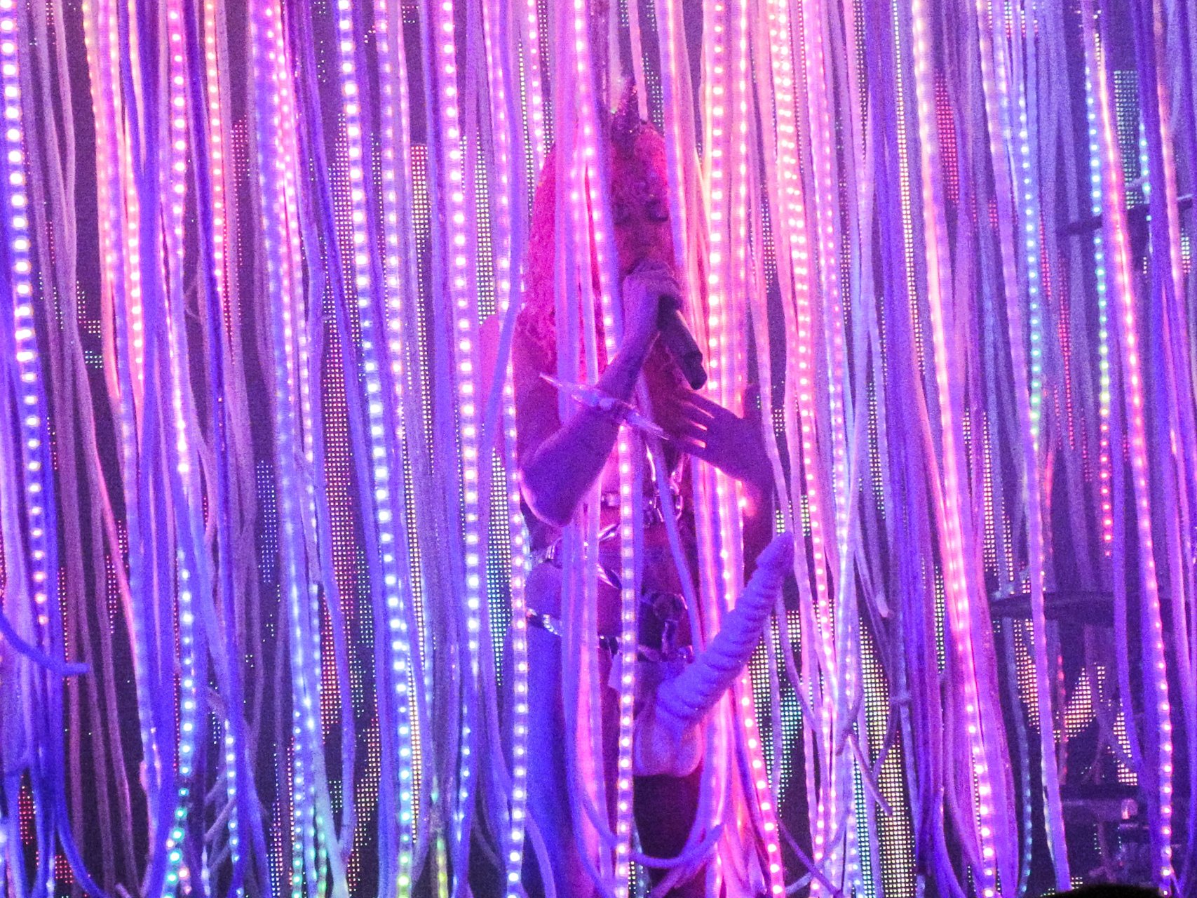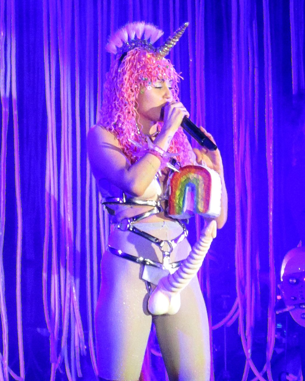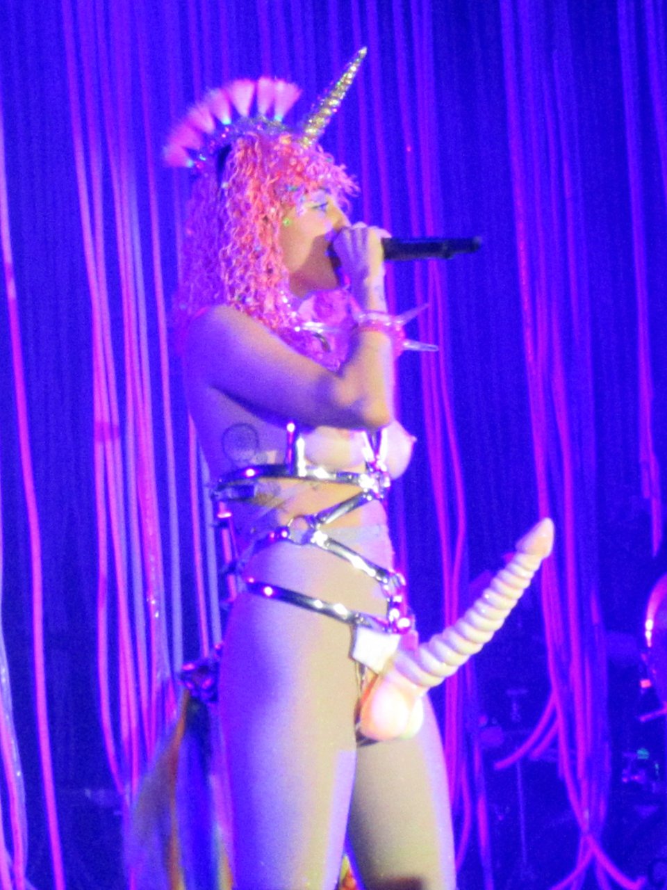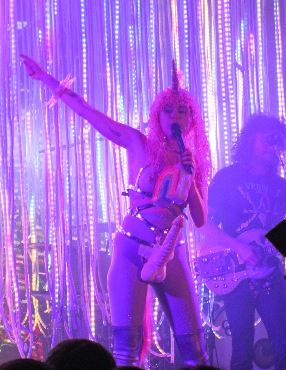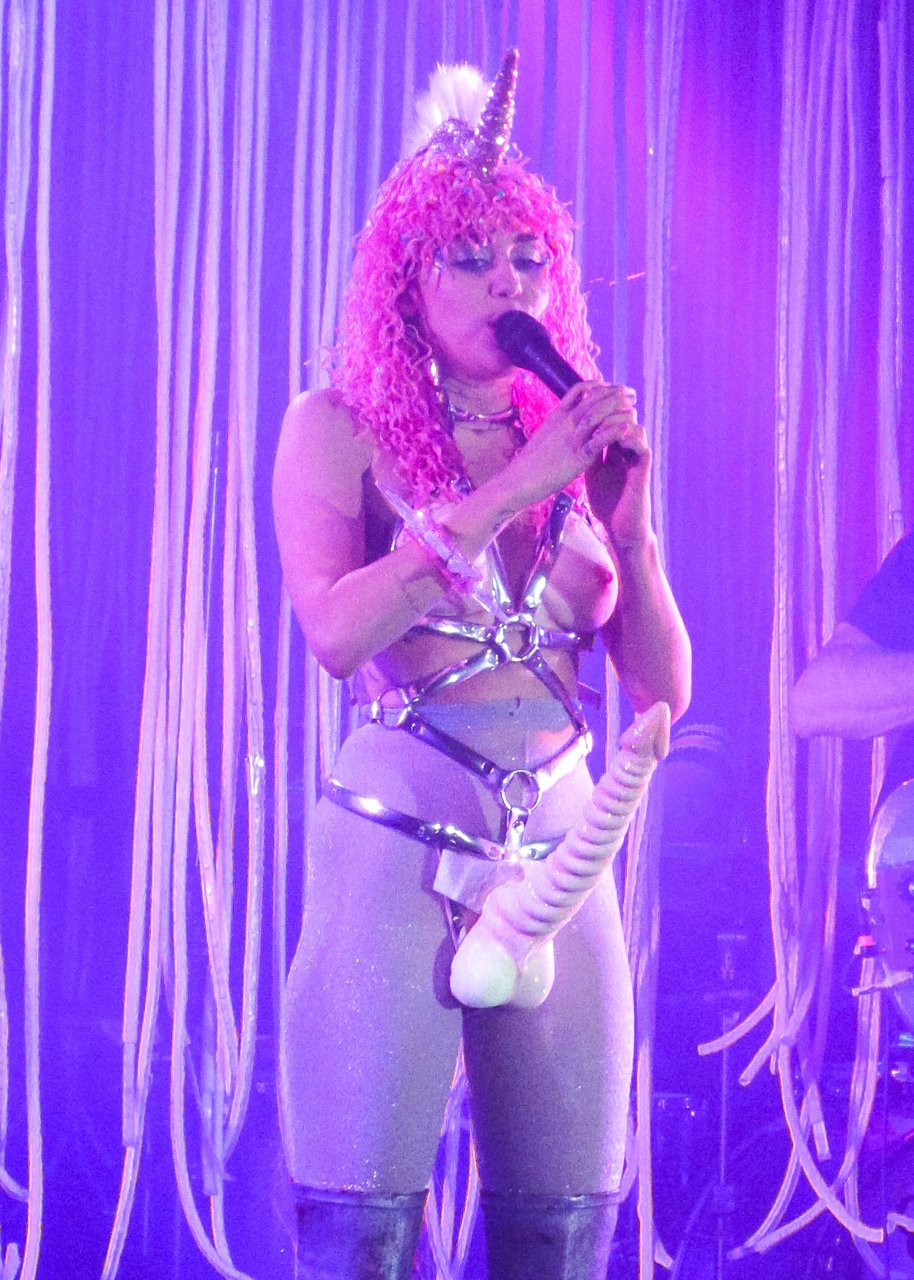 Miley Cyrus se produit en live à l’Echostage à Washington DC, le 27/11/2015. Miley Cyrus est une actrice et chanteuse américaine. Âge 23 ans (23 novembre 1992).