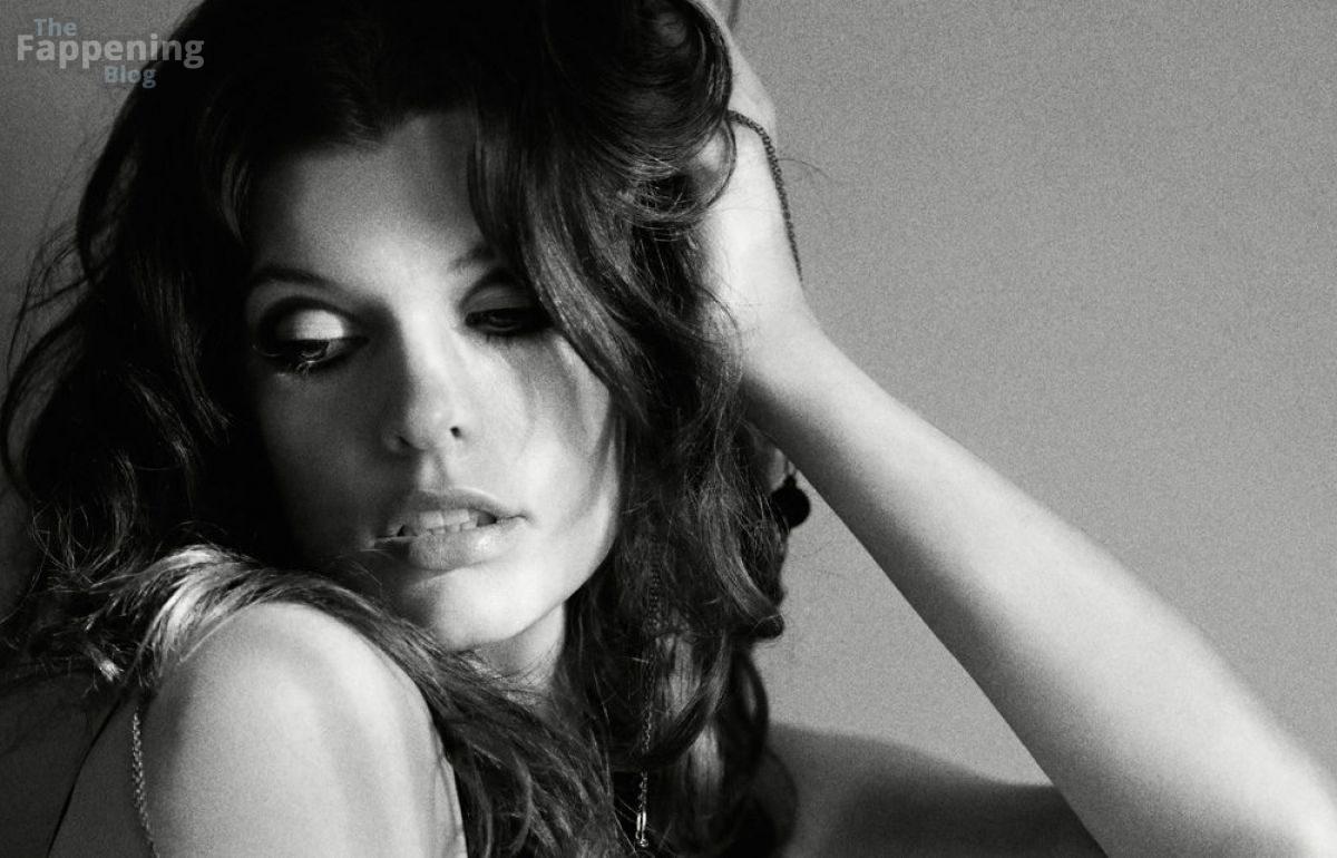L’actrice Milla Jovovich se déshabille complètement nue et seins nus pour le magazine Interview (2009).