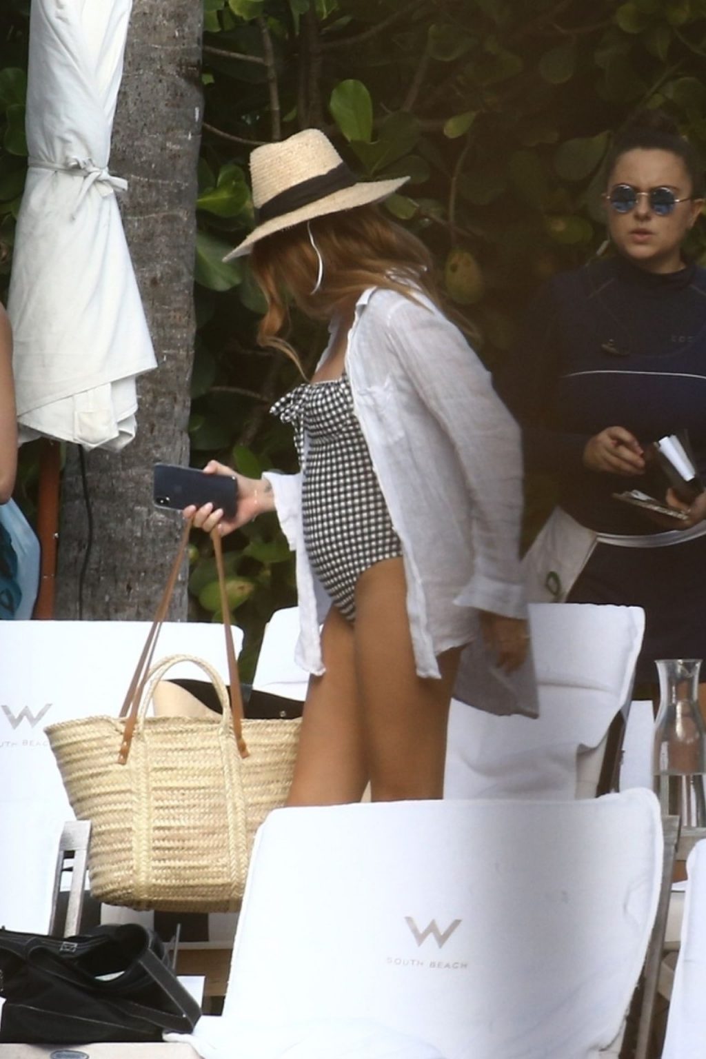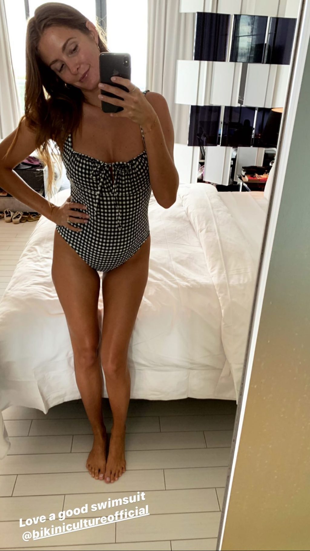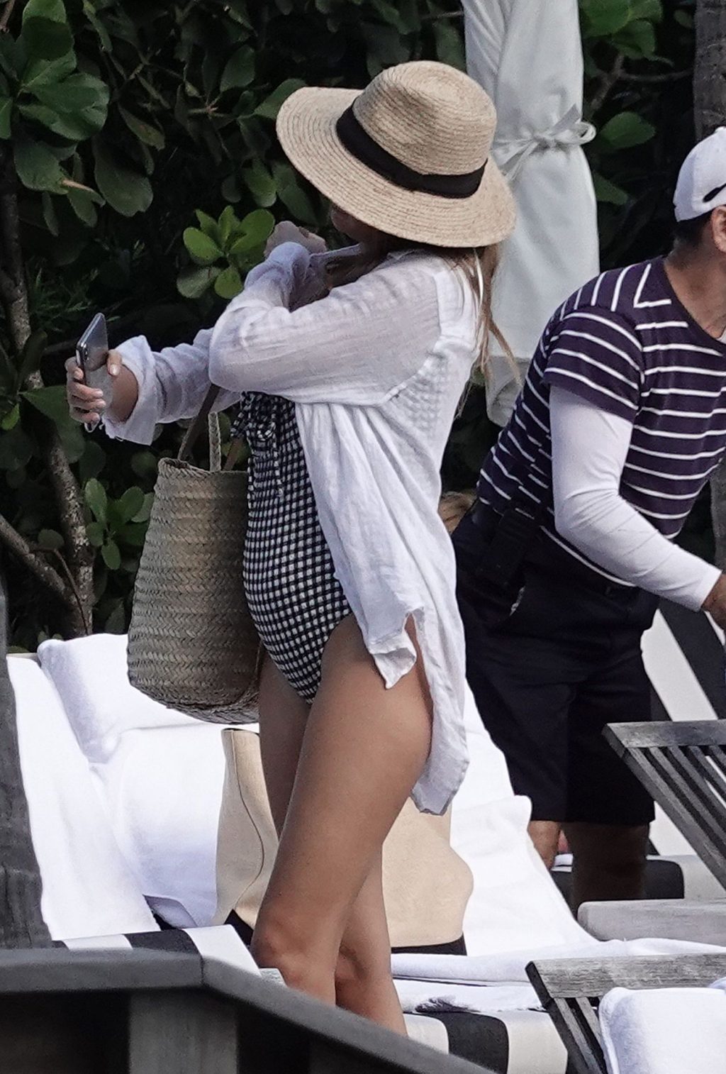 La star enceinte Millie Mackintosh montre son ventre de grossesse en maillot de bain et caresse tendrement son ventre tout en se relaxant au bord de la piscine à Miami, 21/11/2019.