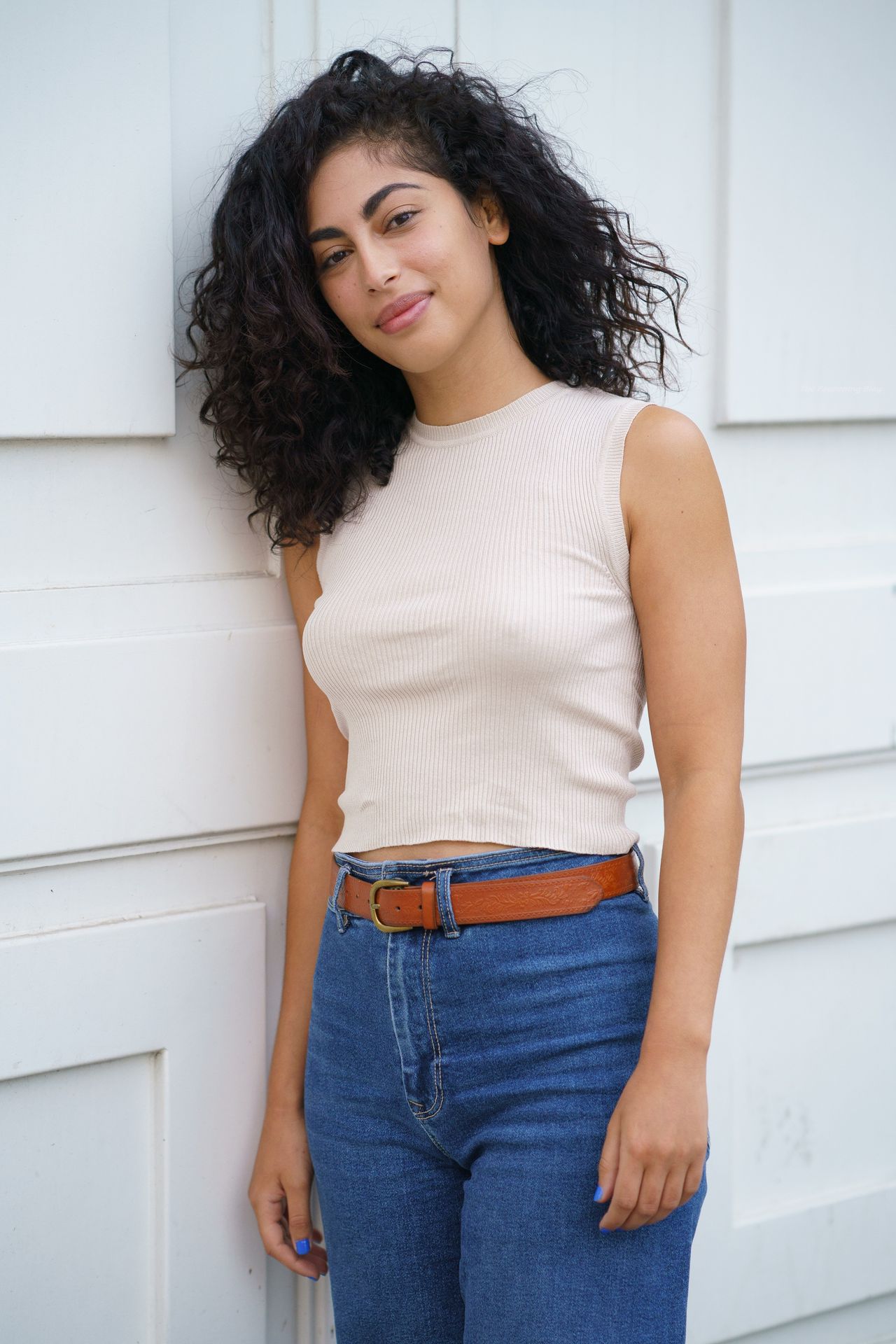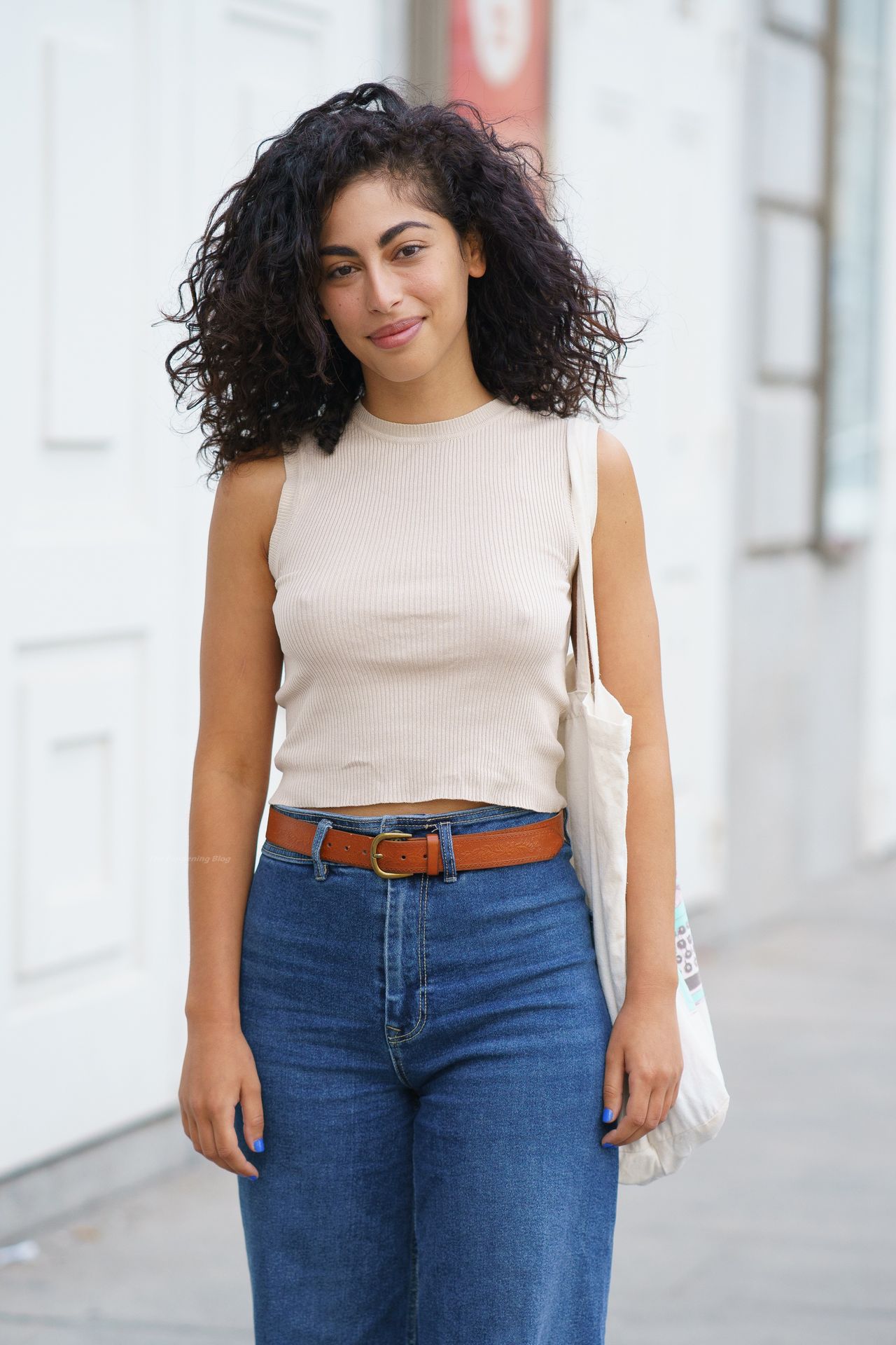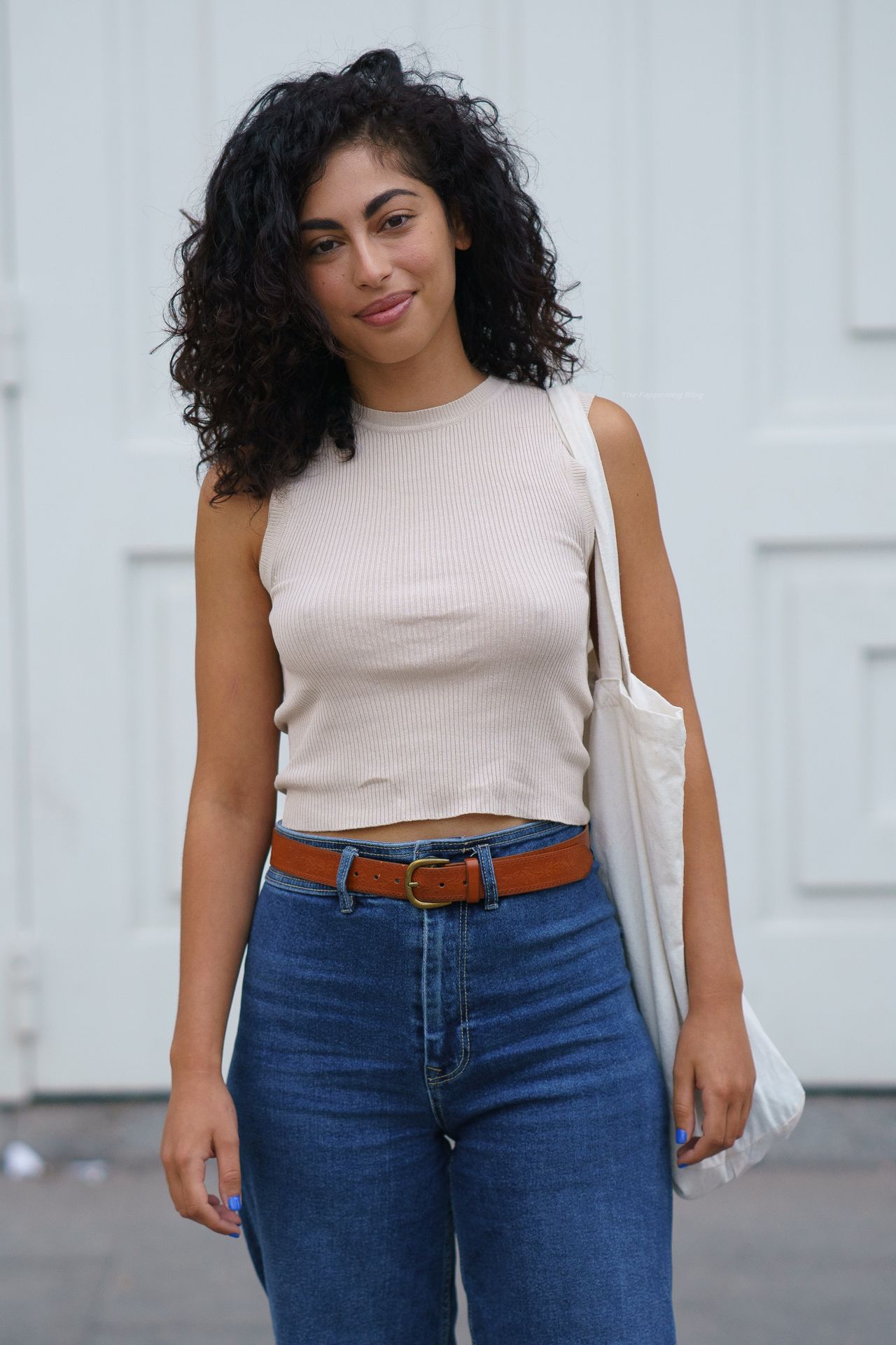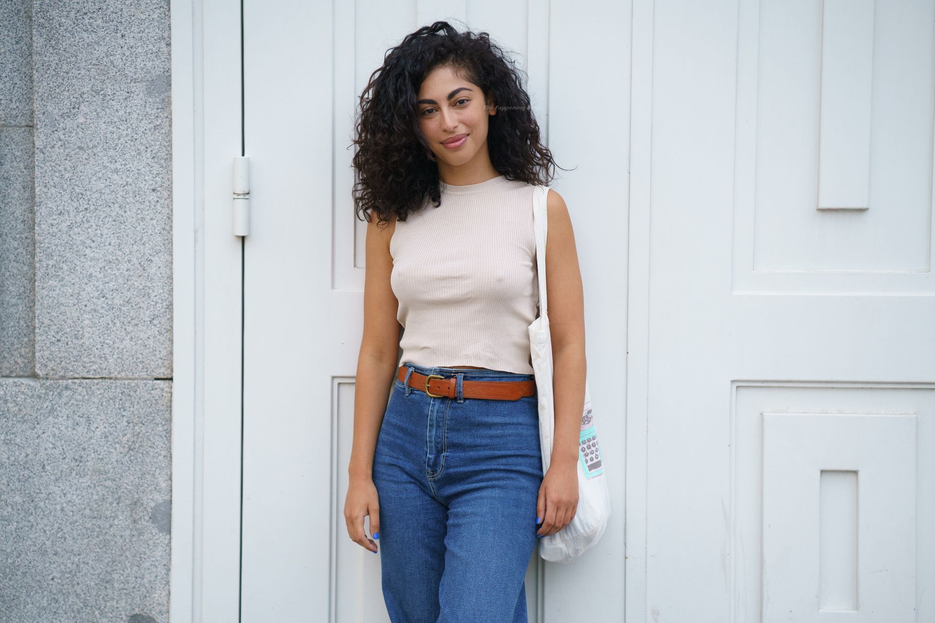 Mina El Hammani pose sans soutien-gorge lors d’une séance portrait à Madrid, Espagne, 09/07/2021.