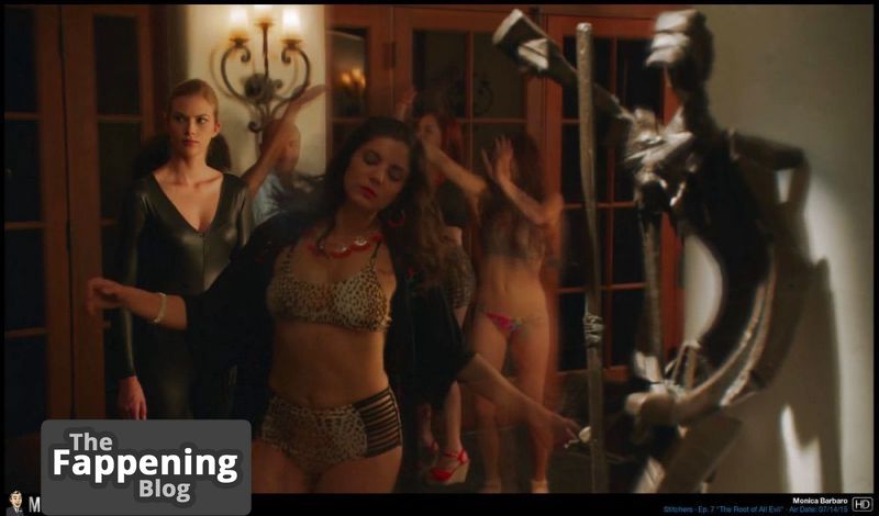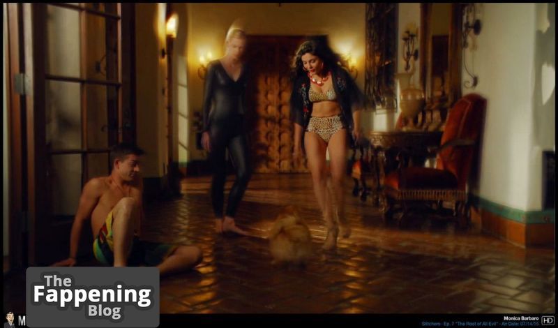 "La collection de photos de Monica Barbaro présente ses images partiellement nues et séduisantes, comprenant ses seins nus, un décolleté généreux sans soutien-gorge, des fesses attrayantes, des jambes et sa silhouette impressionnante vêtue de tenues révélatrices et de lingerie.