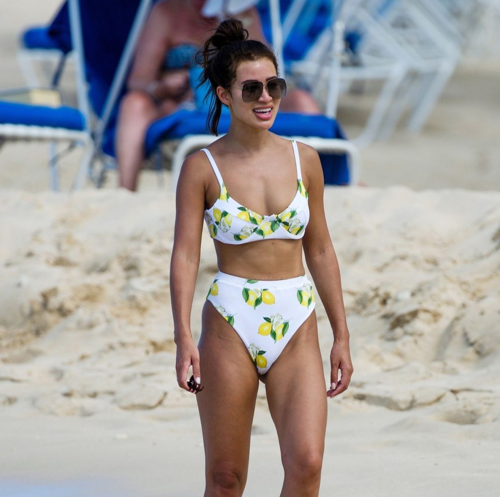 Love Island’s Montana Brown porte un bikini à motif citron alors qu’elle profite d’une journée à la plage à la Barbade, 27/12/2020.