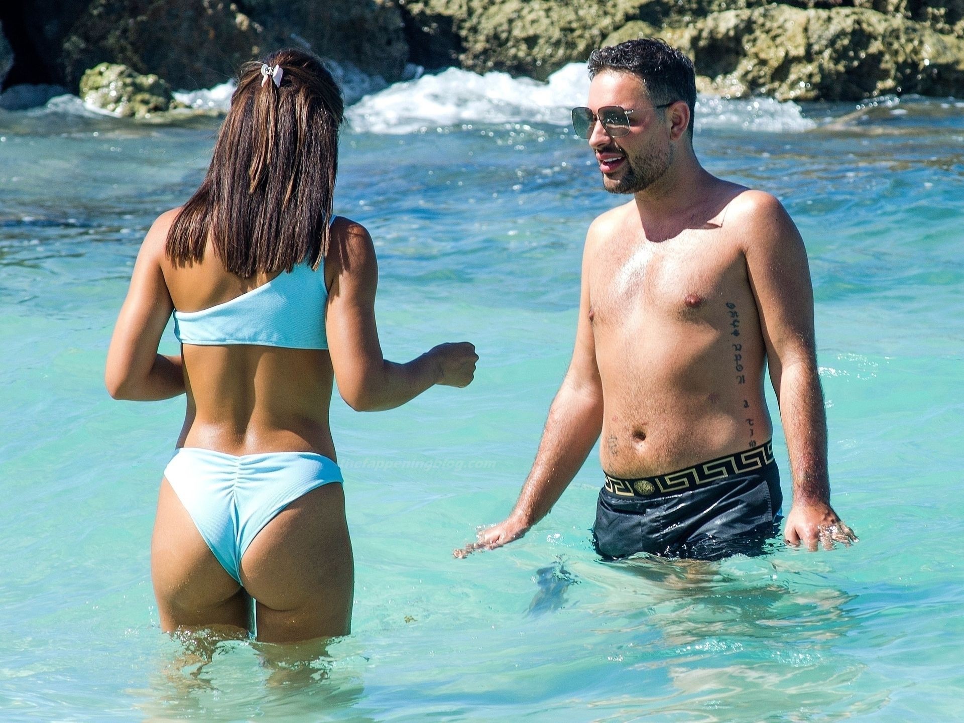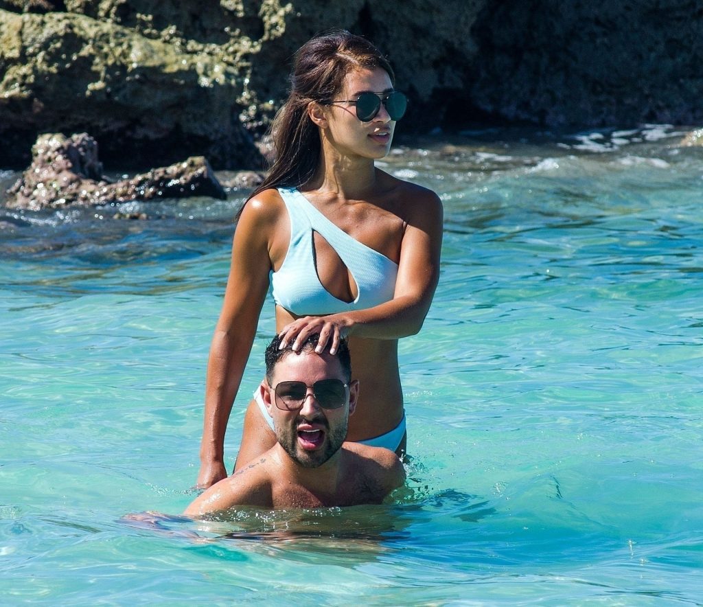 Montrant sa silhouette sensuelle de plage, la star de Love Island Montana Brown porte un bikini deux pièces bleu clair alors qu’elle est aperçue sur la plage de la paroisse de St. James lors de ses vacances d’hiver à la Barbade, 31/12/2020.