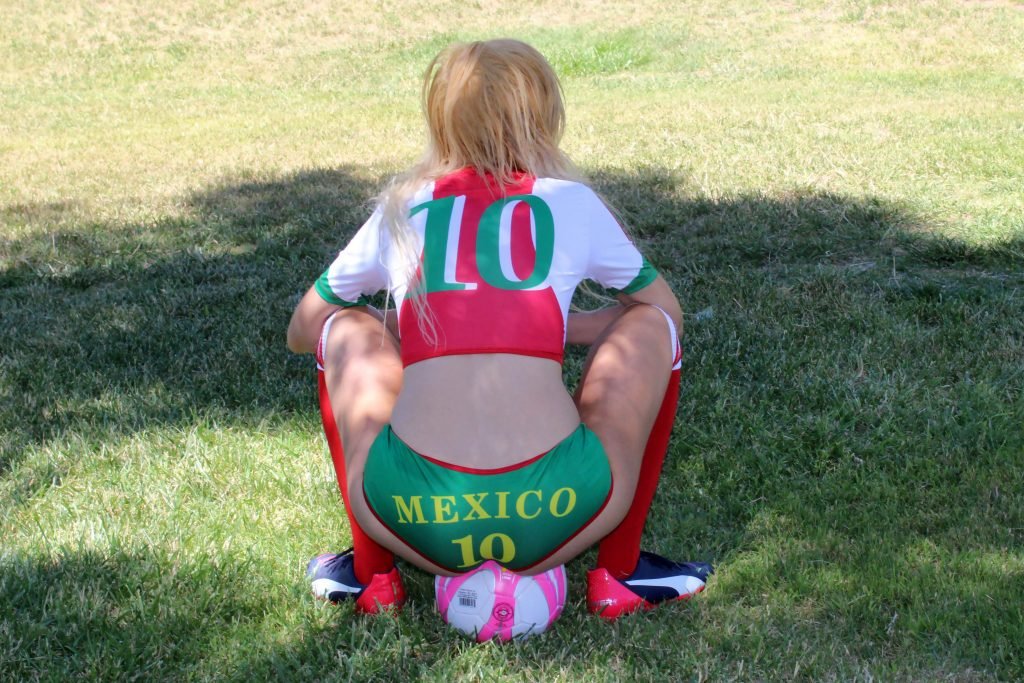 Nadeea Volianova célèbre le Cinco De Mayo avec une séance photo de football sexy pour ses fans mexicains, 04/05/2017. Nadeea Volianova est une star pop russo-française, actrice et DJ. Âge – 30.