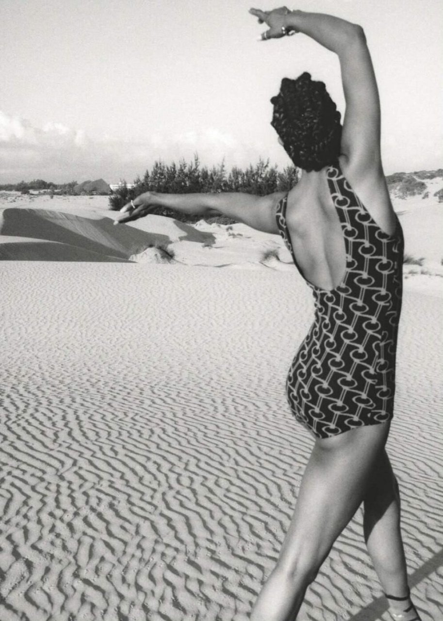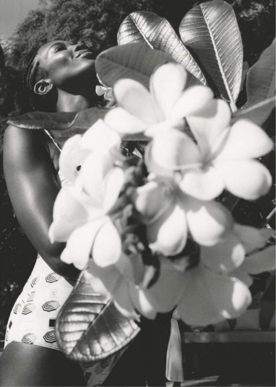 Pour le numéro de juillet 2019, la Panthère Noire a posé en maillots de bain colorés et seins nus.