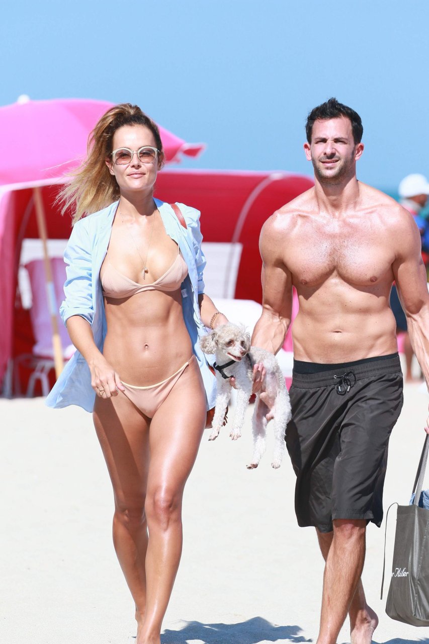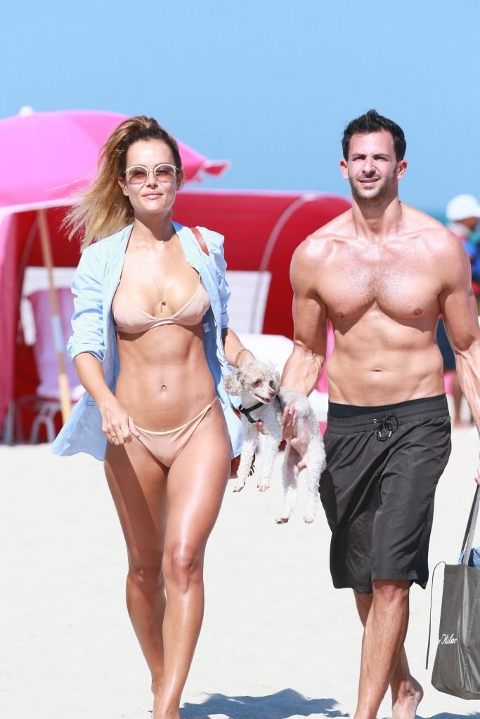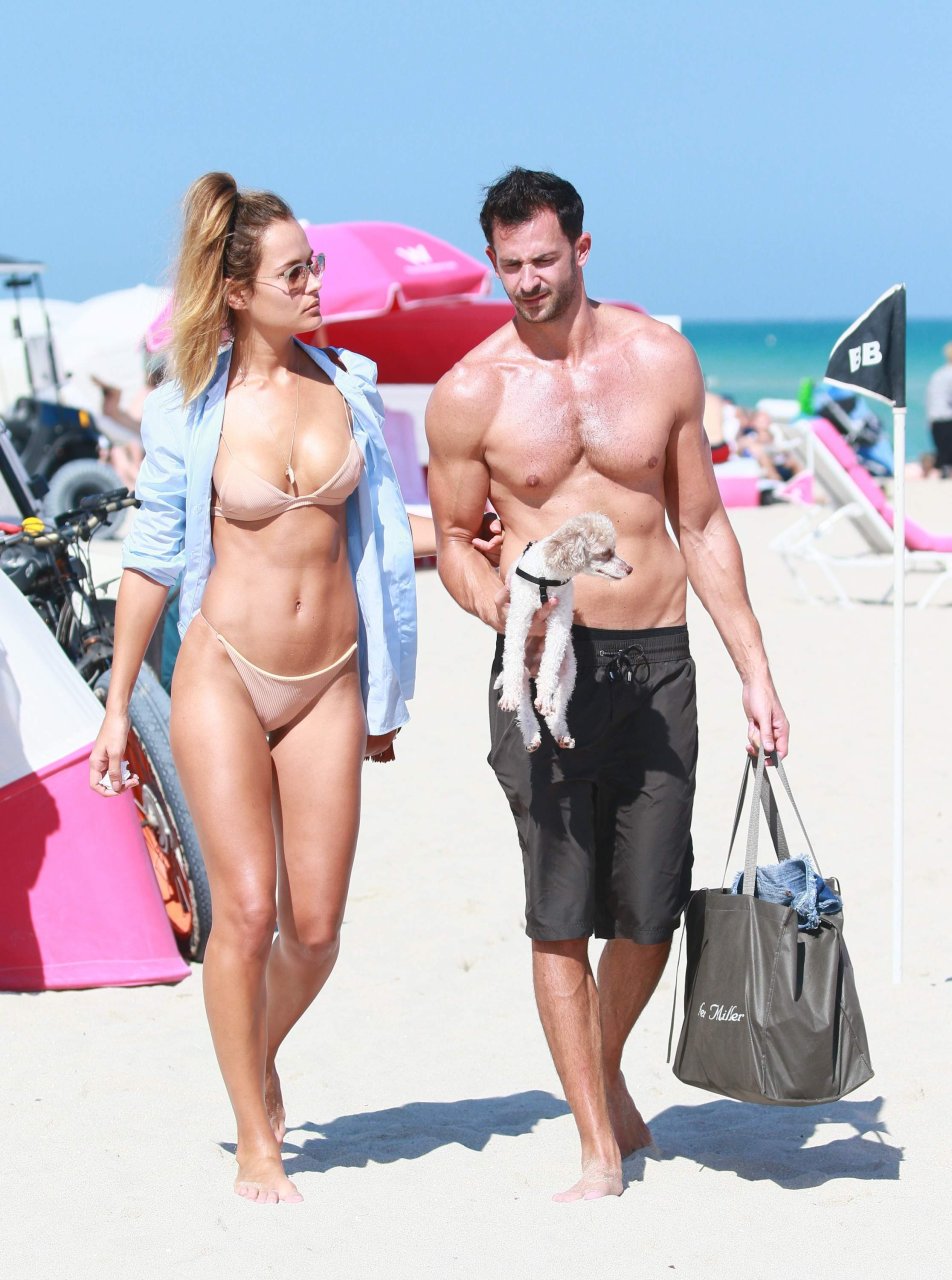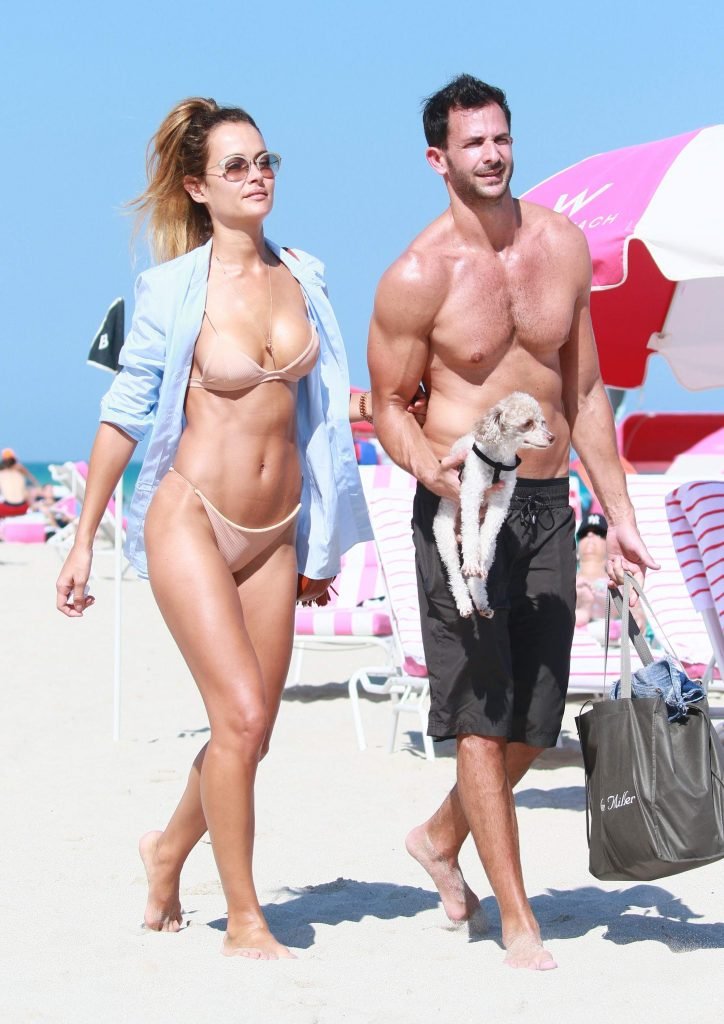Natalia Borges porte un tout petit bikini avec son petit ami et son chiot à la plage de Miami, 10/03/2017. Natalia Borges est un mannequin brésilien. Âge : 31 ans (née le 25 novembre 1985).