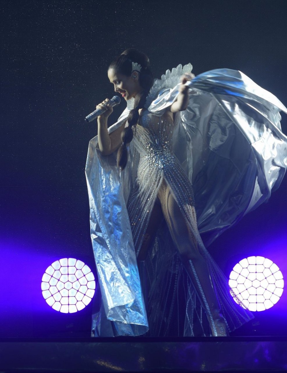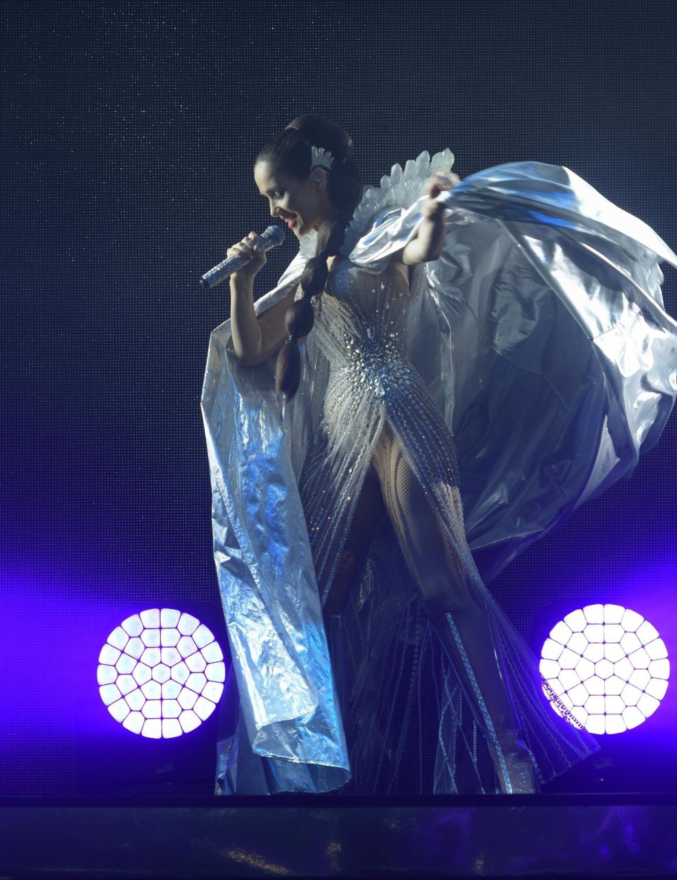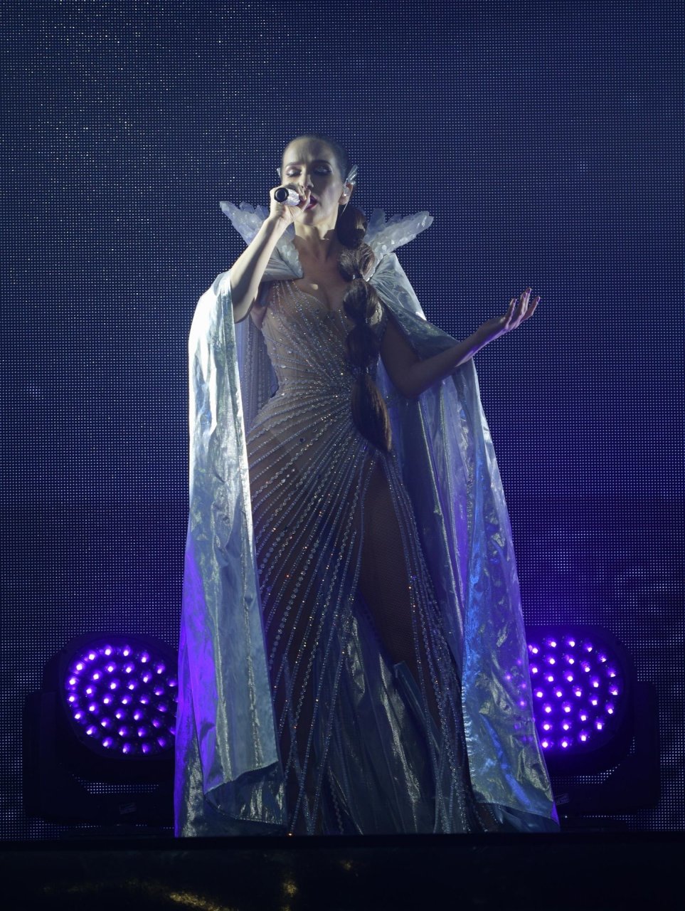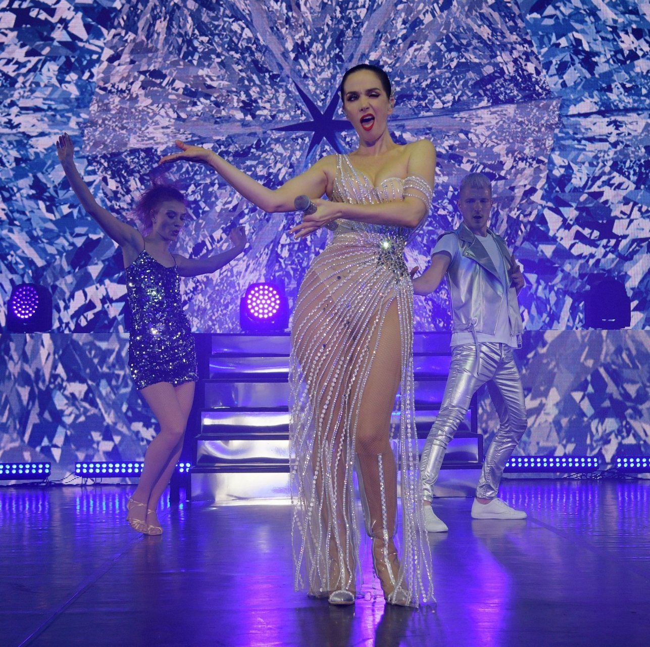 L’actrice et chanteuse uruguayenne Natalia Oreiro sur scène en concert, se produisant en direct lors de sa tournée Unforgettable au Crocus City Hall de Moscou, le 28/03/2019.
