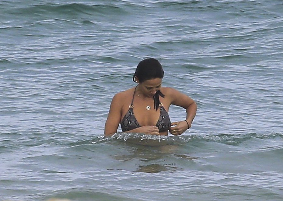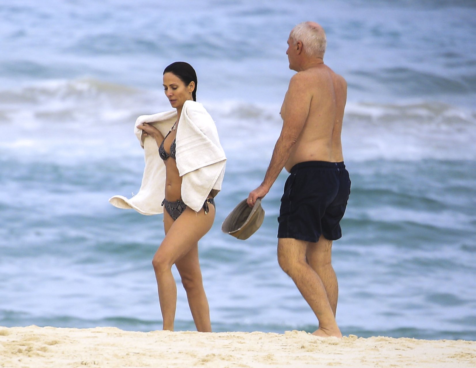Natalie Imbruglia a été aperçue en bikini avec son père à Byron Bay en Australie, le 11/04/2016. Natalie Jane Imbruglia est une chanteuse/auteure-compositrice, mannequin et actrice australienne (Neighbours). Née le 4 février 1975.