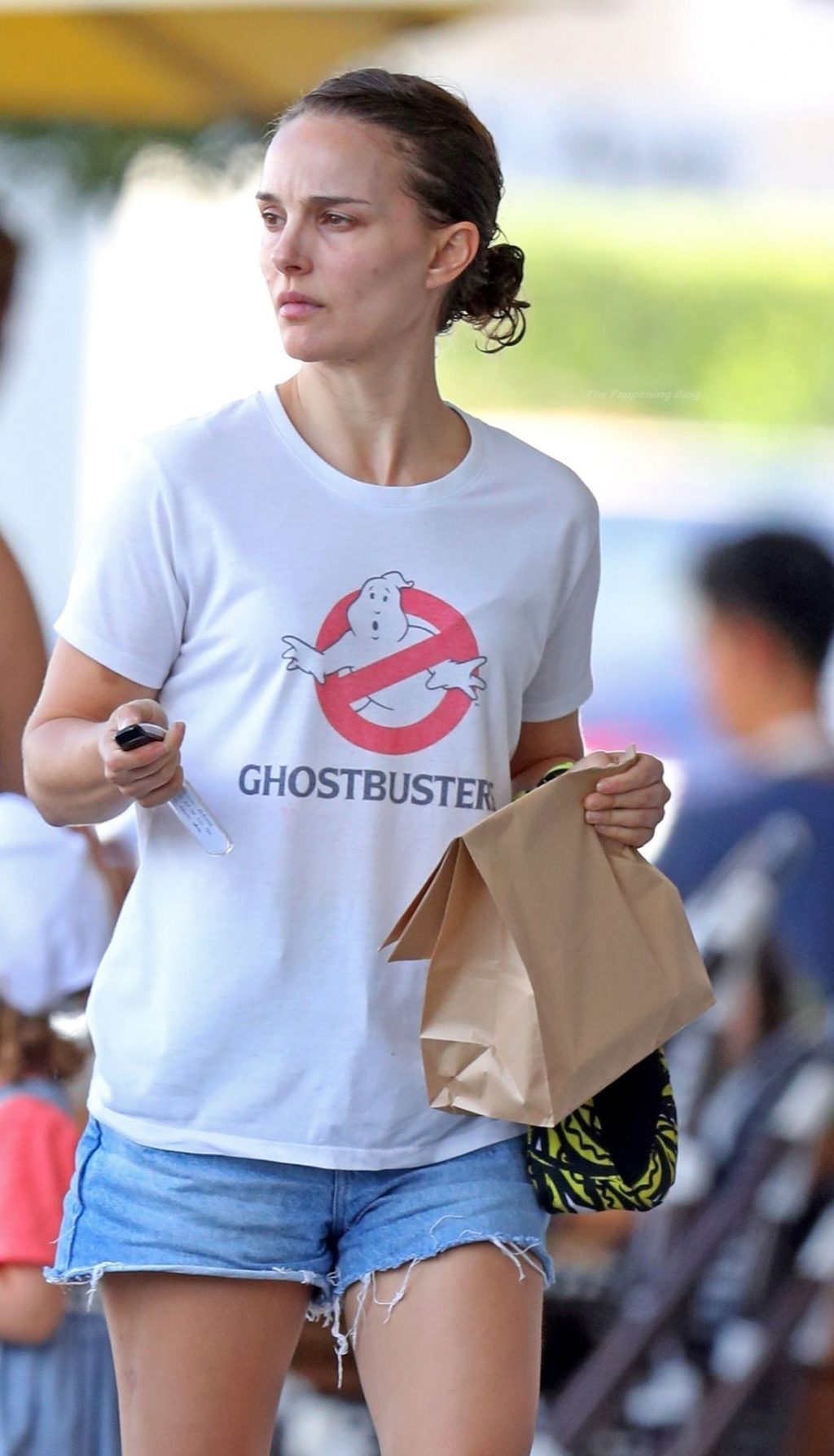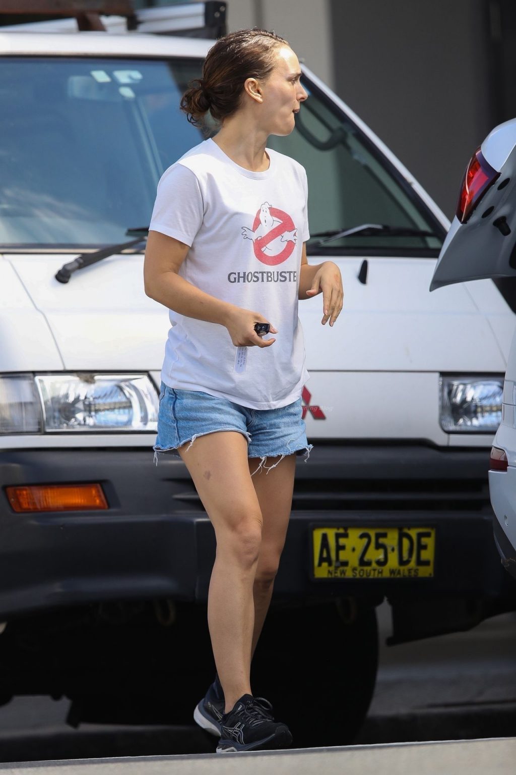Qui allez-vous appeler ! L’actrice Natalie Portman a l’air décontractée et tendance alors qu’elle est photographiée en train de faire quelques courses à Sydney, portant un T-shirt Ghostbusters cool avec un short en jean et un sac banane jaune et noir imprimé !