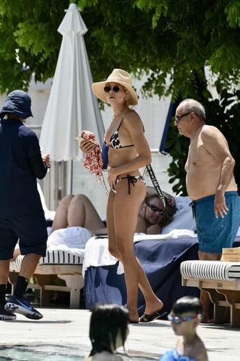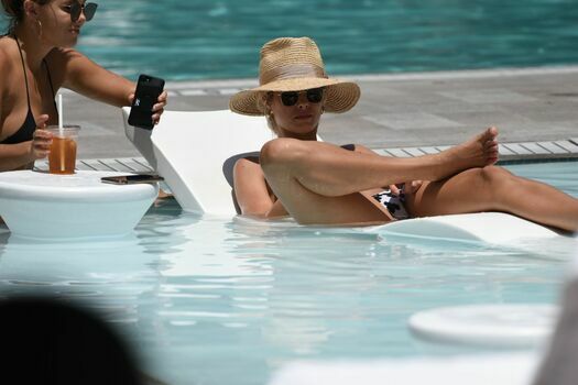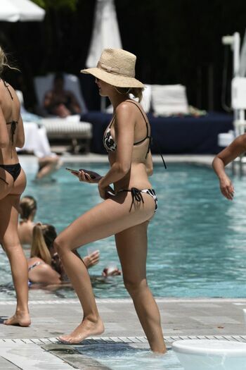 Le mannequin Natalie Roser a été vue profitant d’une journée ensoleillée en bikini noir et blanc à Miami Beach, 07/10/2019.