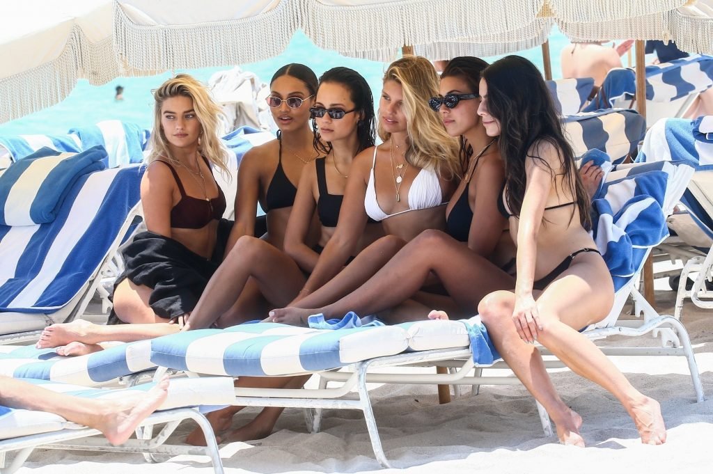 Les blogueuses Natasha Oakley, Devin Brugman, Tess Jantschek, Nonny Mulholland, Anna Rosa Vitiello et Hana Habib profitent du soleil à Miami Beach (juillet 2018). Le groupe de dames est éblouissant pendant la semaine annuelle de la natation.