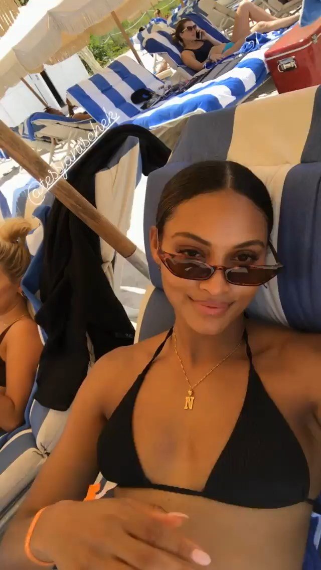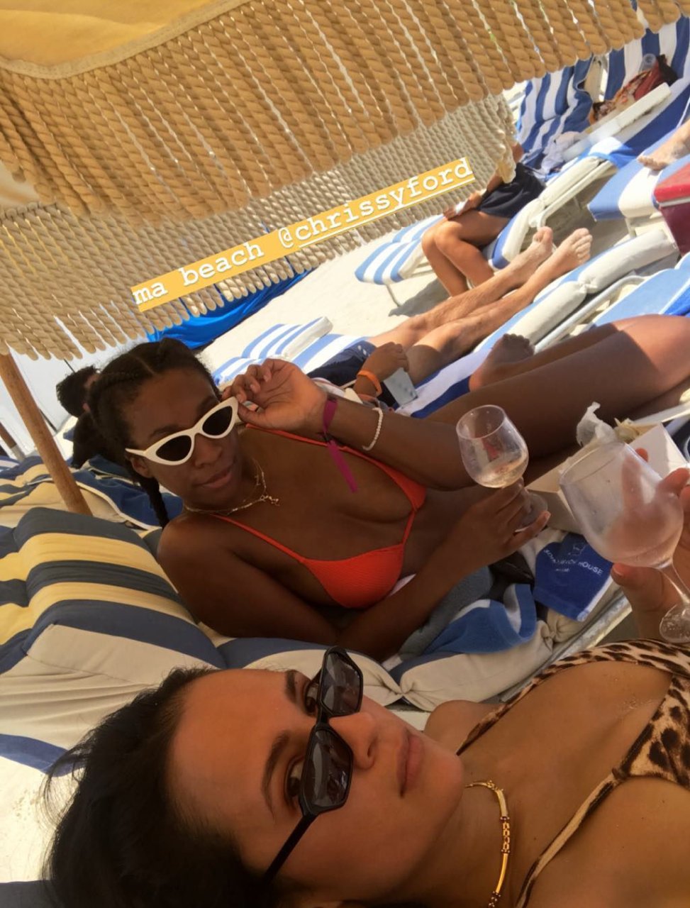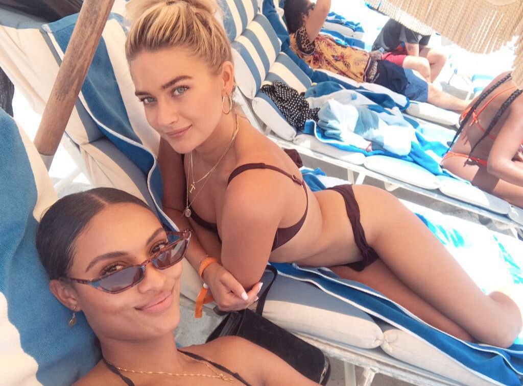 Les blogueuses Natasha Oakley, Devin Brugman, Tess Jantschek, Nonny Mulholland, Anna Rosa Vitiello et Hana Habib profitent du soleil à Miami Beach (juillet 2018). Le groupe de dames est éblouissant pendant la semaine annuelle de la natation.