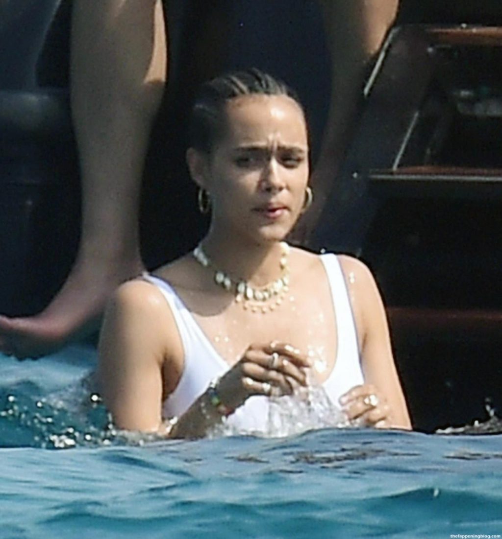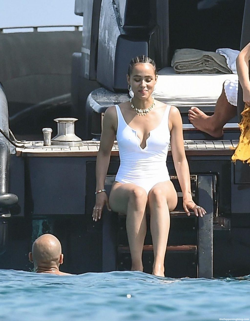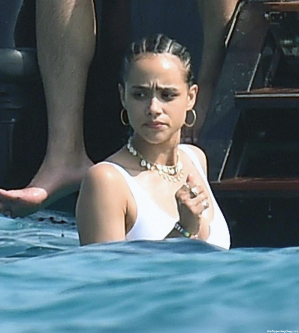 Then actress Nathalie Emmanuel wore a white swimsuit in the blazing hot sunshine on holiday with her beau Alex Lanipekun in Italy.