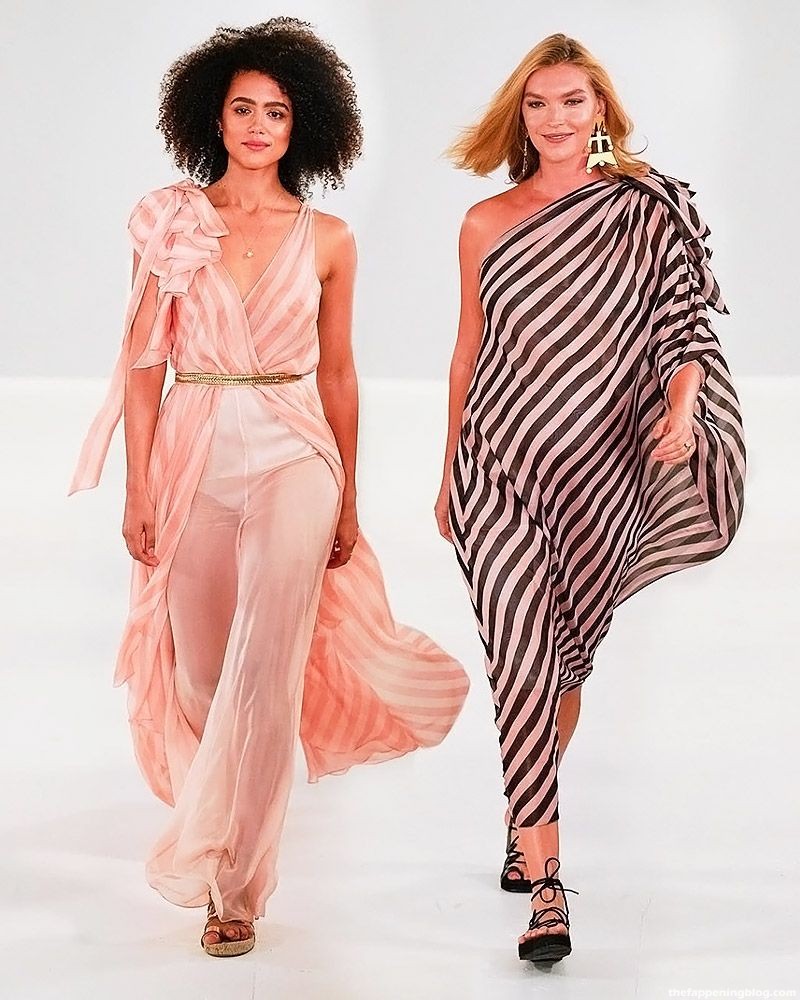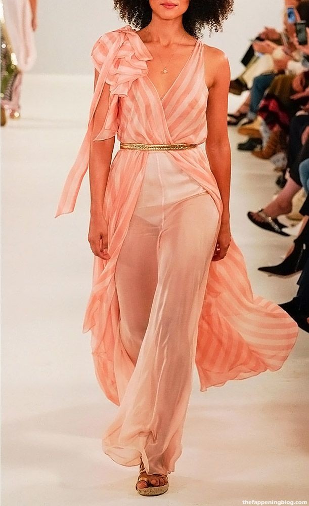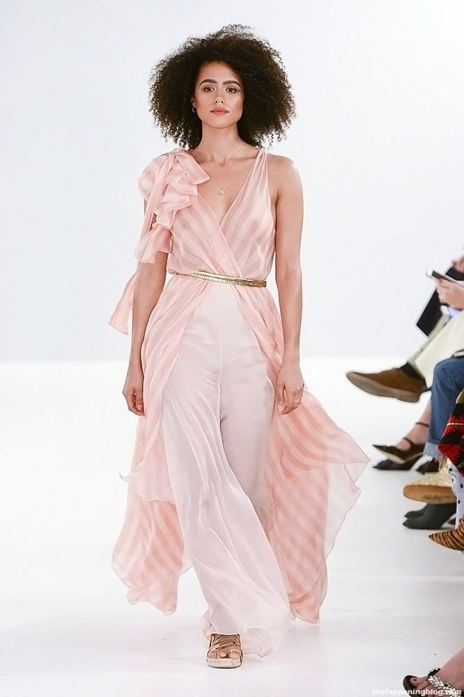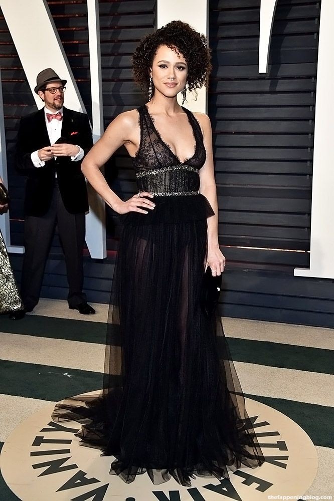 Oh man, I love this actress! Nathalie Emmanuel walked the runway in a see-through dress for Temperley London Spring/Summer 2019 Show during London Fashion Week. Nathalie Emmanuel also wears a see-through black dress with pasties at the 2017 Vanity Fair Oscar Party in Beverly Hills. The hot actress showed cleavage, legs, and feet too many times, so enjoy!