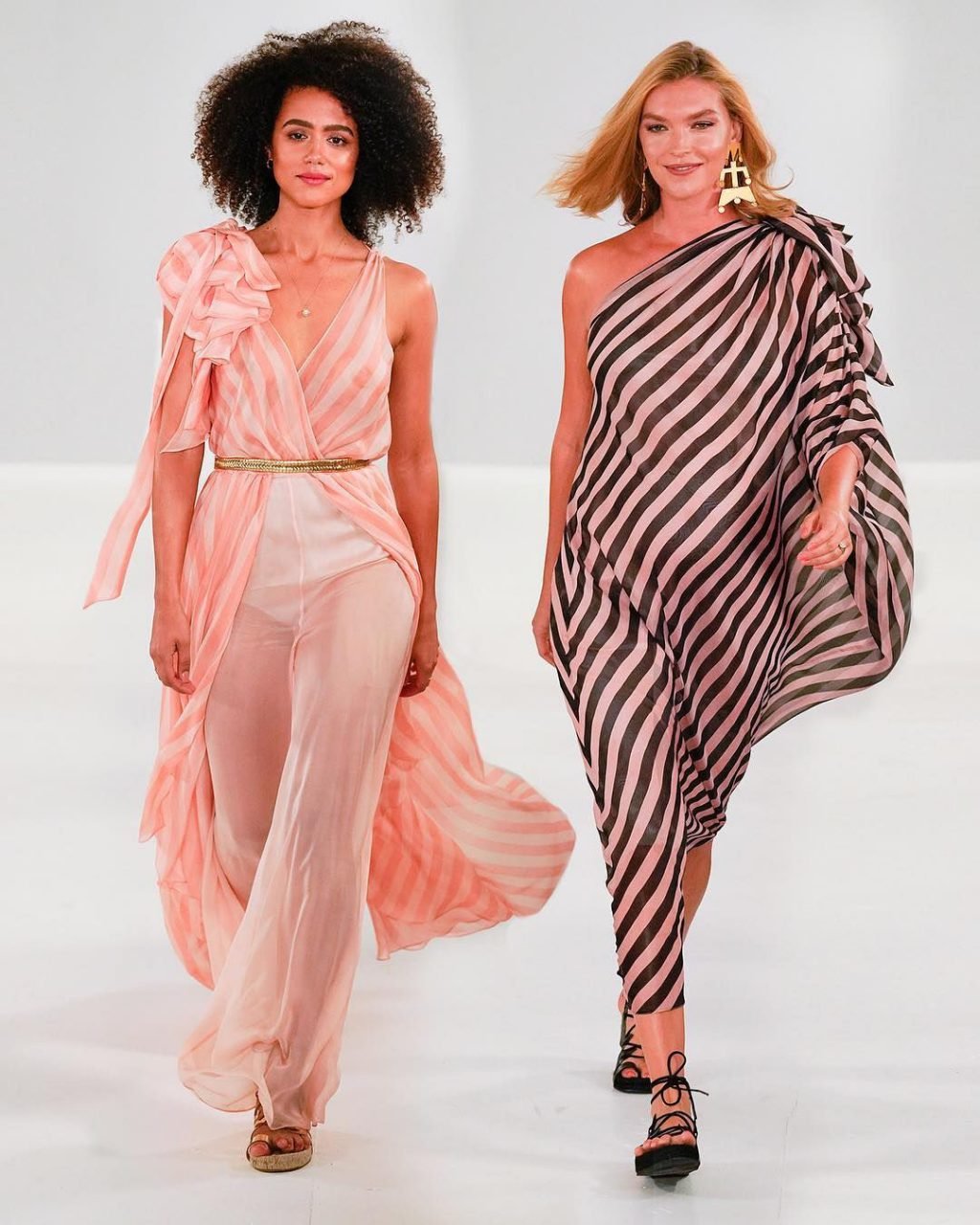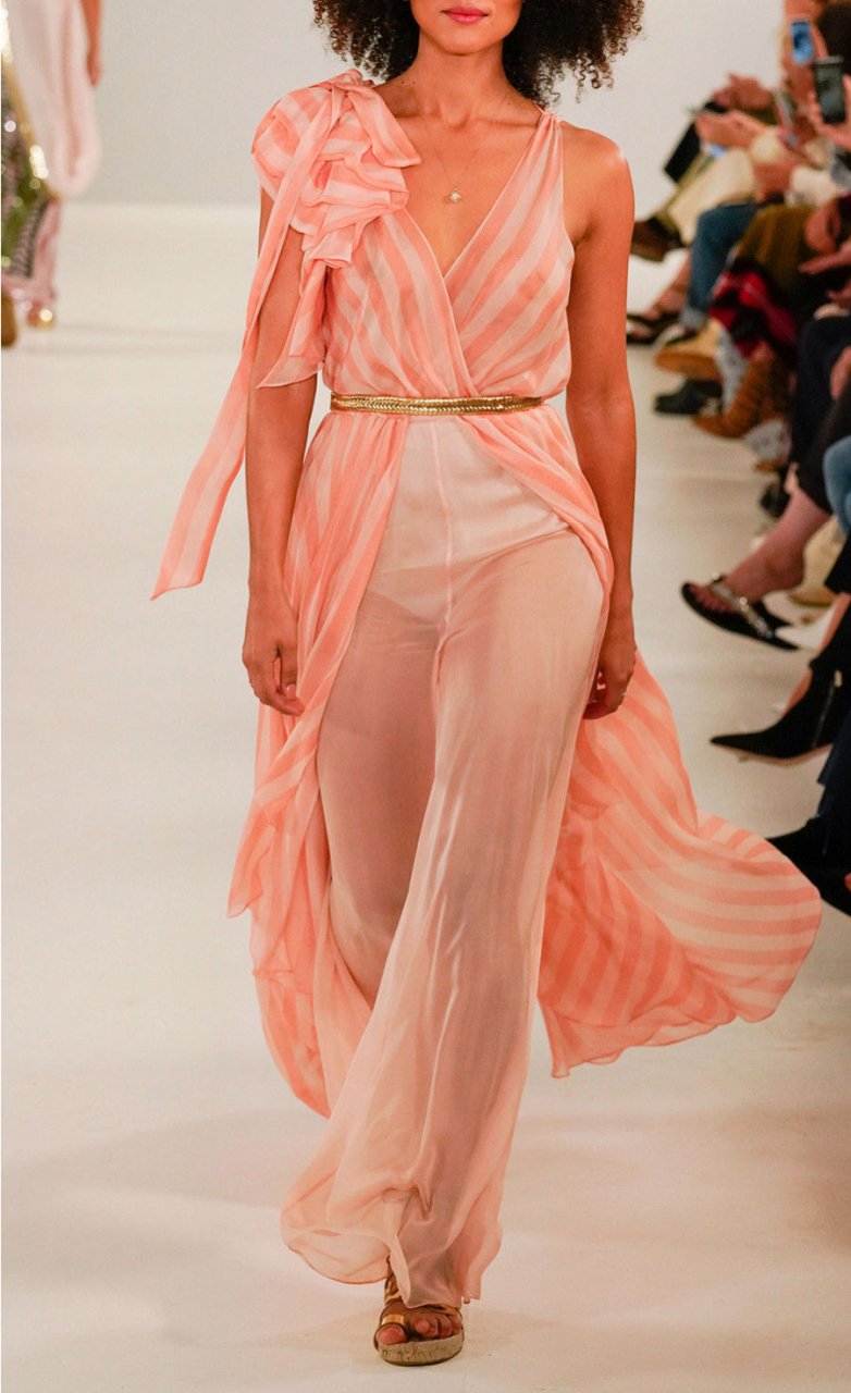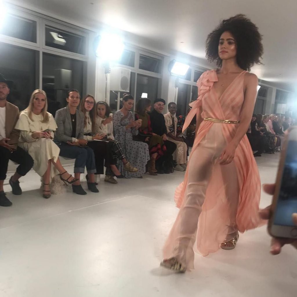 Actrice Nathalie Emmanuel défile dans une robe transparente pour le défilé Temperley London Printemps/Été 2019 lors de la Fashion Week de Londres, 15/09/2018.