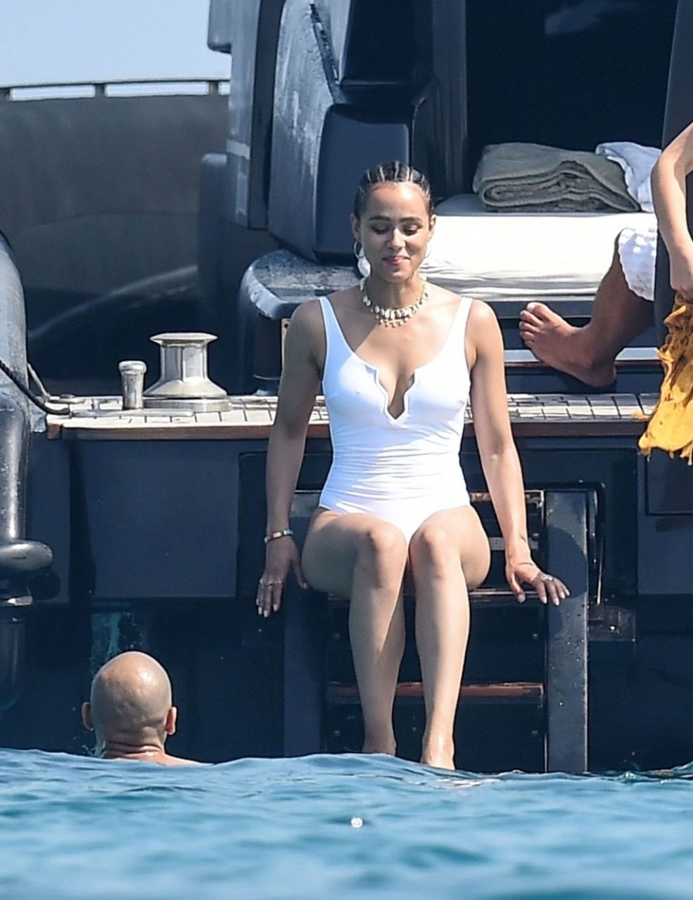 Célèbre pour ses rôles dans “Game of Thrones” et les trilogies “Fast and the Furious”, la sexy actrice britannique Nathalie Emmanuel porte son maillot de bain blanc sous un soleil brûlant lors de ses vacances avec son compagnon Alex Lanipekun en Italie, 12/08/2019.