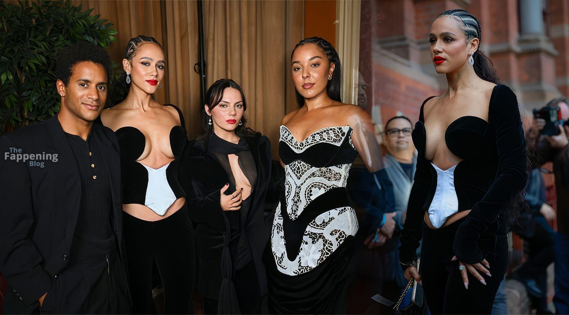 Nathalie Emmanuel exhibe sa poitrine dans une combinaison en velours à découpes, transformant la Fashion Week de Londres en un spectacle de décolleté