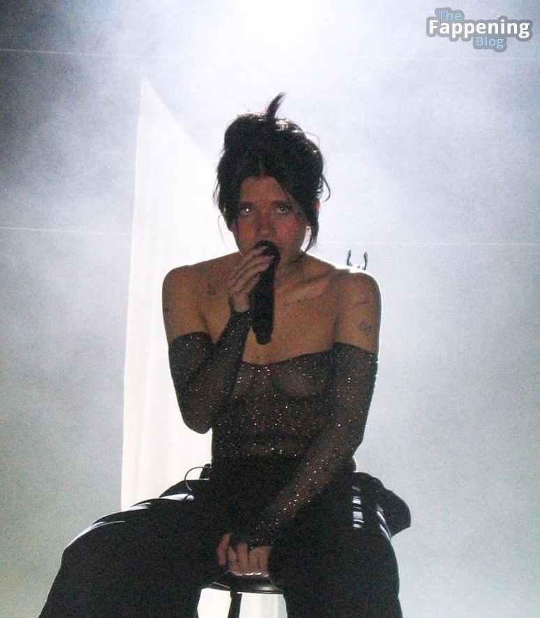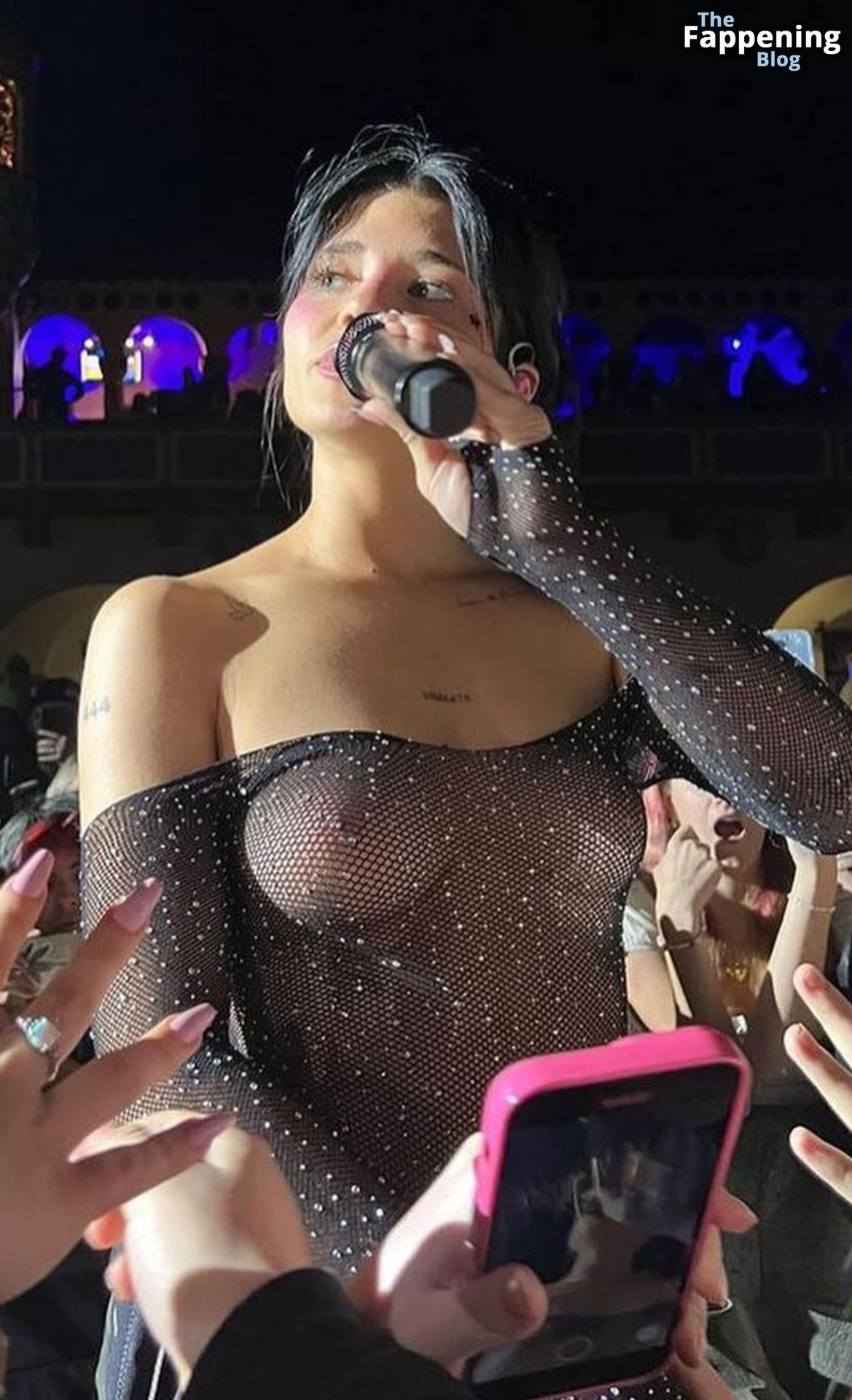 Popstar Nessa Barrett a exhibé sa poitrine et ses fesses lors de ses performances à New York et Toronto, portant des tenues entièrement transparentes (mars 2023).