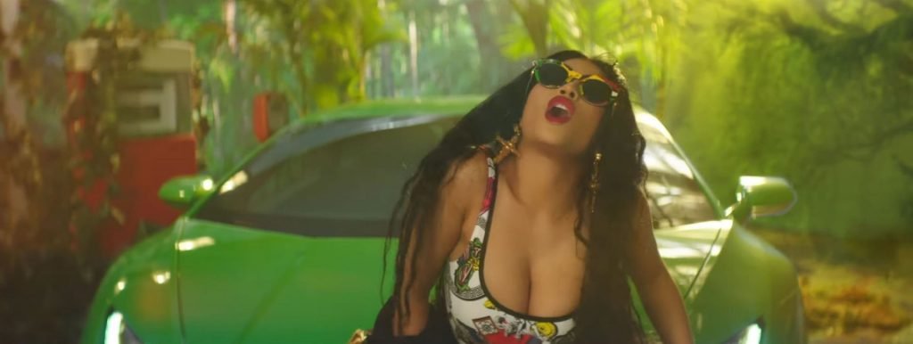 La vidéo se termine avec Minaj aspergeant une Lamborghini vert citron d’essence puis y mettant le feu. La vidéo colorée et séduisante a été réalisée par Mike Ho, qui avait déjà réalisé son clip pour Hard White en 2018.