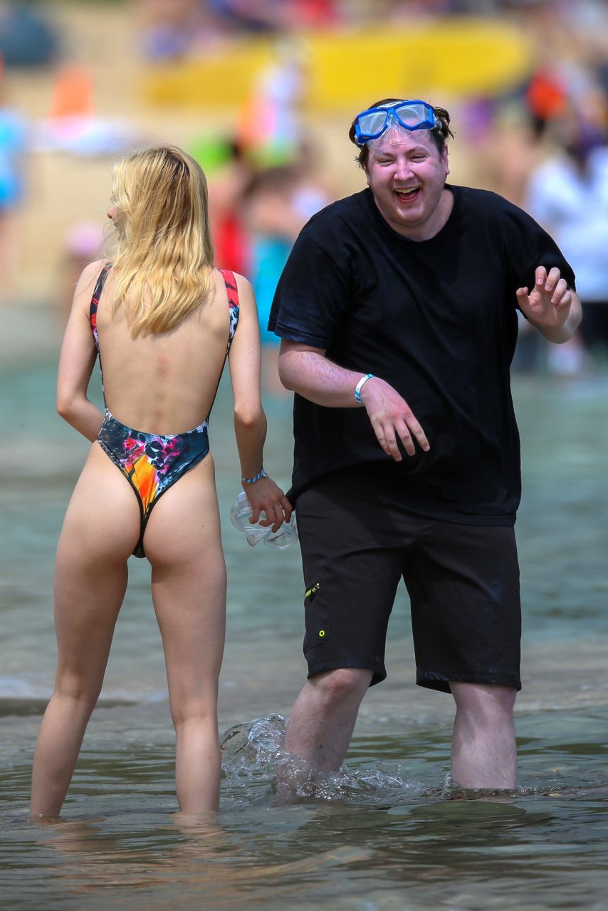 Maillot de bain horrible et une petite fille autrement moyenne mais très maigre.