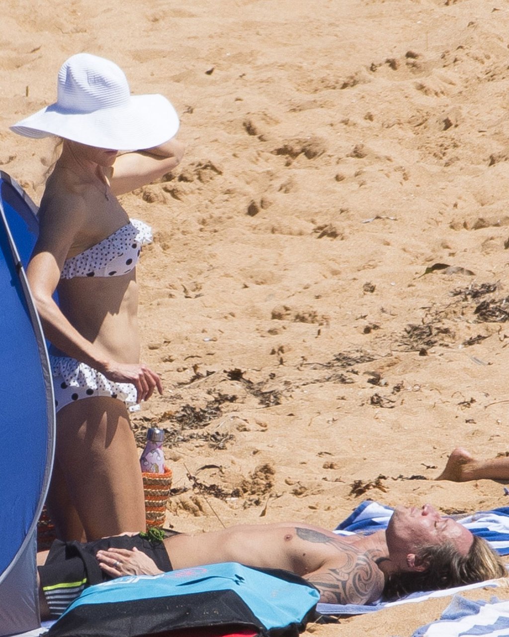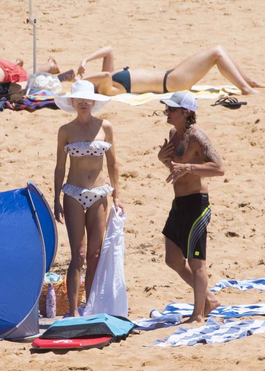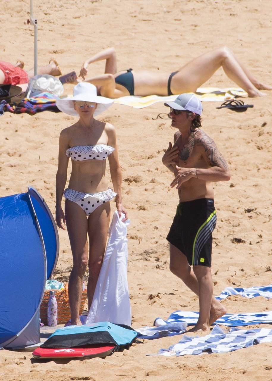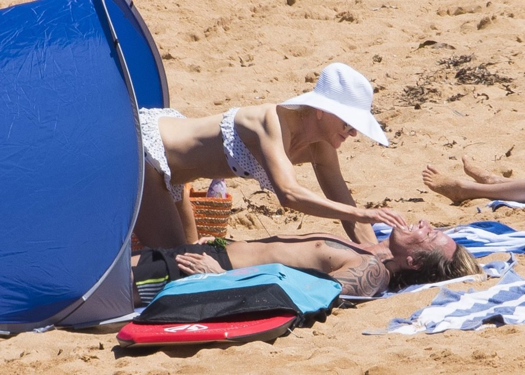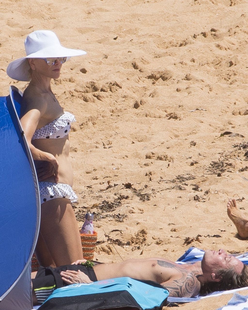 L’actrice Nicole Kidman (51 ans) a été photographiée dans un moment rarement vu portant un bikini blanc à pois lors de la veille de Noël à Palm Beach, Sydney, Australie, avec son mari Keith Urban, le 24/12/2018.