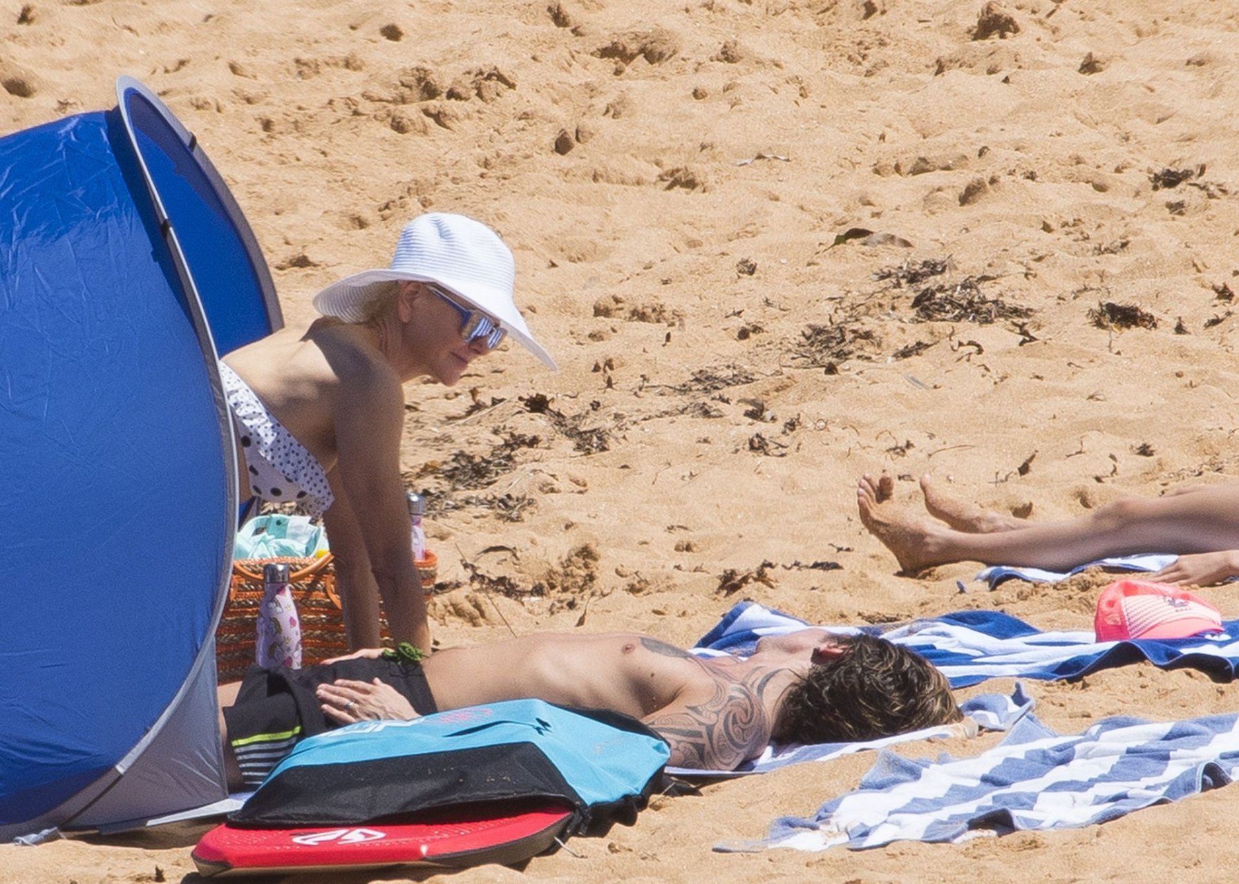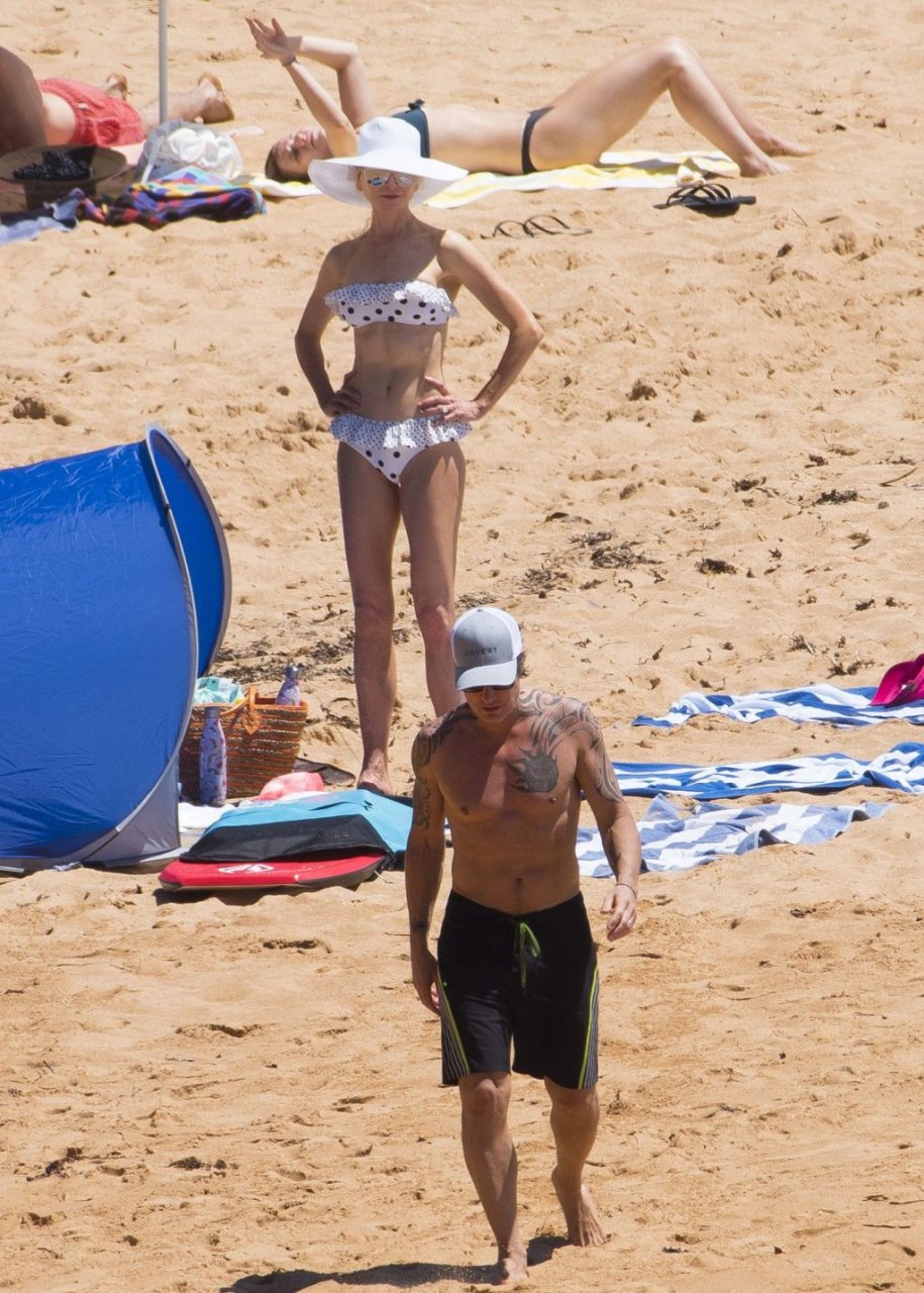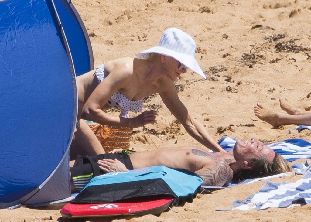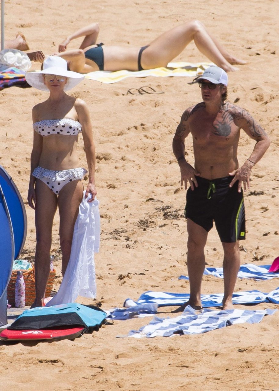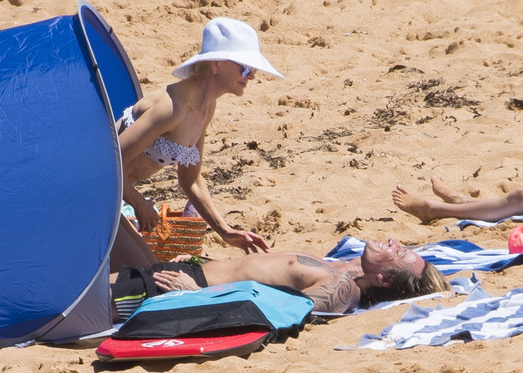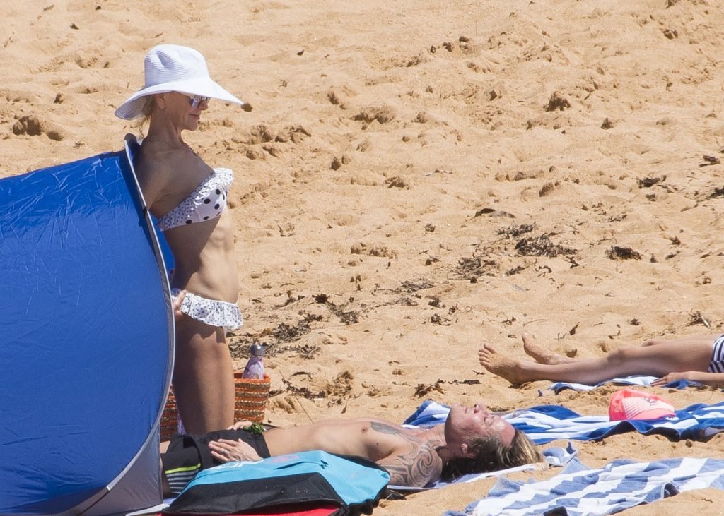 L’actrice Nicole Kidman (51 ans) a été photographiée dans un moment rarement vu portant un bikini blanc à pois lors de la veille de Noël à Palm Beach, Sydney, Australie, avec son mari Keith Urban, le 24/12/2018.