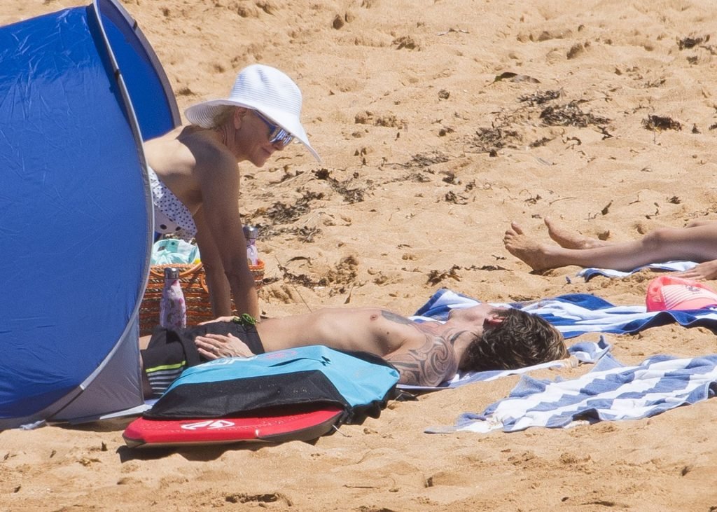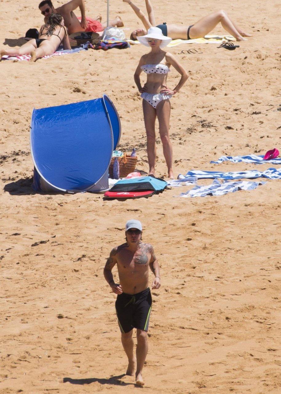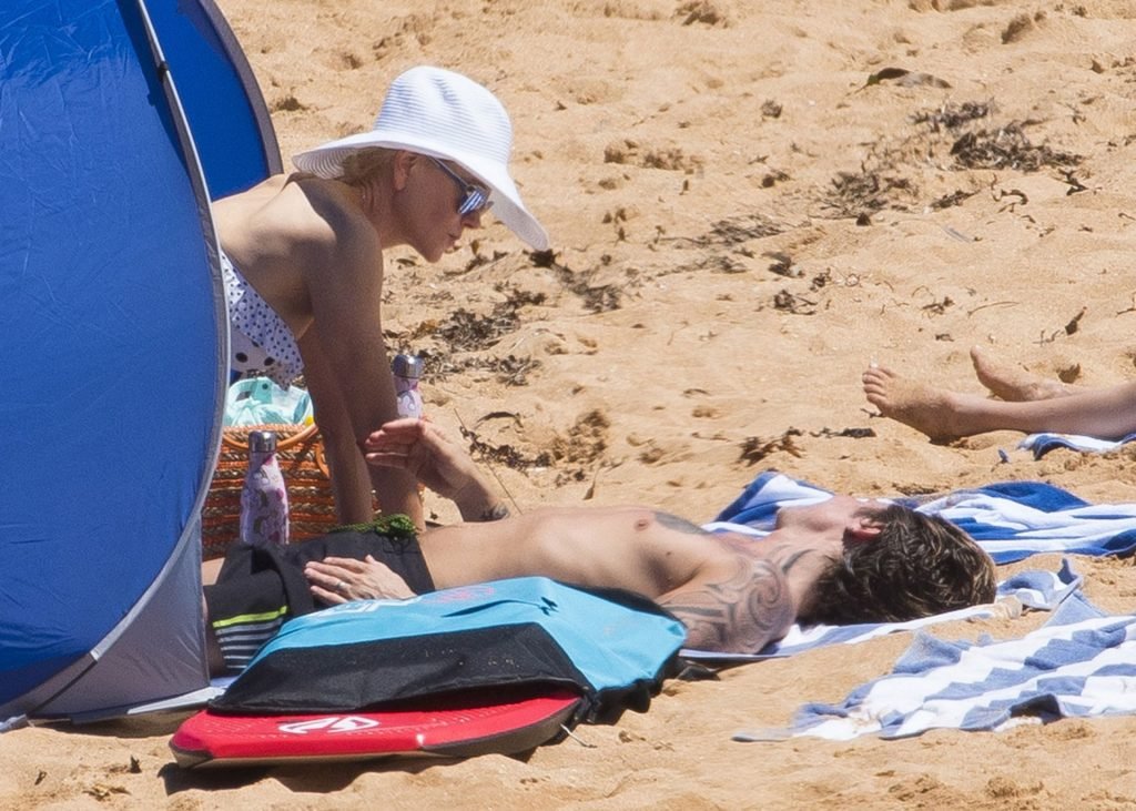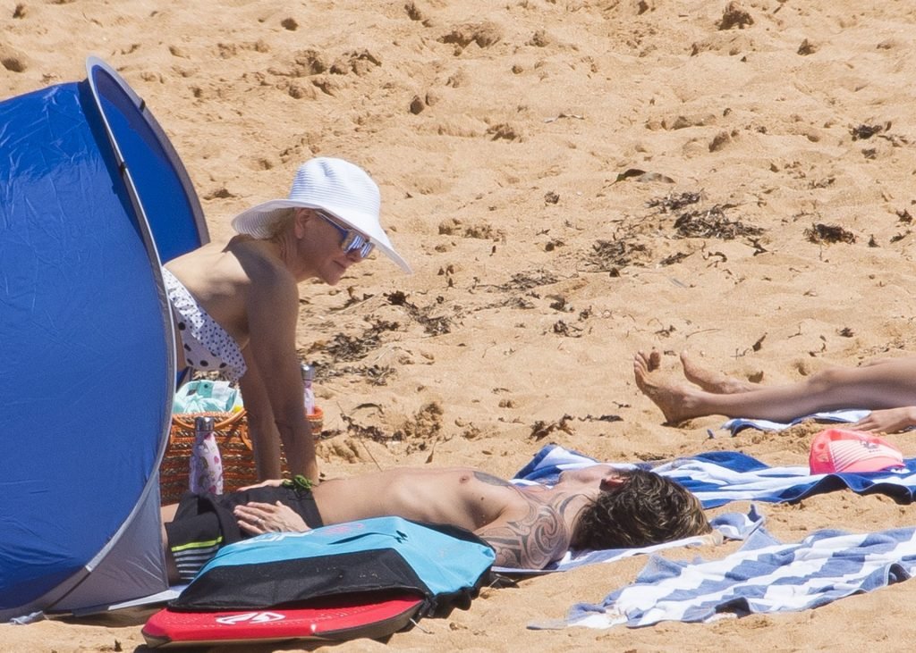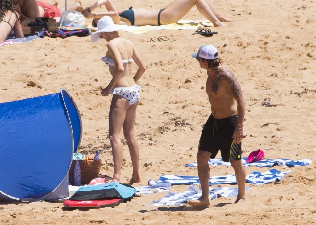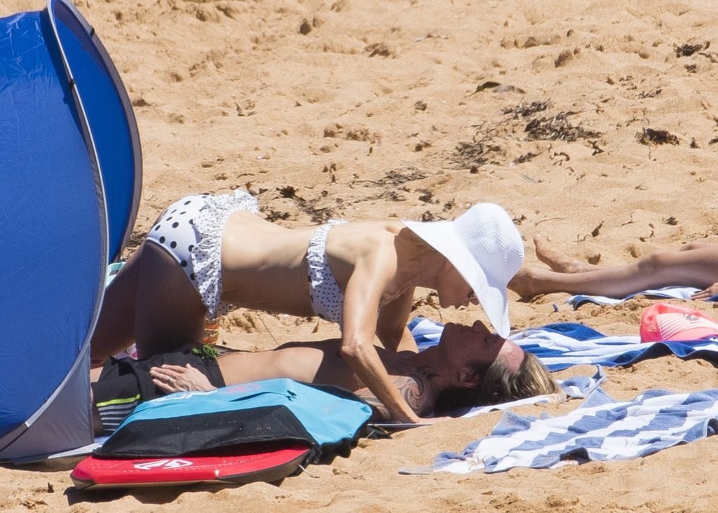 L’actrice Nicole Kidman (51 ans) a été photographiée dans un moment rarement vu portant un bikini blanc à pois lors de la veille de Noël à Palm Beach, Sydney, Australie, avec son mari Keith Urban, le 24/12/2018.
