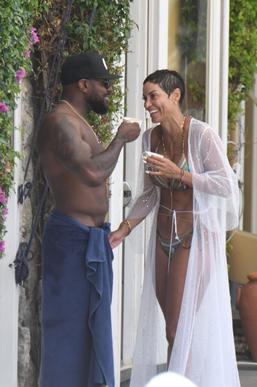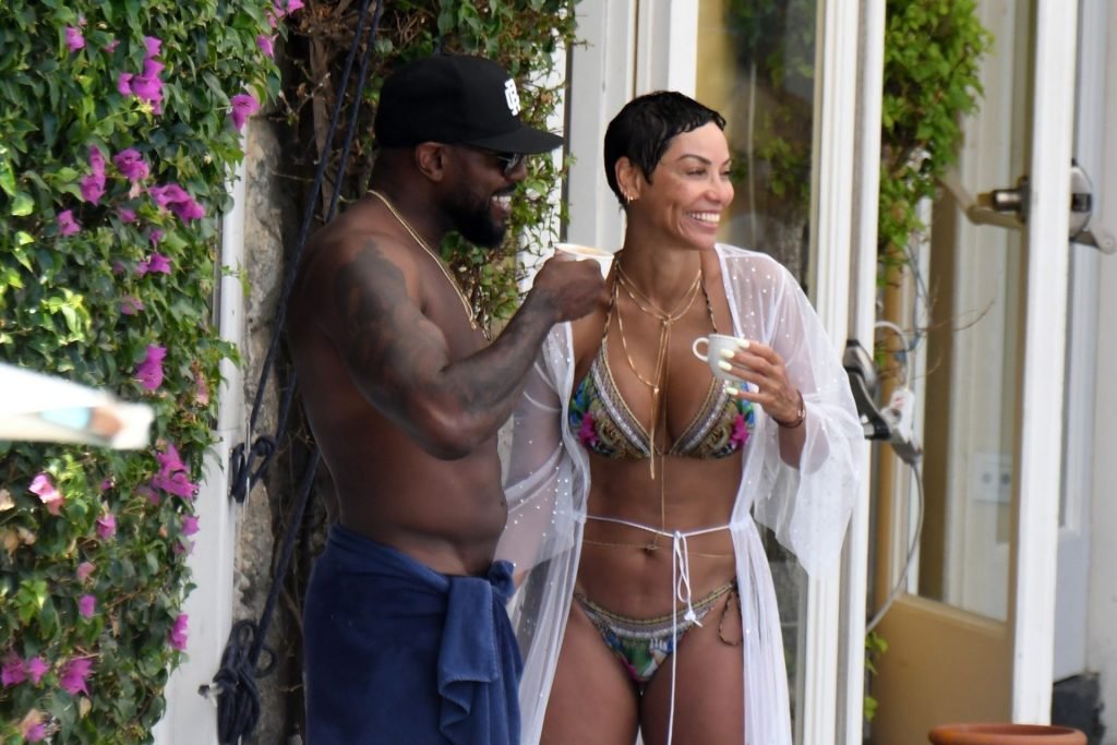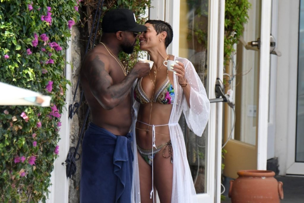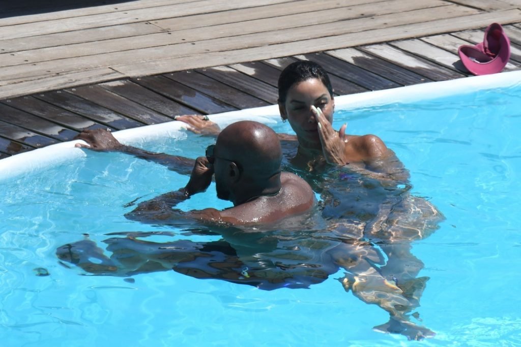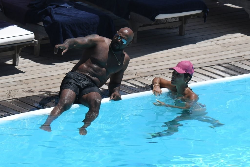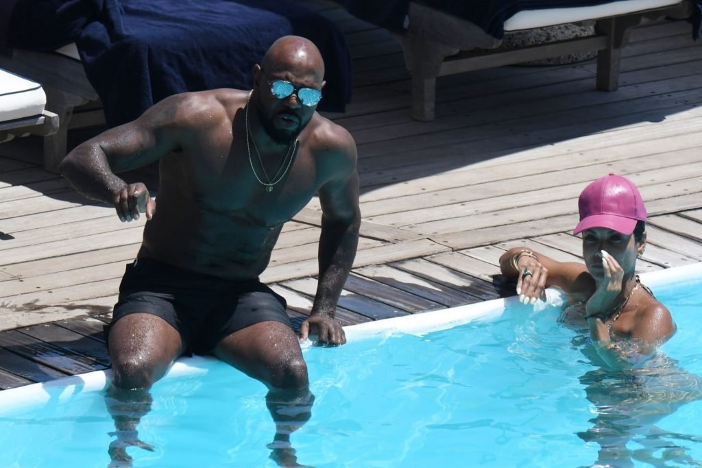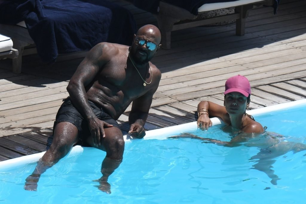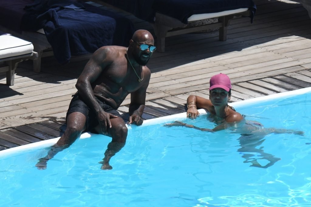 Le réalisateur Antoine Fuqua et sa petite amie Nicole Murphy profitent d’une baignade dans la piscine de l’hôtel Regina Isabella à Ischia, en Italie, lors du Ischia Global Fest, le 20/07/2019.