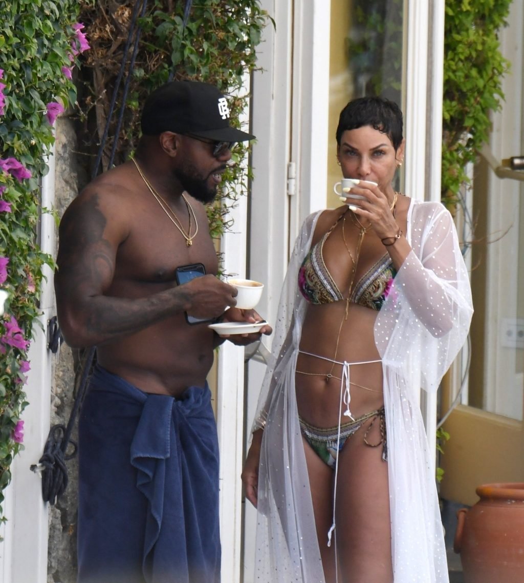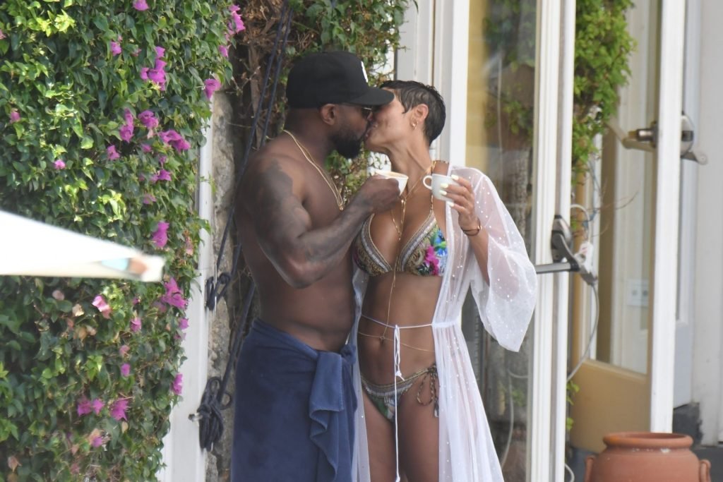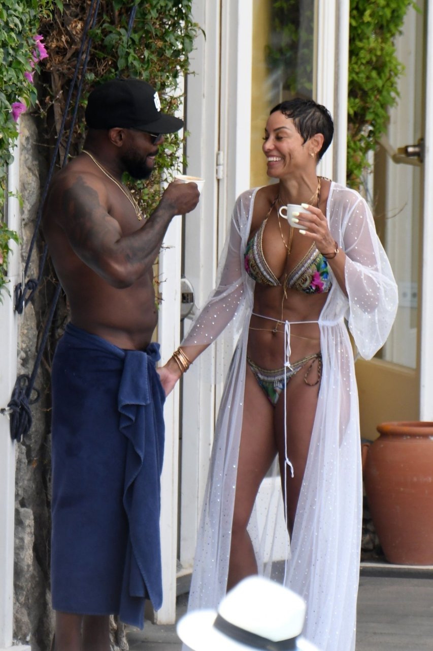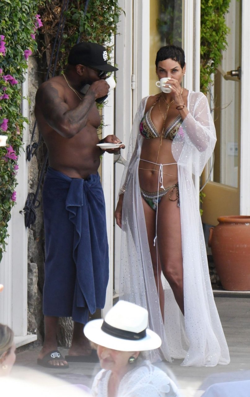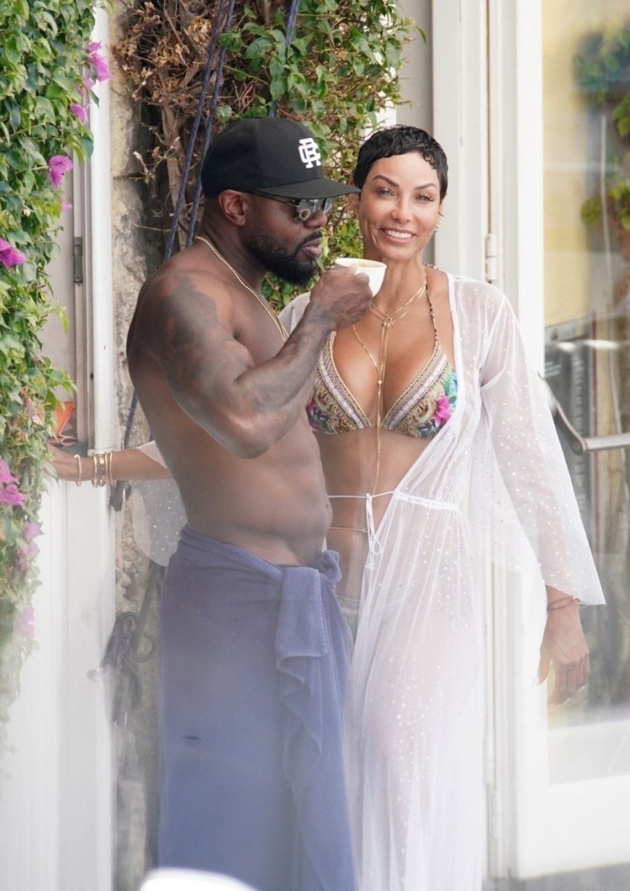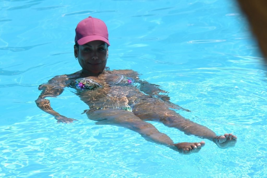 Le réalisateur Antoine Fuqua et sa petite amie Nicole Murphy profitent d’une baignade dans la piscine de l’hôtel Regina Isabella à Ischia, en Italie, lors du Ischia Global Fest, le 20/07/2019.