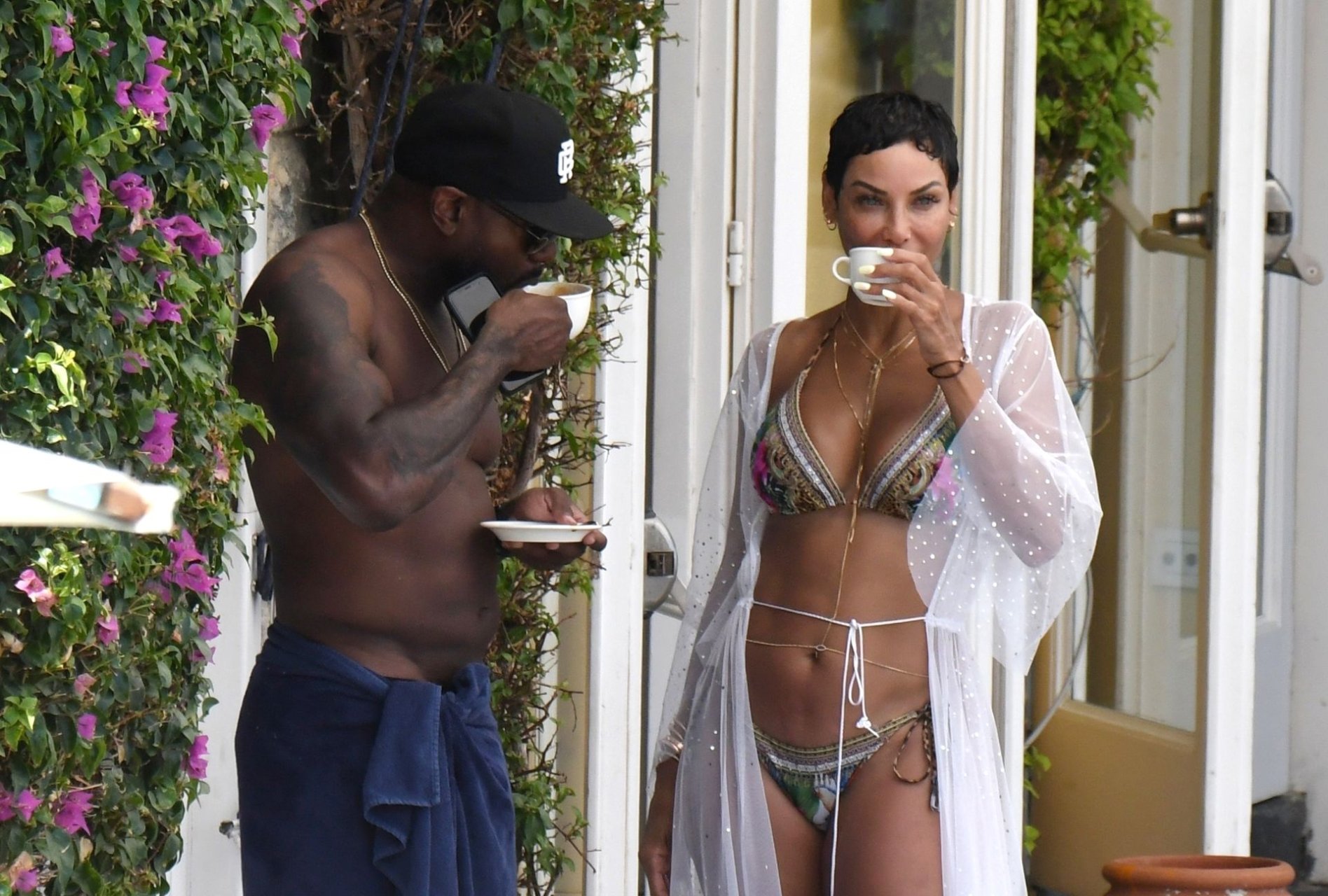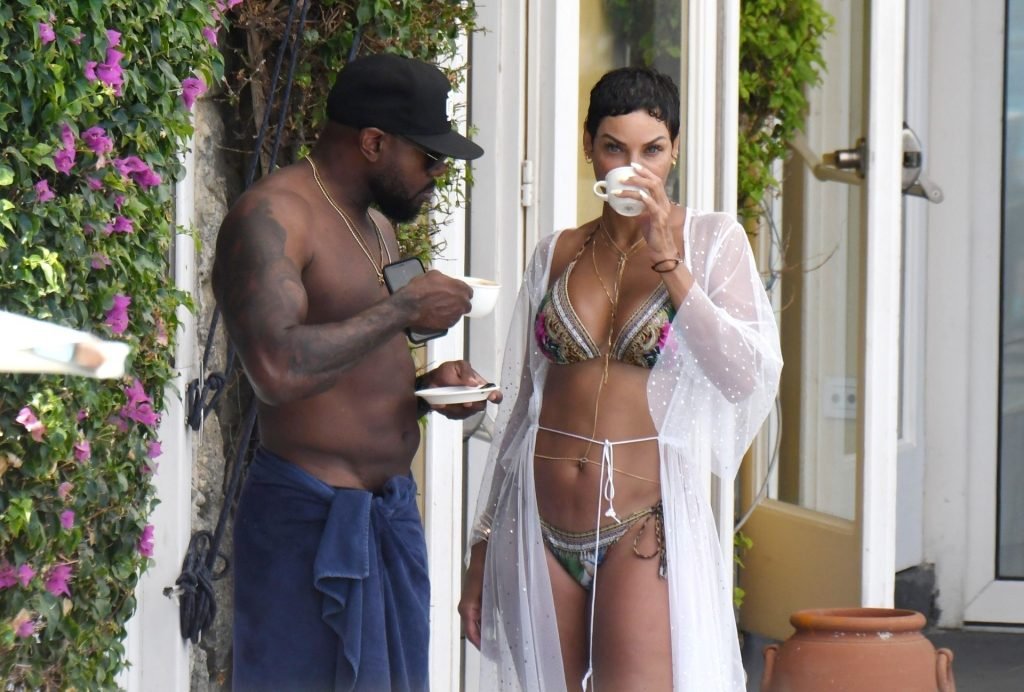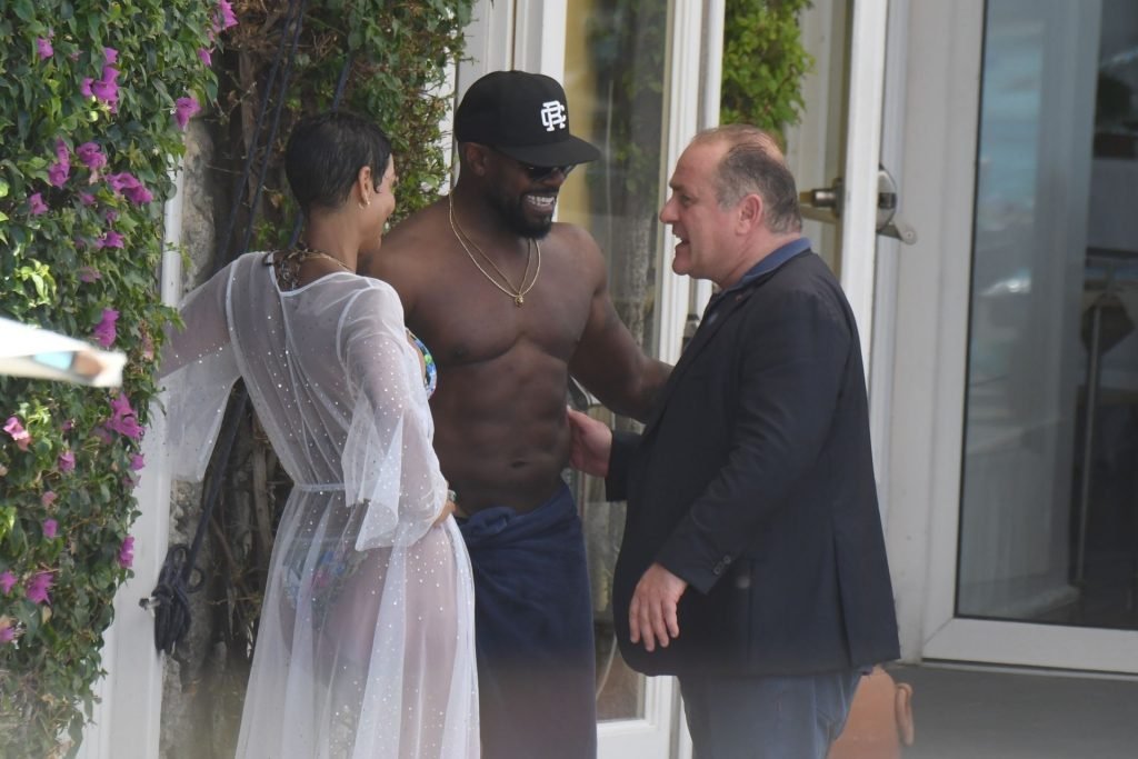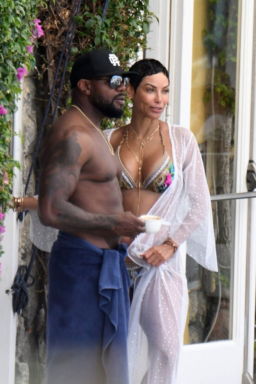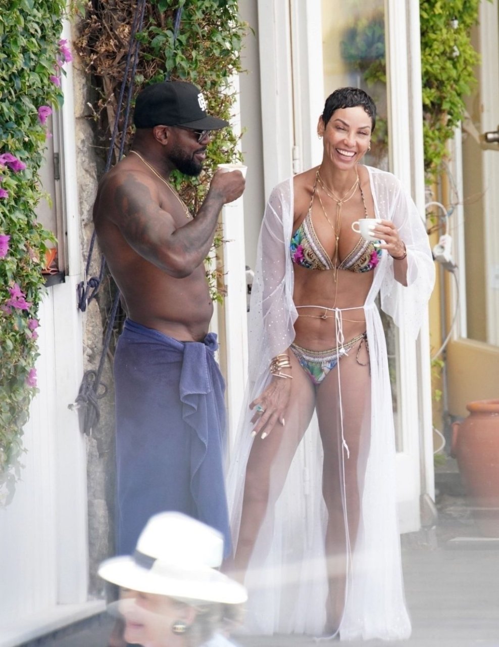 Le réalisateur Antoine Fuqua et sa petite amie Nicole Murphy profitent d’une baignade dans la piscine de l’hôtel Regina Isabella à Ischia, en Italie, lors du Ischia Global Fest, le 20/07/2019.