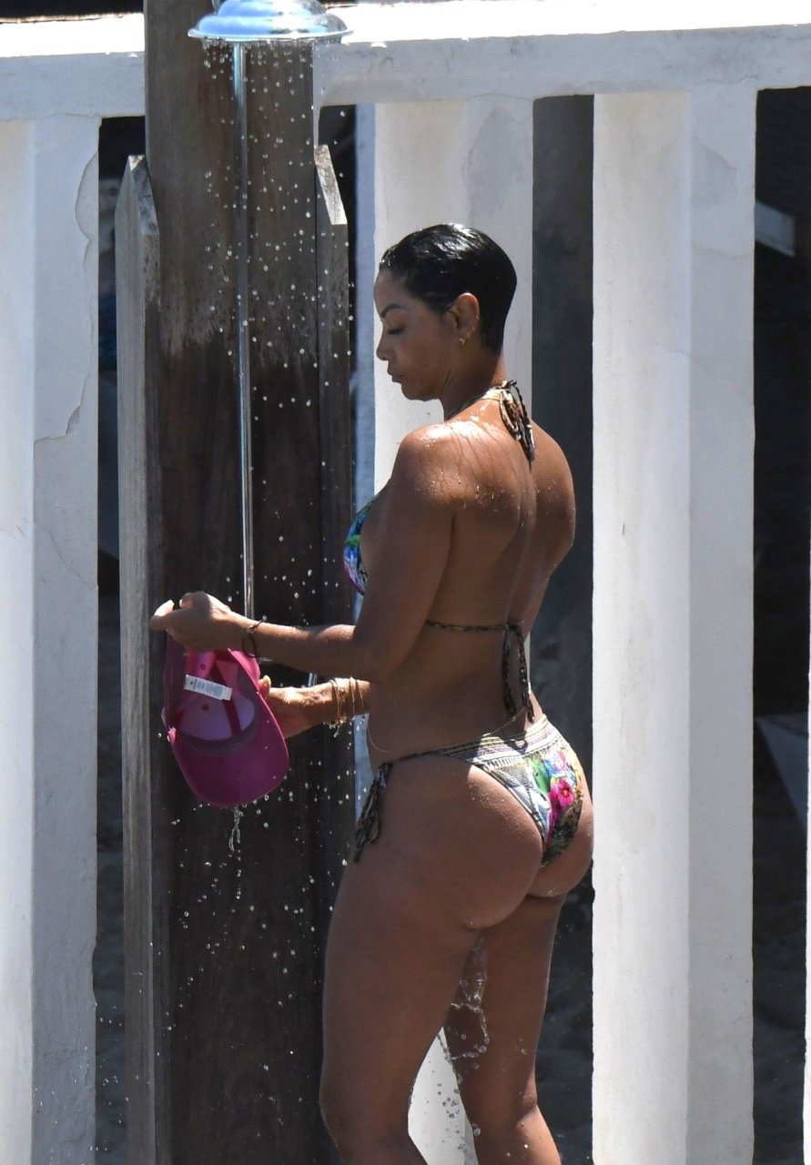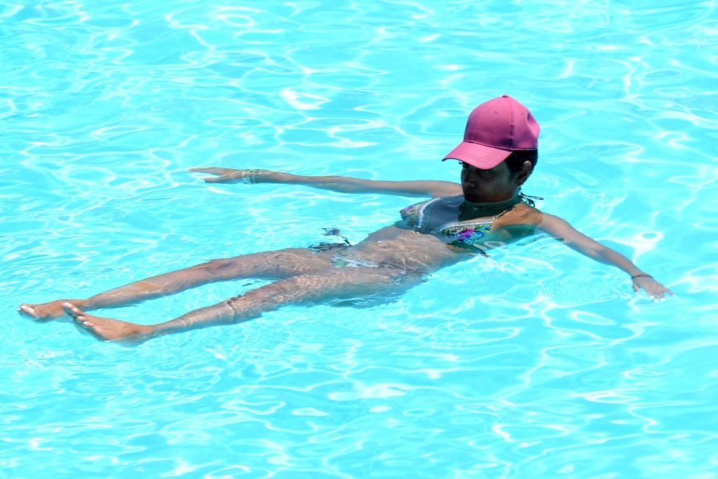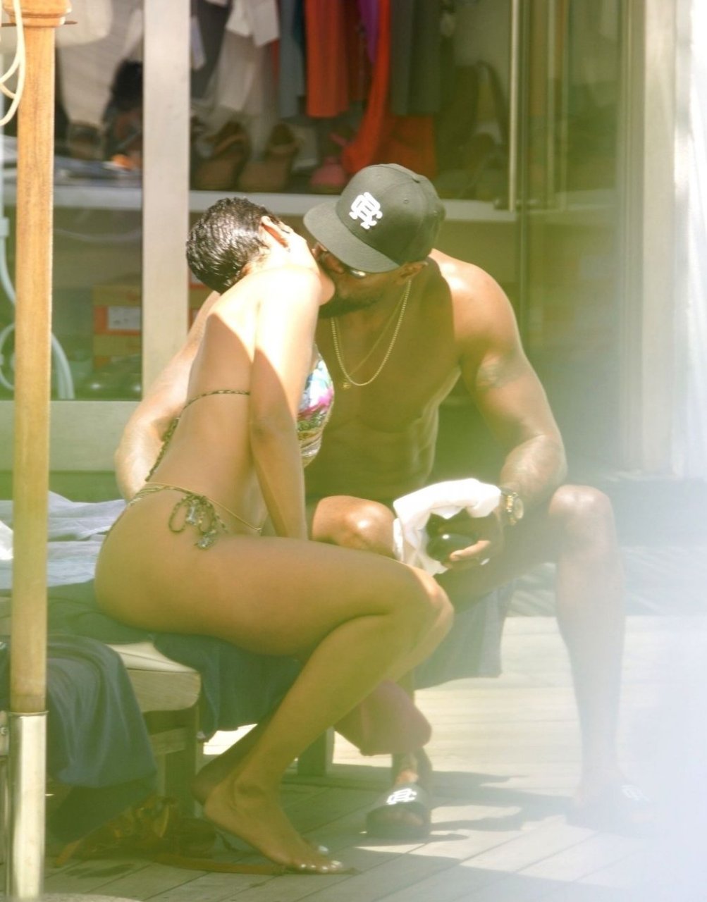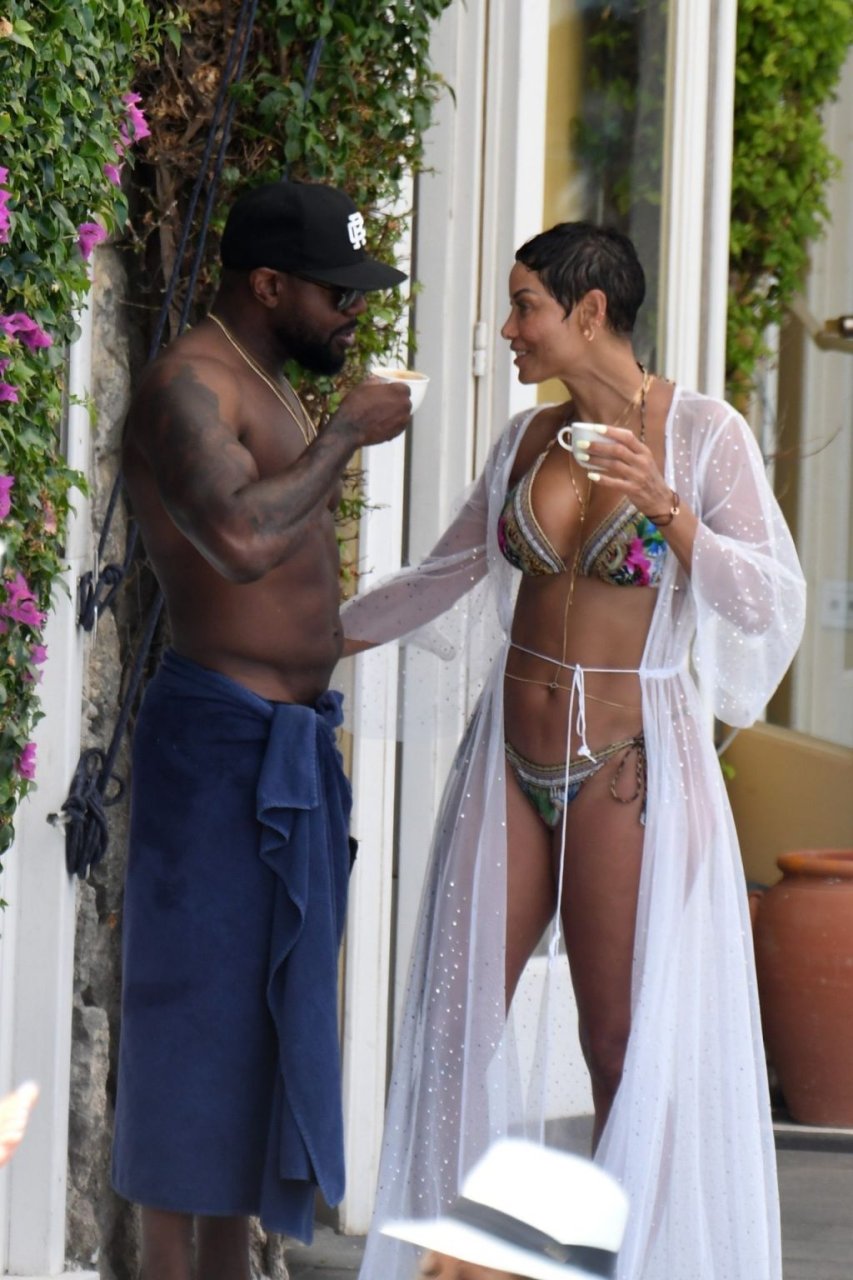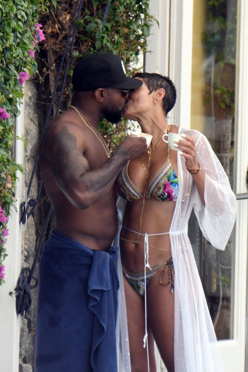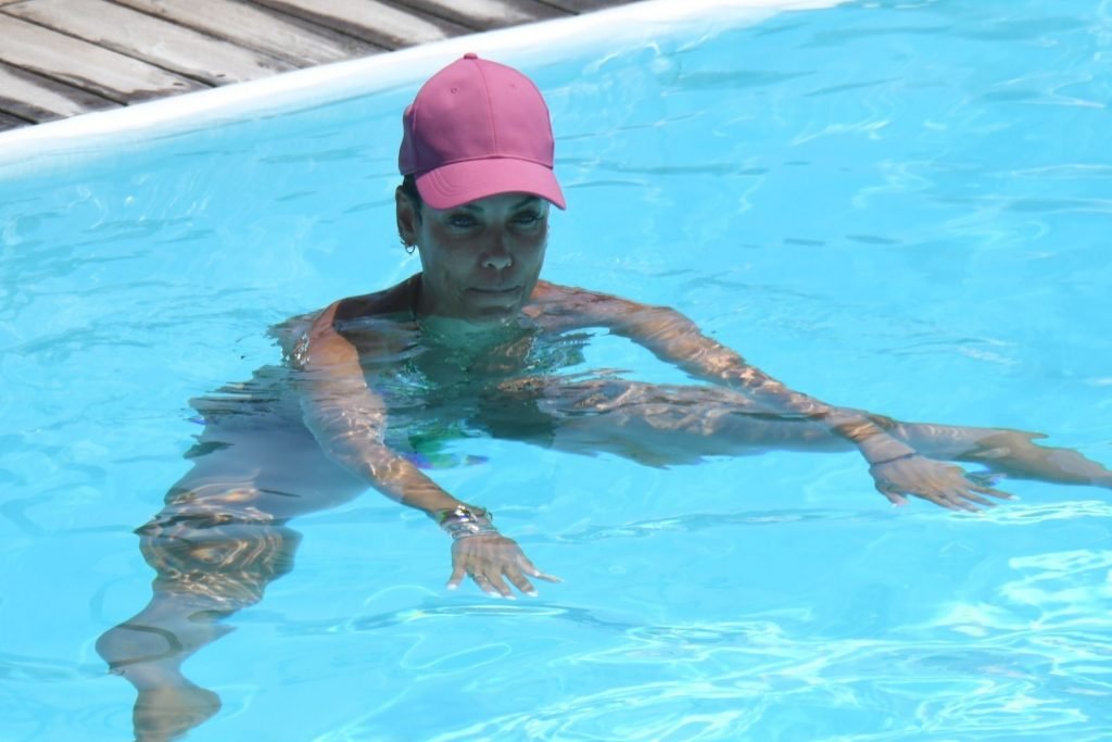 Le réalisateur Antoine Fuqua et sa petite amie Nicole Murphy profitent d’une baignade dans la piscine de l’hôtel Regina Isabella à Ischia, en Italie, lors du Ischia Global Fest, le 20/07/2019.