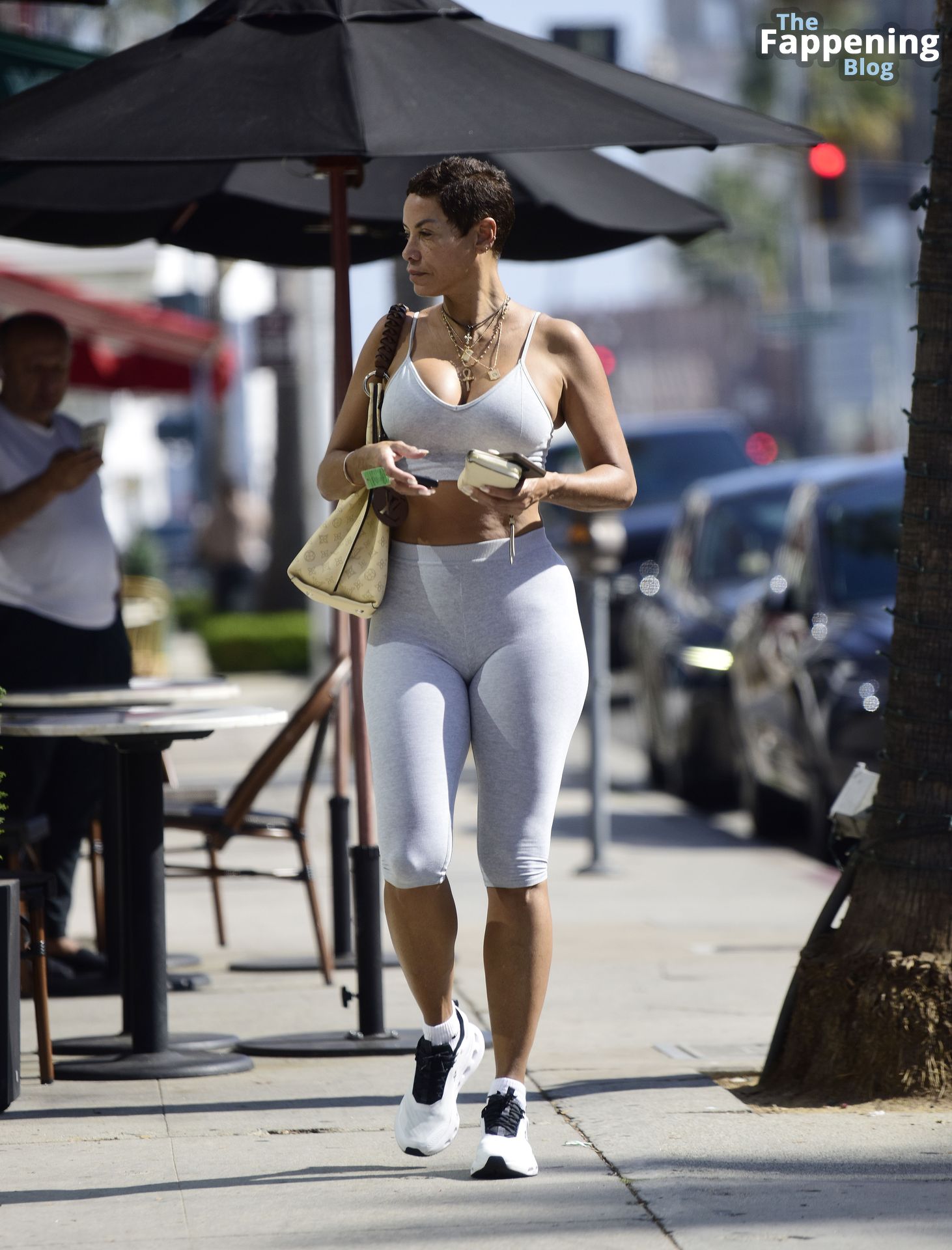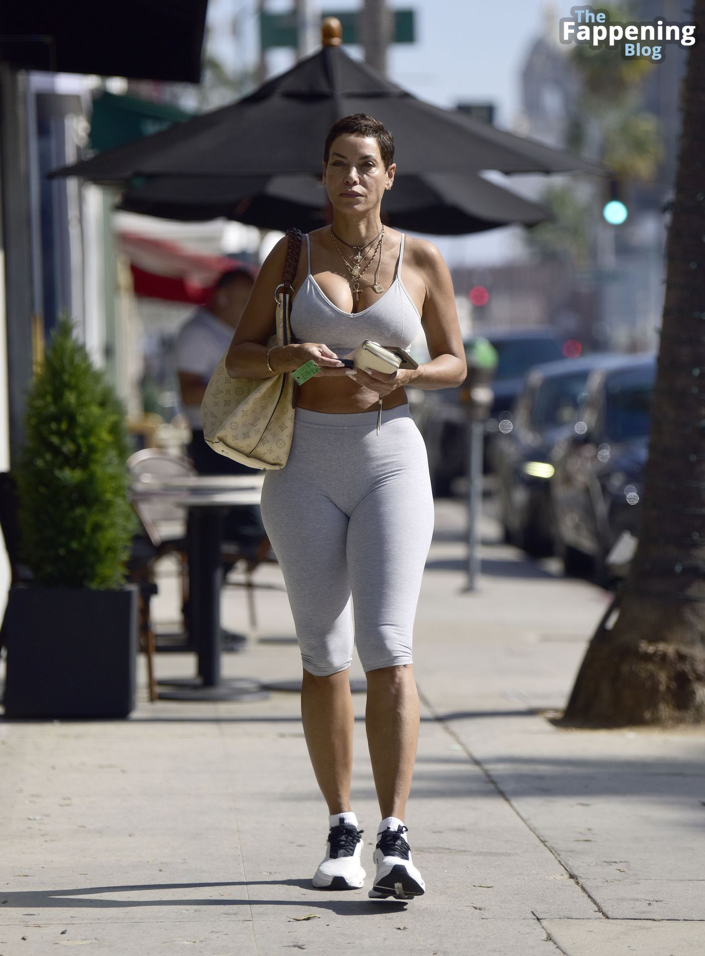 Nicole Murphy montre son corps sculpté après une séance de sport à Los Angeles. Le mannequin de 56 ans portait un crop top, un legging gris et des baskets toutes neuves.