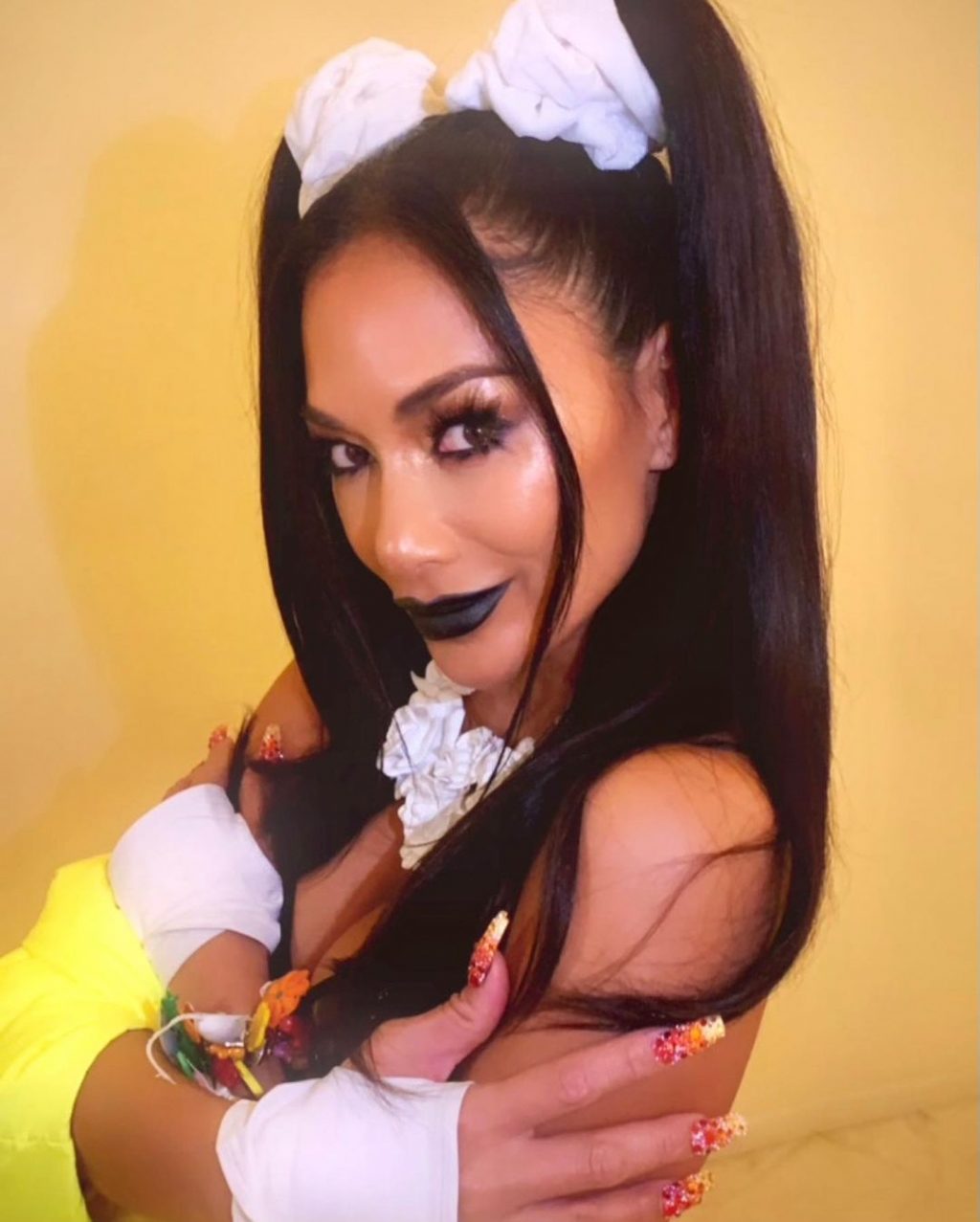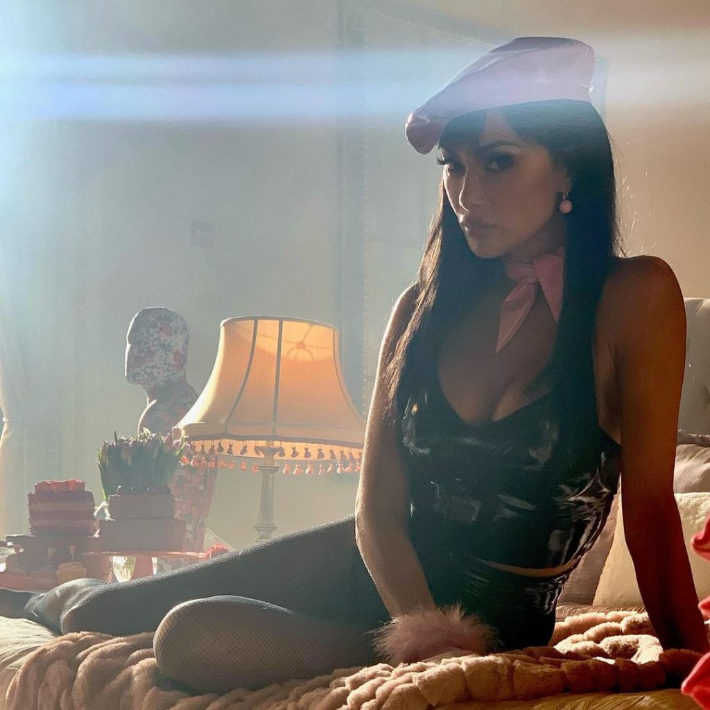 La star du Fappening Nicole Scherzinger affiche son décolleté, portant une tenue en cuir alors qu’elle prend un selfie et pose pour ses fans – Instagram, 03/09/2021.