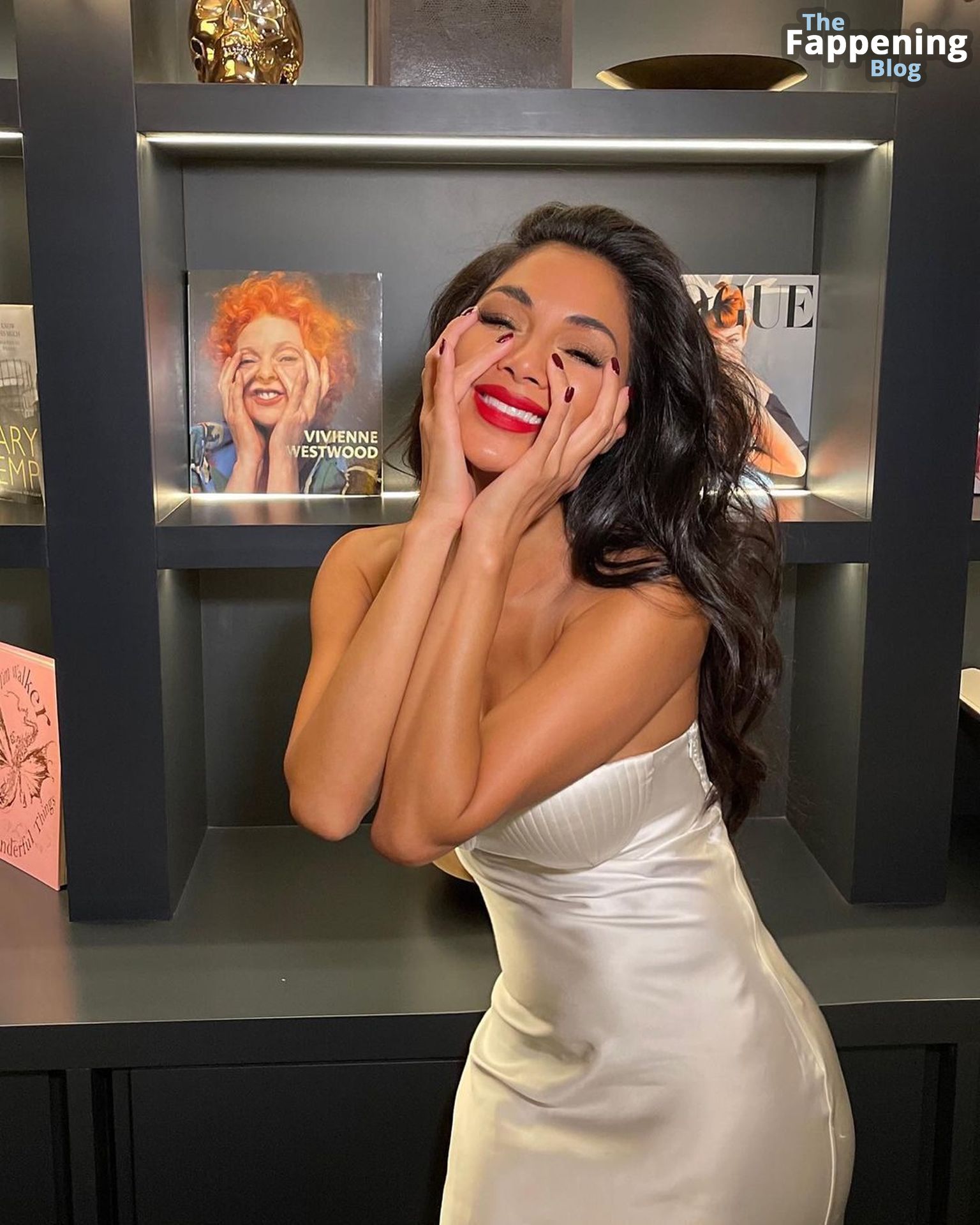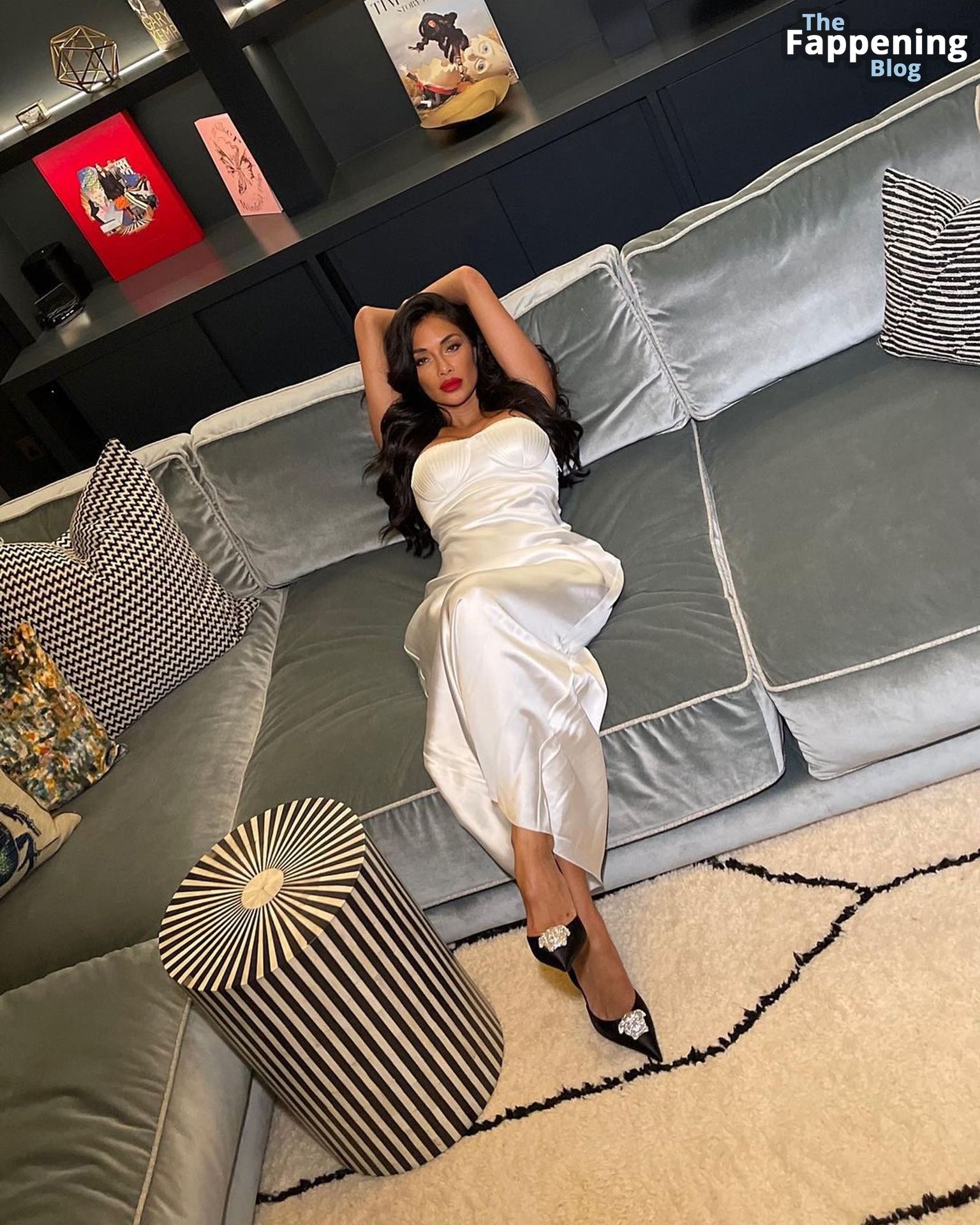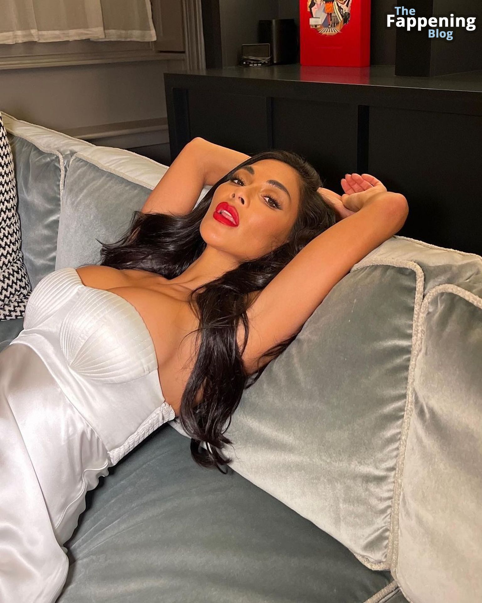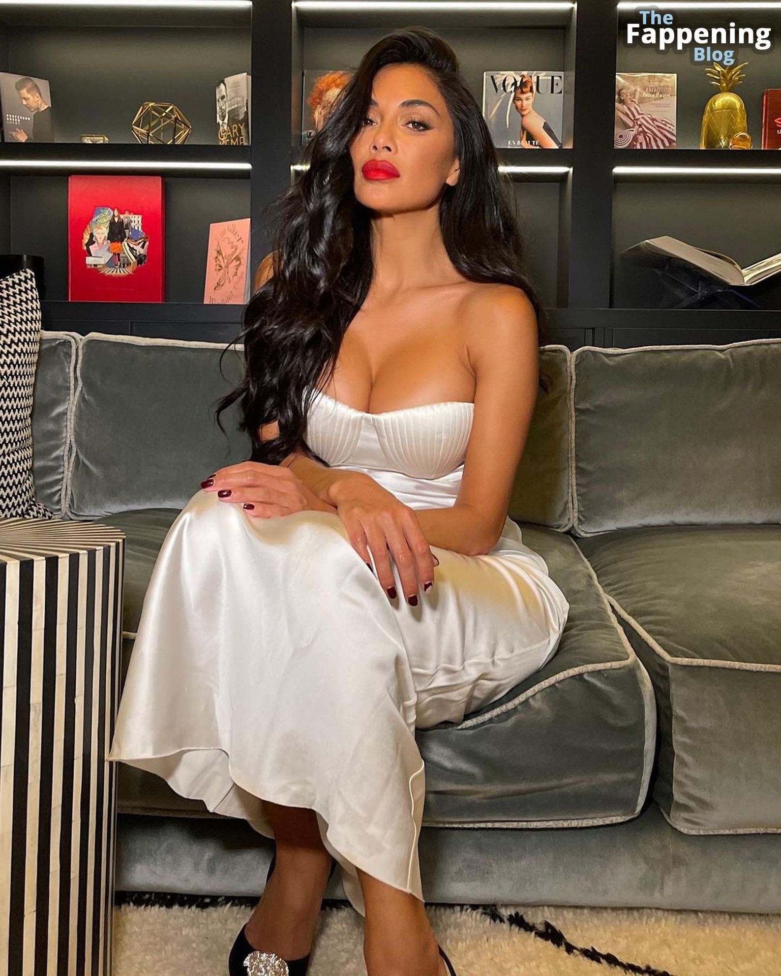 La star du Fappening Nicole Scherzinger montre ses seins artificiels sexy en posant dans une robe élégante en satin lors d’une séance photo sur les réseaux sociaux par Reinaldo Irizarry (janvier 2023).