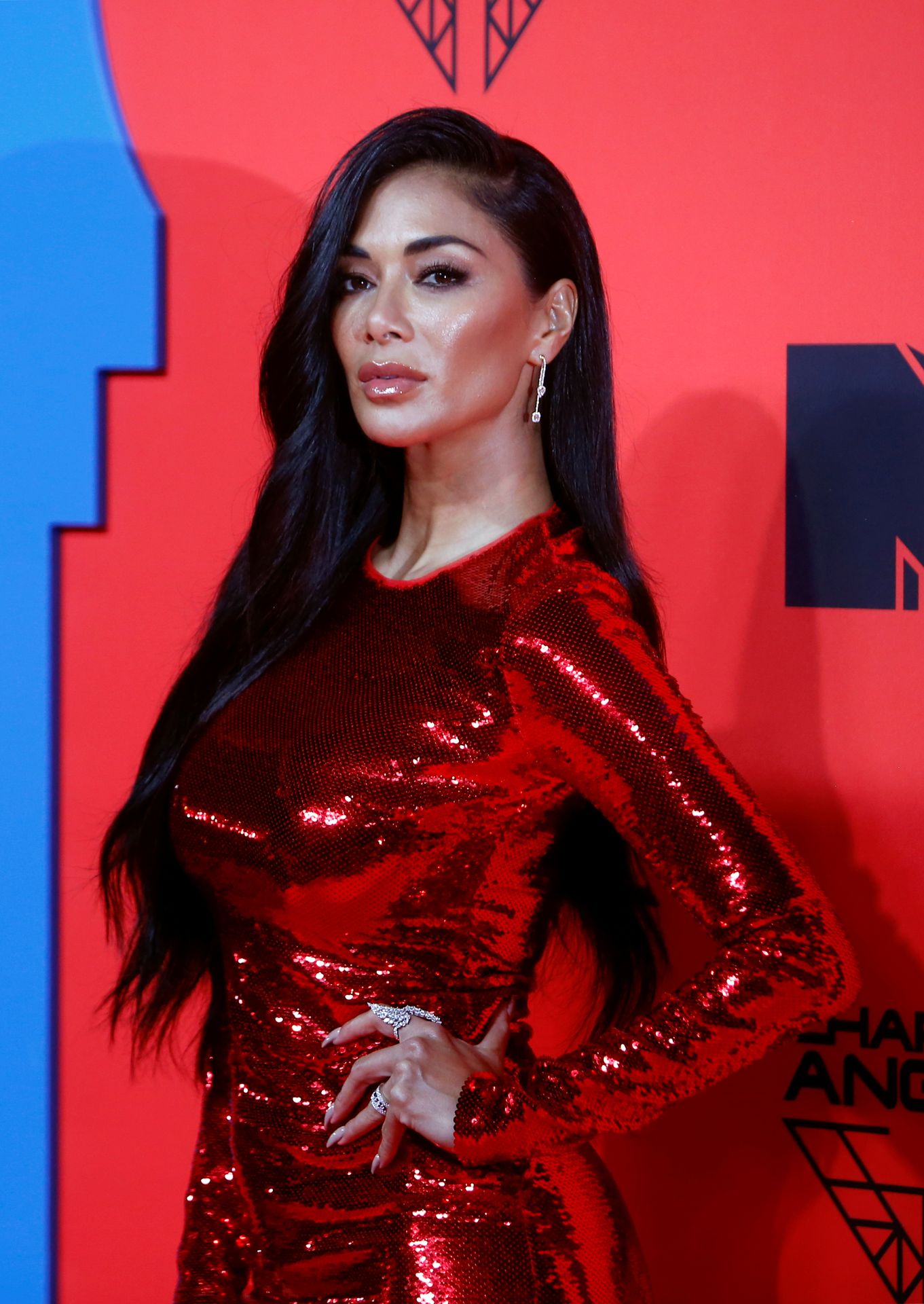 La chanteuse Nicole Scherzinger pose sur un tapis rouge alors qu’elle arrive aux MTV Europe Music Awards 2019 au Centre de conférence et d’exposition FIBES à Séville, Espagne, 11/03/2019.
