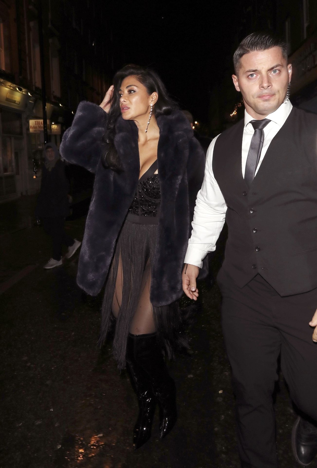 Thom Evans et Nicole Scherzinger ont été photographiés quittant le théâtre Boulevard à Soho, Londres, après le spectacle scénique inspiré du théâtre musical de Nicole, 12/08/2019.