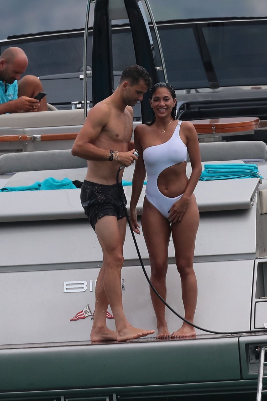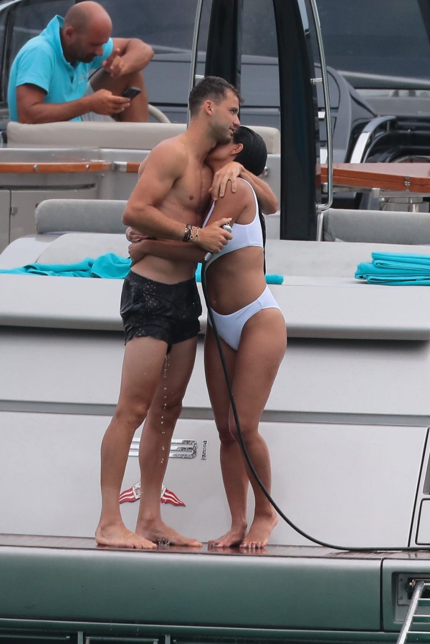 Nicole Scherzinger est vue au Club 55 à St Tropez, dans le sud de la France, avec son petit ami, le 22/07/2018. La chanteuse a été vue en bikini à l’arrière d’un bateau rapide de luxe.