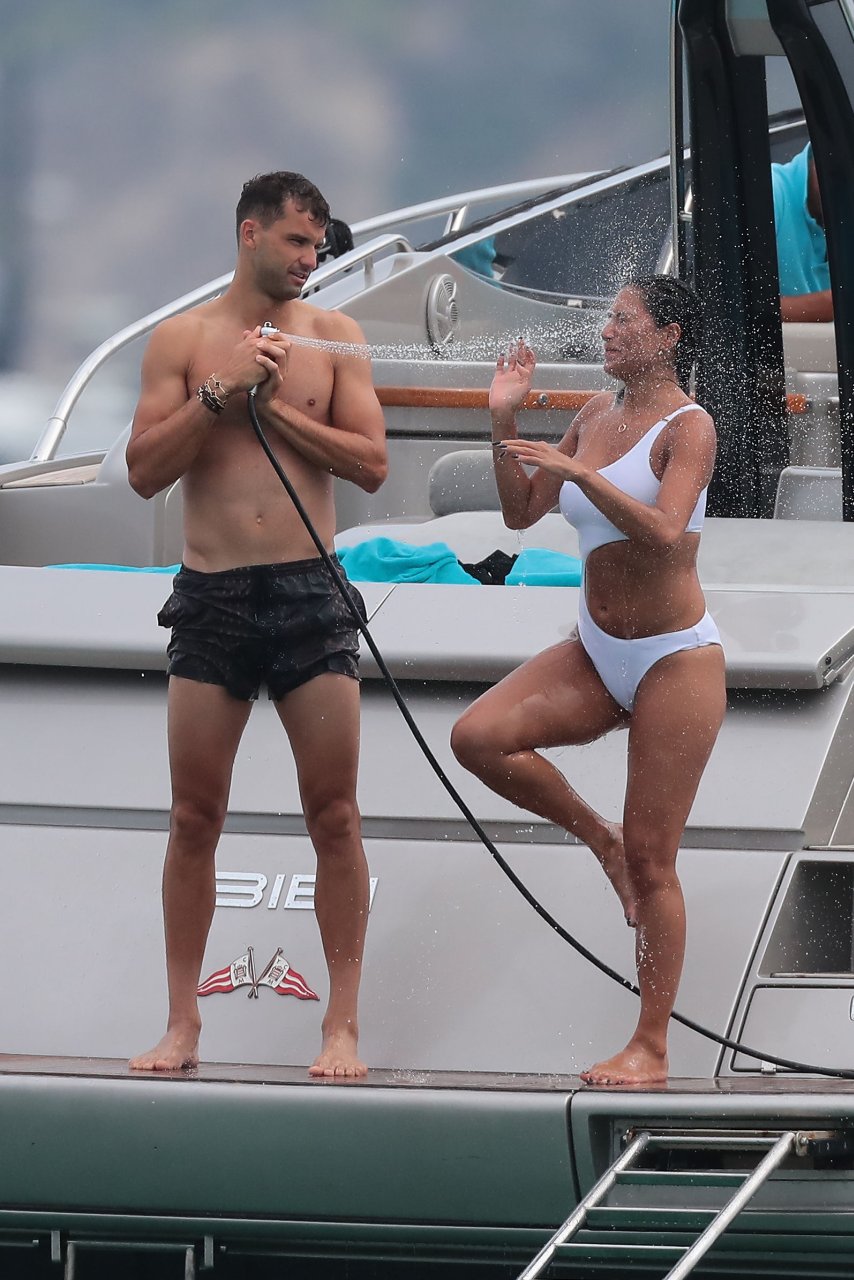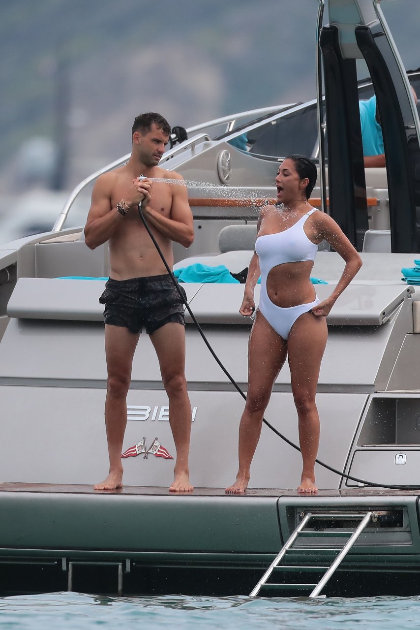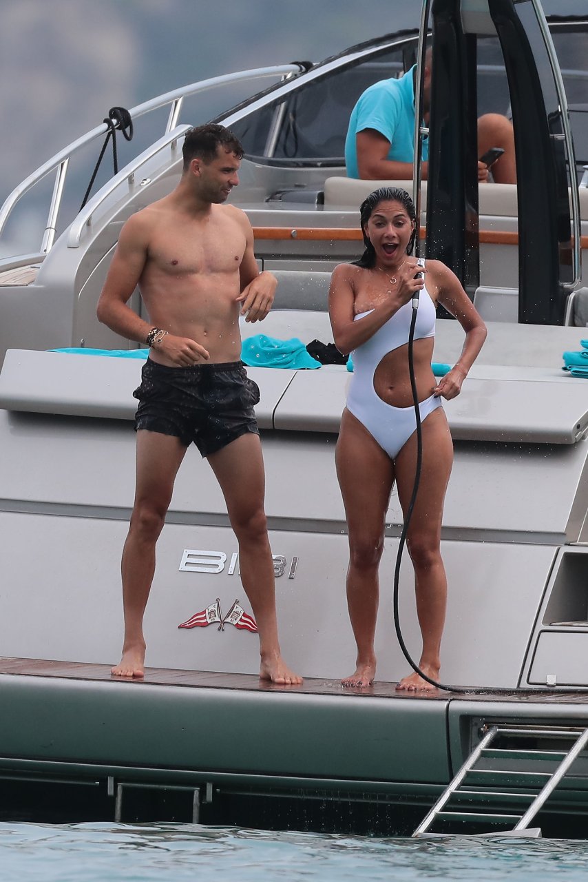 Nicole Scherzinger est vue au Club 55 à St Tropez, dans le sud de la France, avec son petit ami, le 22/07/2018. La chanteuse a été vue en bikini à l’arrière d’un bateau rapide de luxe.