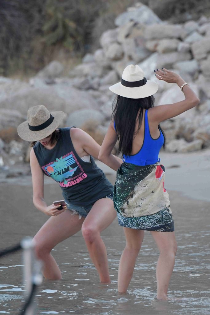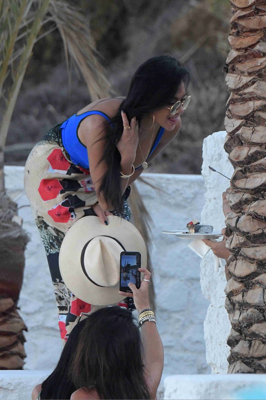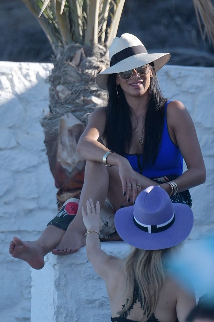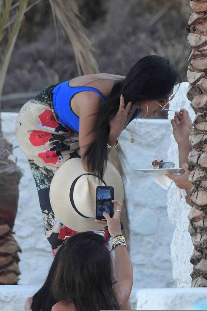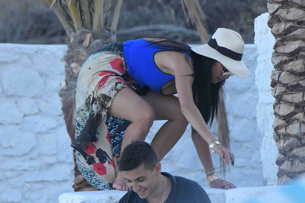 La chanteuse et ancienne juge de X Factor, Nicole Scherzinger, offre un spectacle sexy en ayant l’air fantastique vêtue d’un maillot de bain une pièce bleu lors de ses vacances sur l’île de Mykonos, en Grèce, le 01/07/2018. La chanteuse des Pussycat Dolls affichait un large sourire en se promenant le long de la plage pendant que son amie prenait des photos.