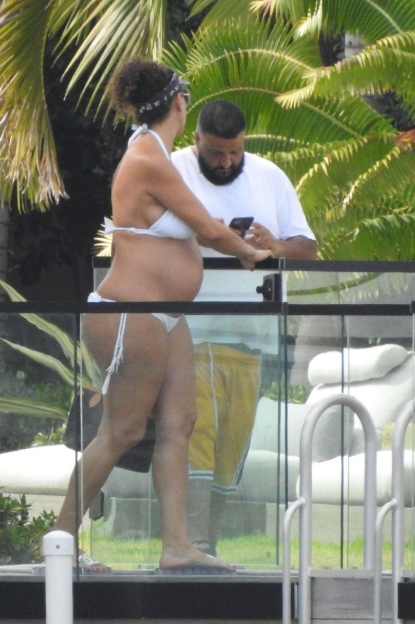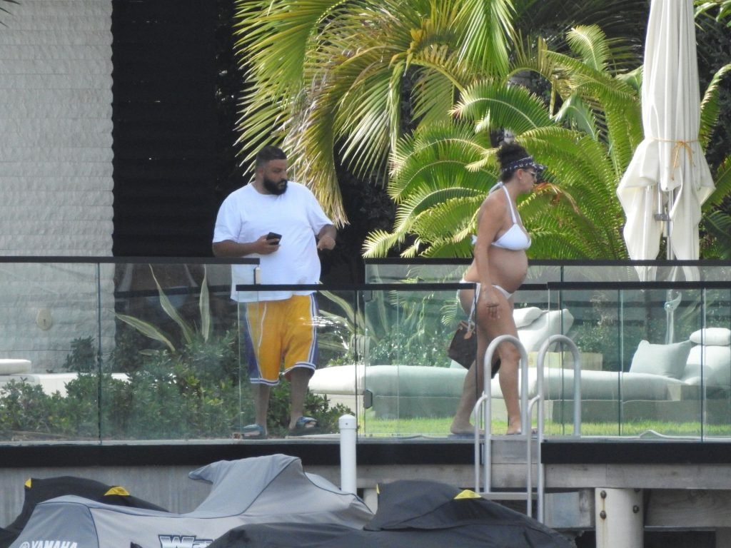 DJ Khaled a “Another One” dans le four ! La sensation pop américaine DJ Khaled et sa femme enceinte de 43 ans, Nicole Tuck, en bikini, ont montré son gros ventre de bébé alors qu’ils profitaient d’un magnifique après-midi de dimanche et d’une promenade en bateau sur un énorme yacht de luxe à Miami Beach, le 06/10/2019.