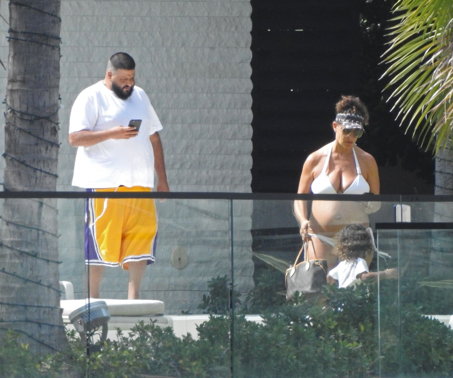 DJ Khaled a “Another One” dans le four ! La sensation pop américaine DJ Khaled et sa femme enceinte de 43 ans, Nicole Tuck, en bikini, ont montré son gros ventre de bébé alors qu’ils profitaient d’un magnifique après-midi de dimanche et d’une promenade en bateau sur un énorme yacht de luxe à Miami Beach, le 06/10/2019.